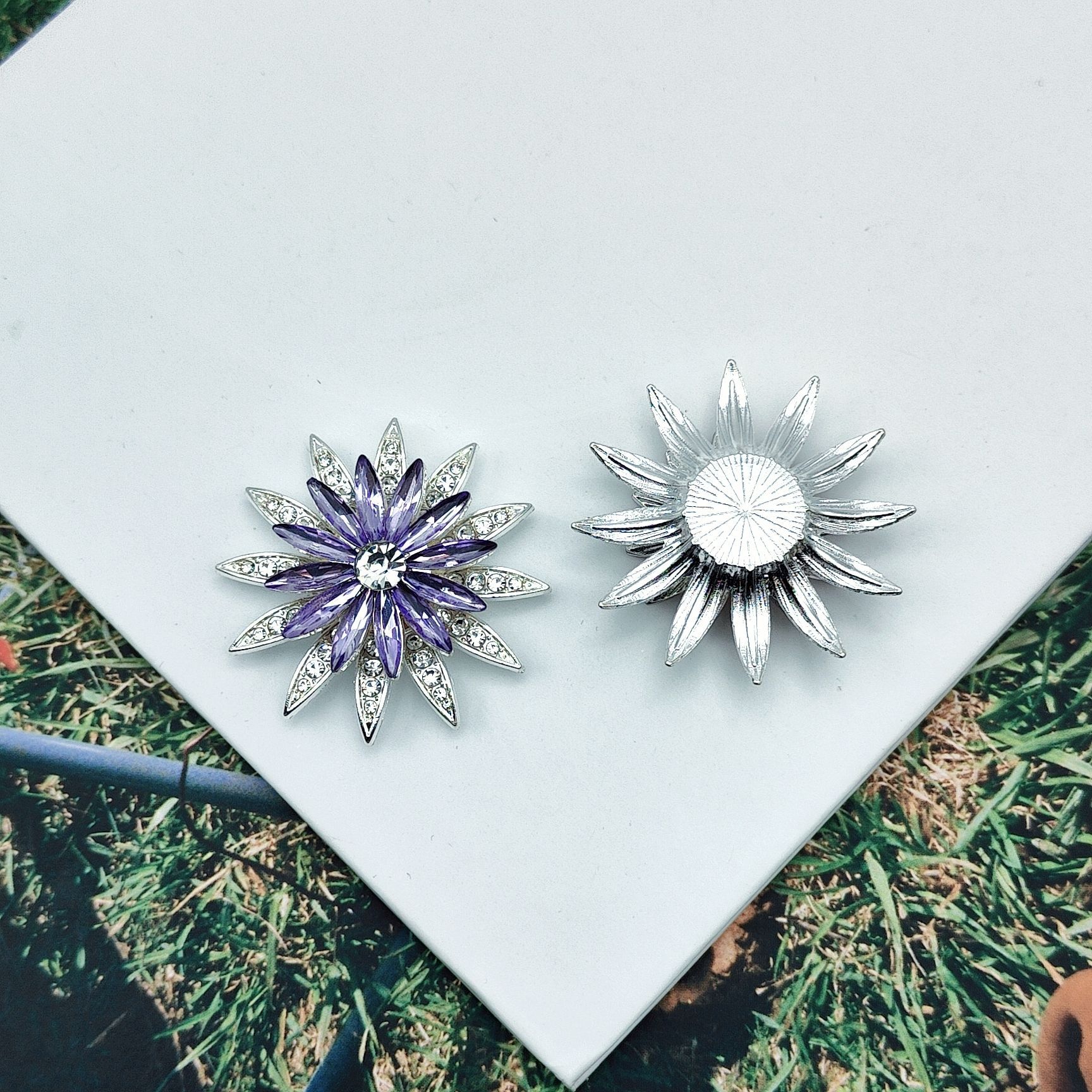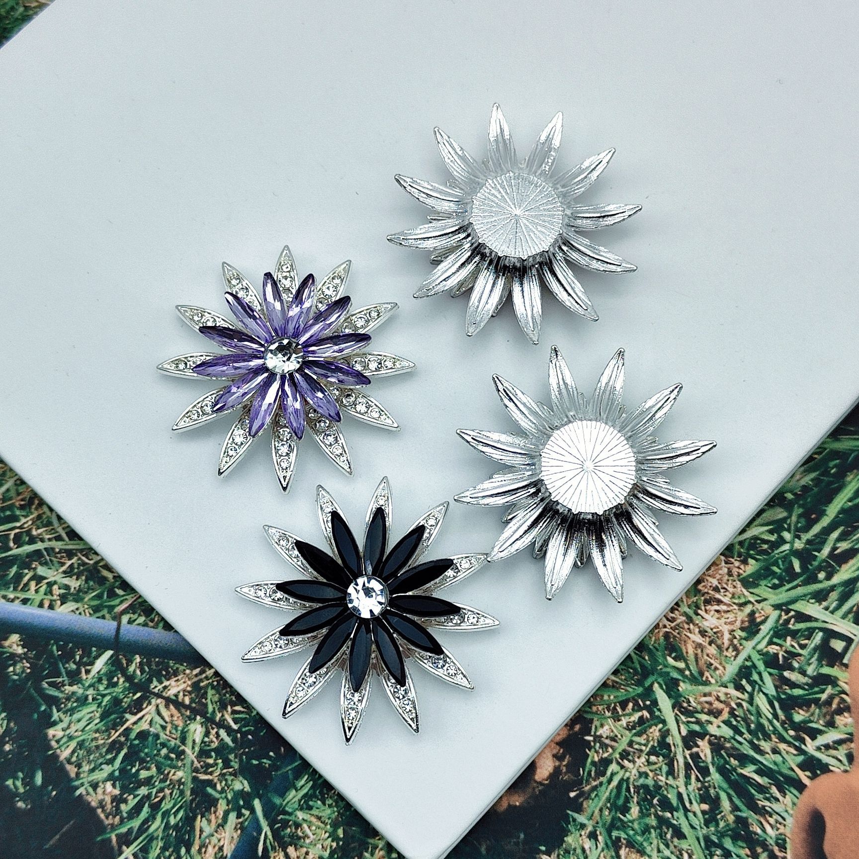 合金双层旋转水晶太阳花饰品配件diy汽车出风口手机壳胸花配饰