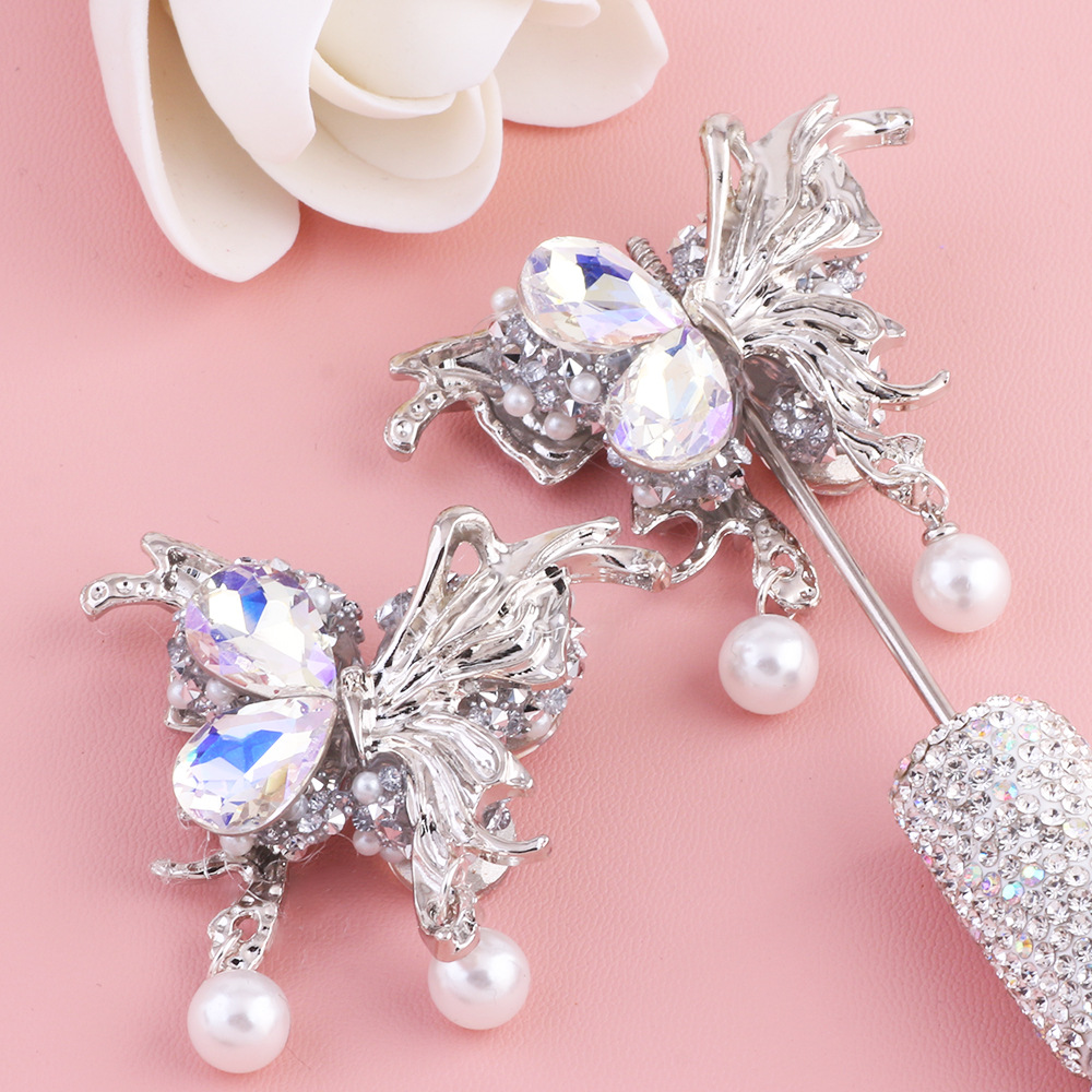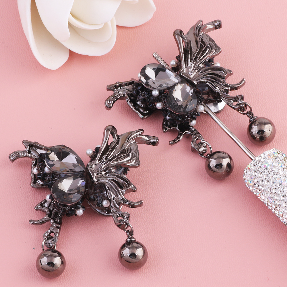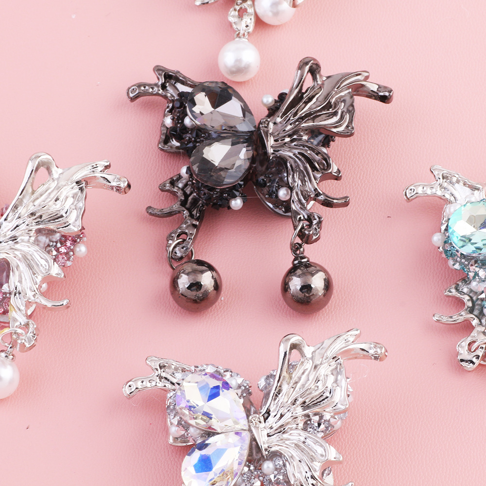 重工合金蝴蝶锆石珍珠D溜钻球直孔珠子DIY手机链钥匙链包链配件