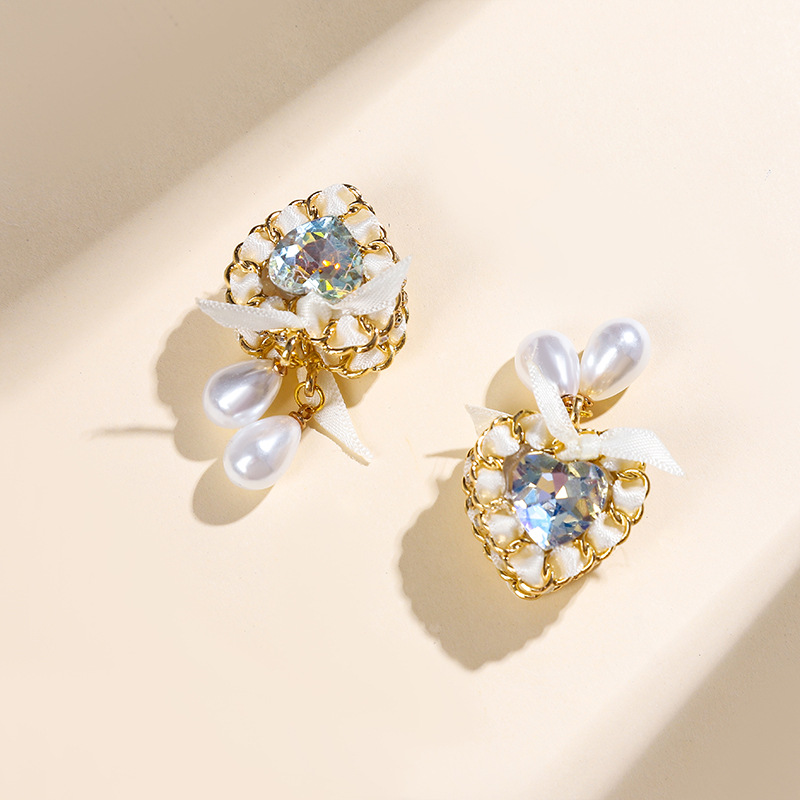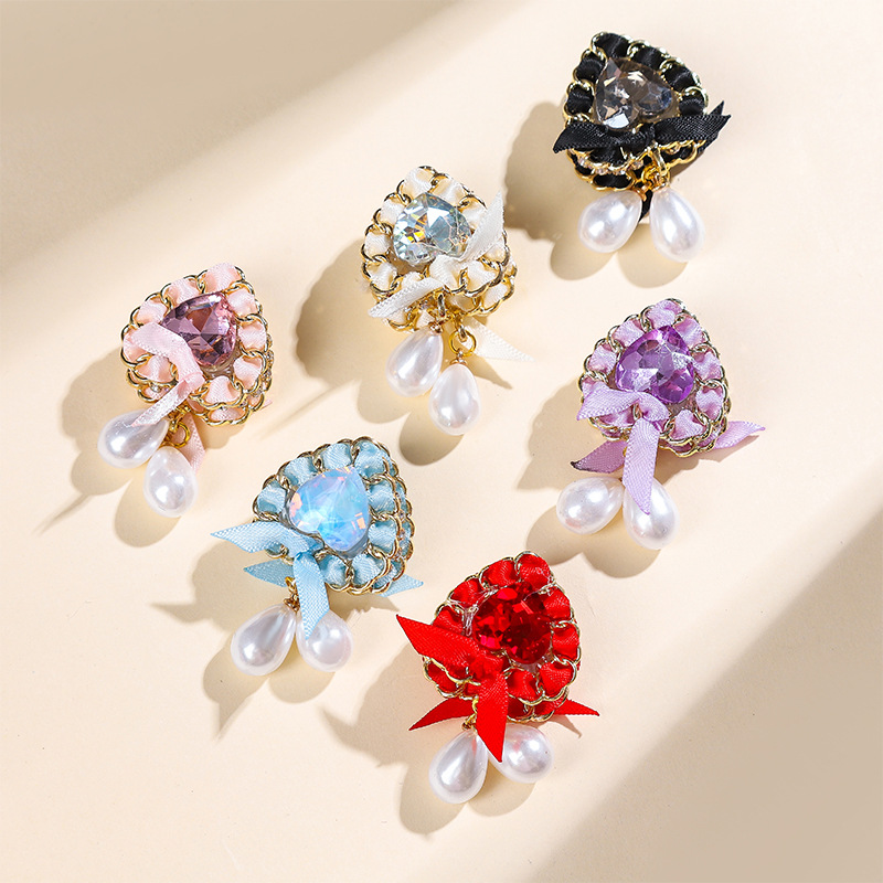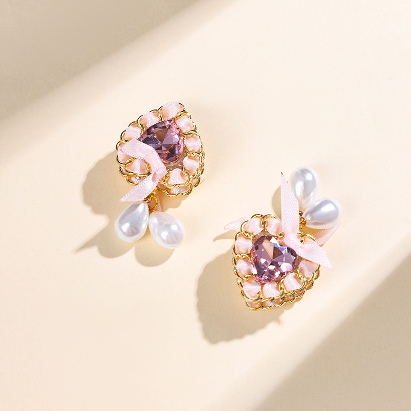 链条水晶爱心领结丝带珍珠D溜直孔珠子DIY手机链钥匙链包链配件