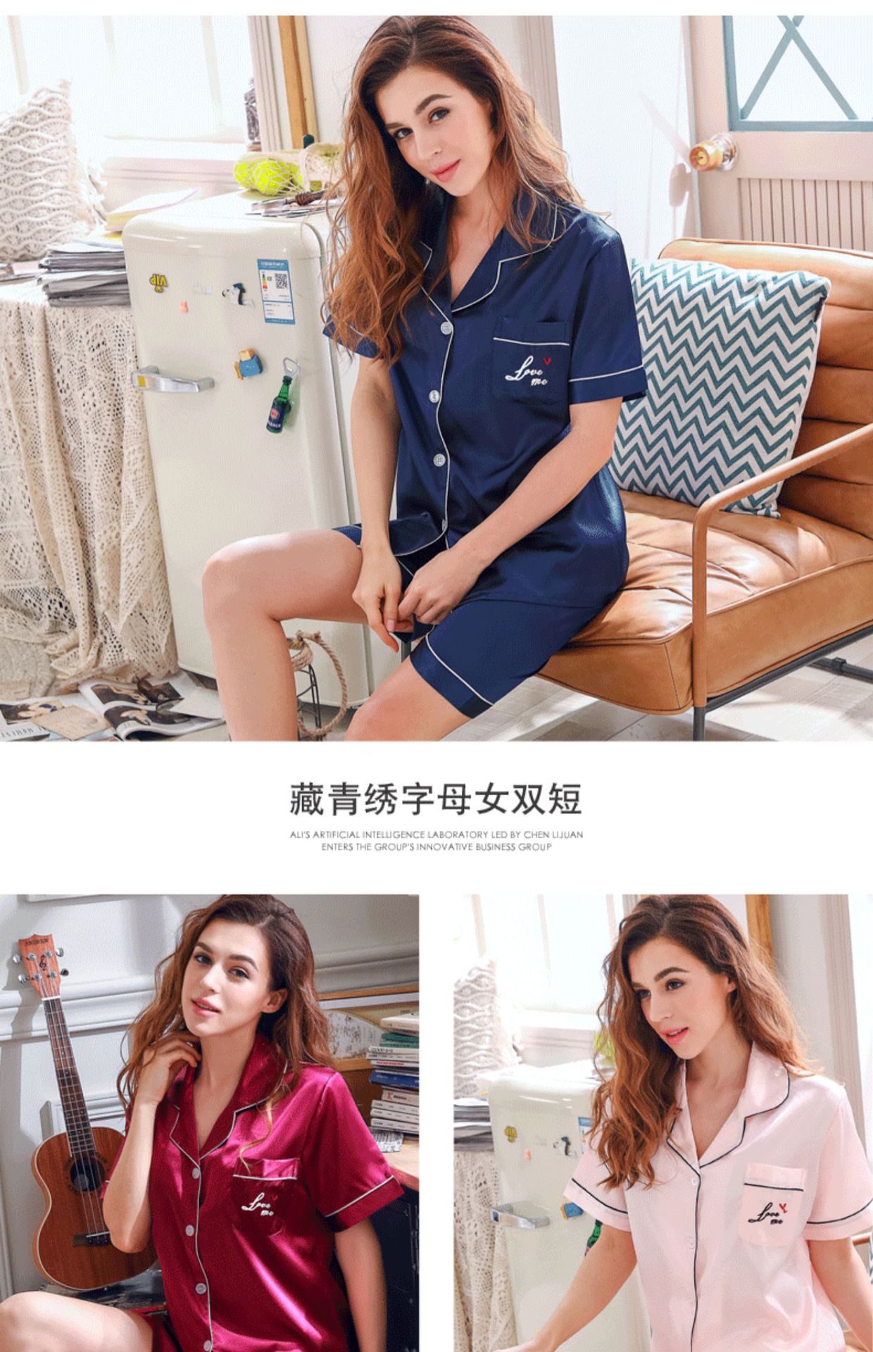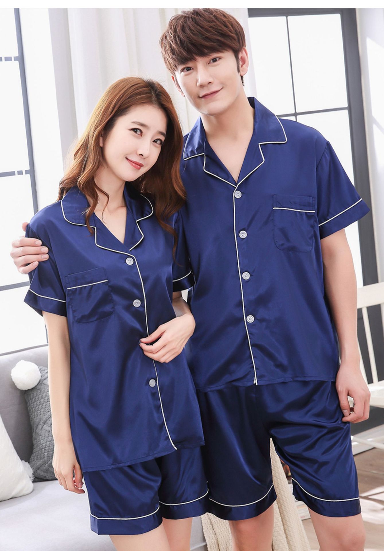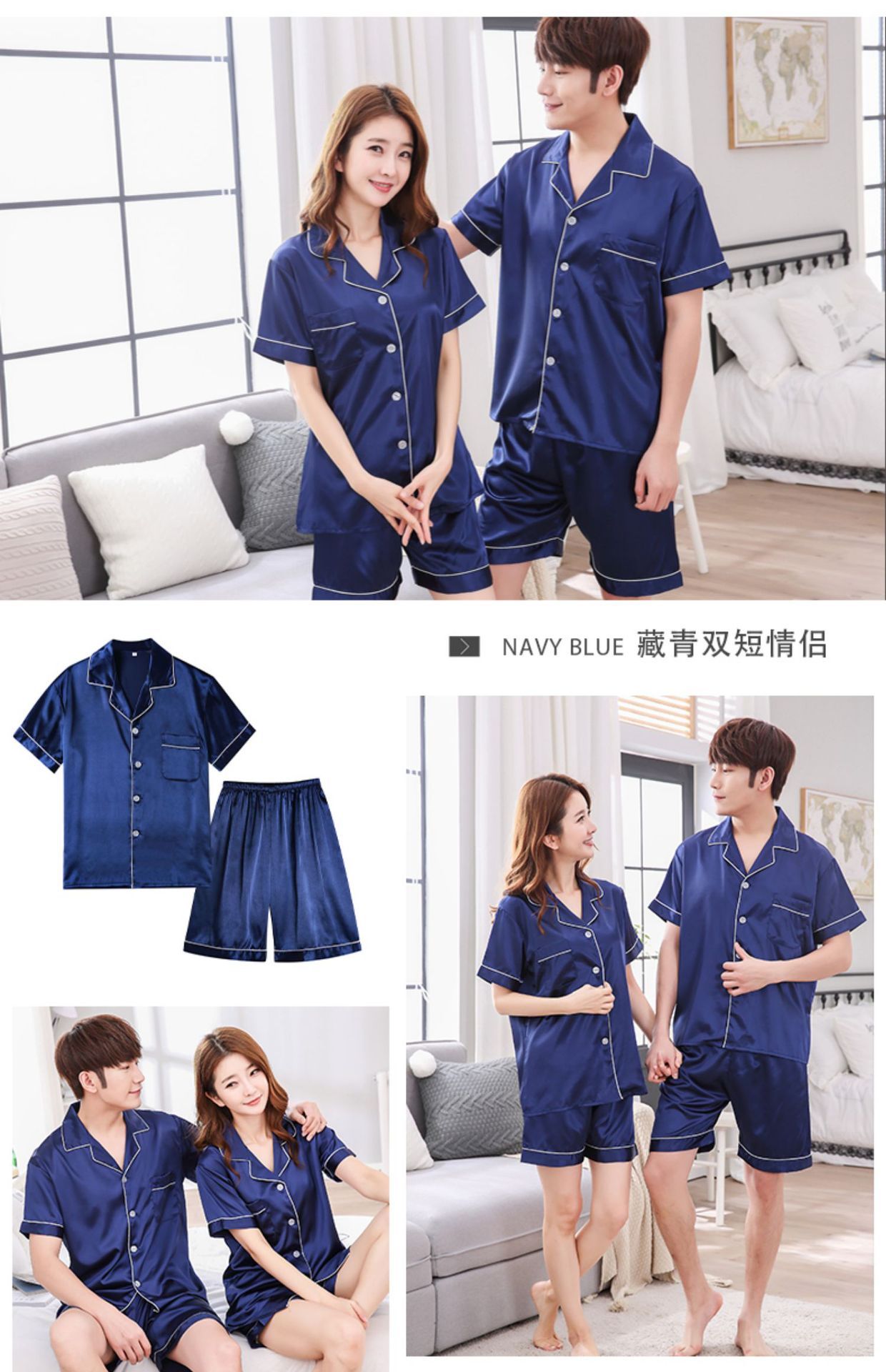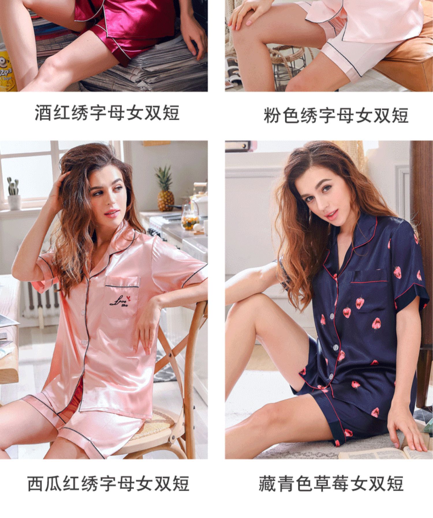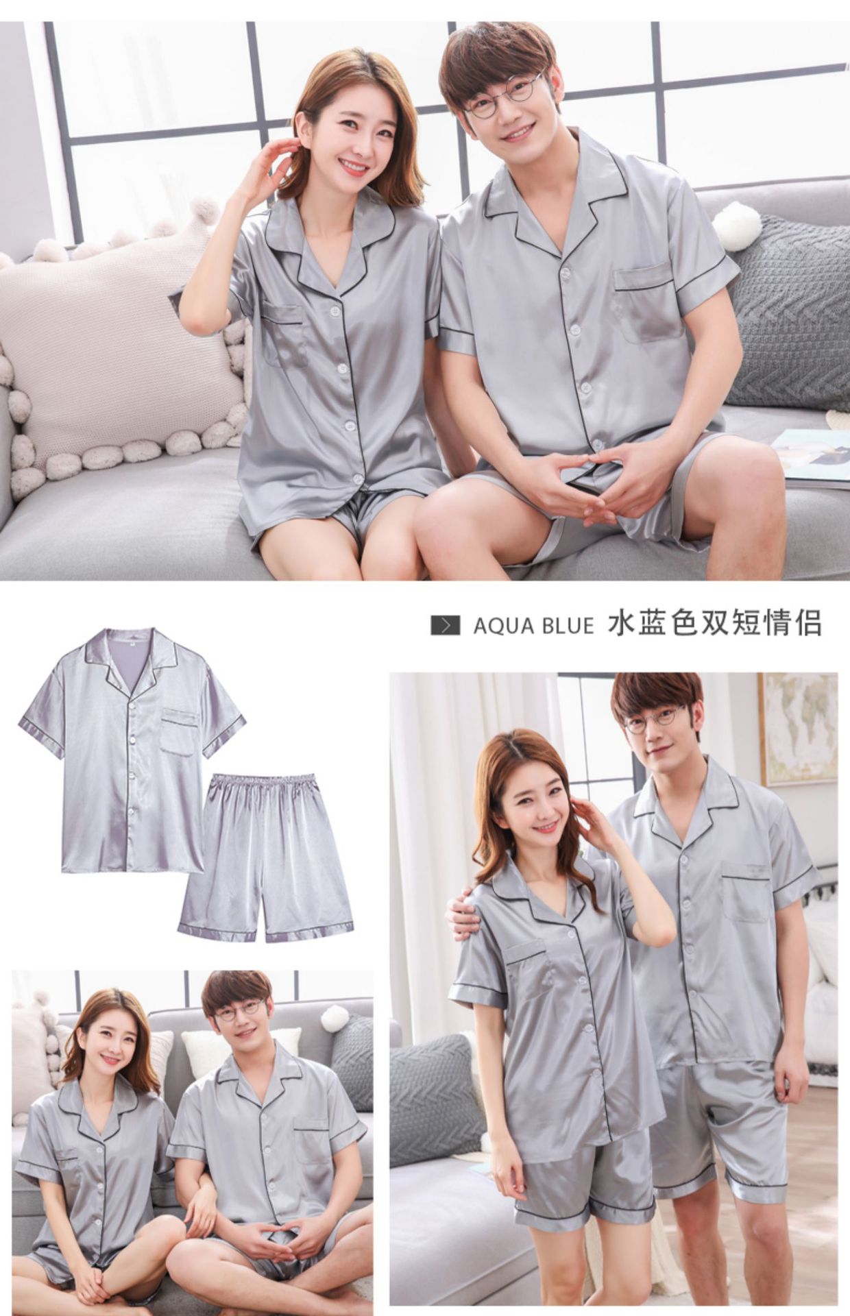 情侣睡衣夏季短袖短款冰丝睡衣女夏薄款加大码家居服套装