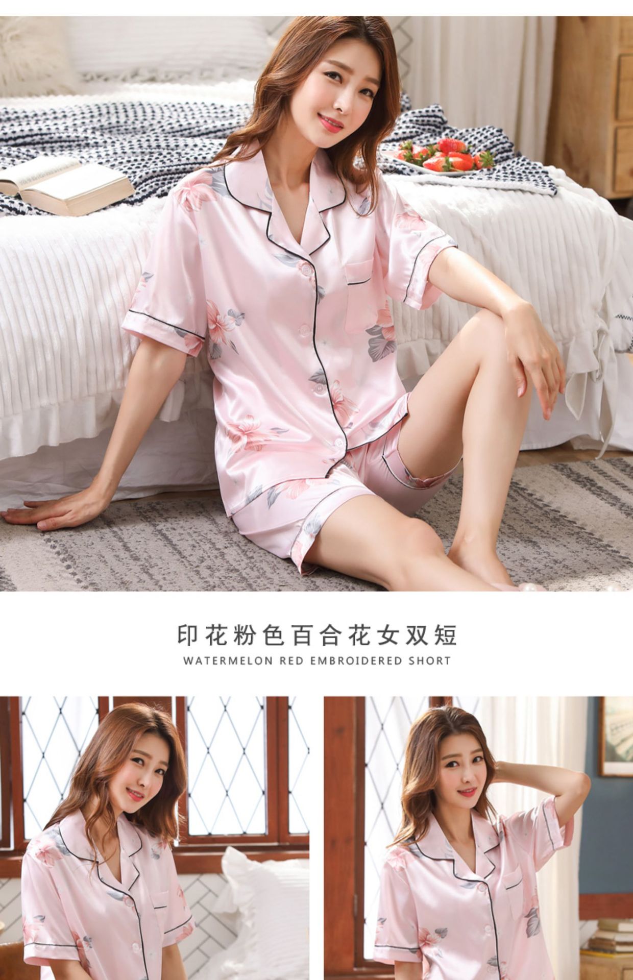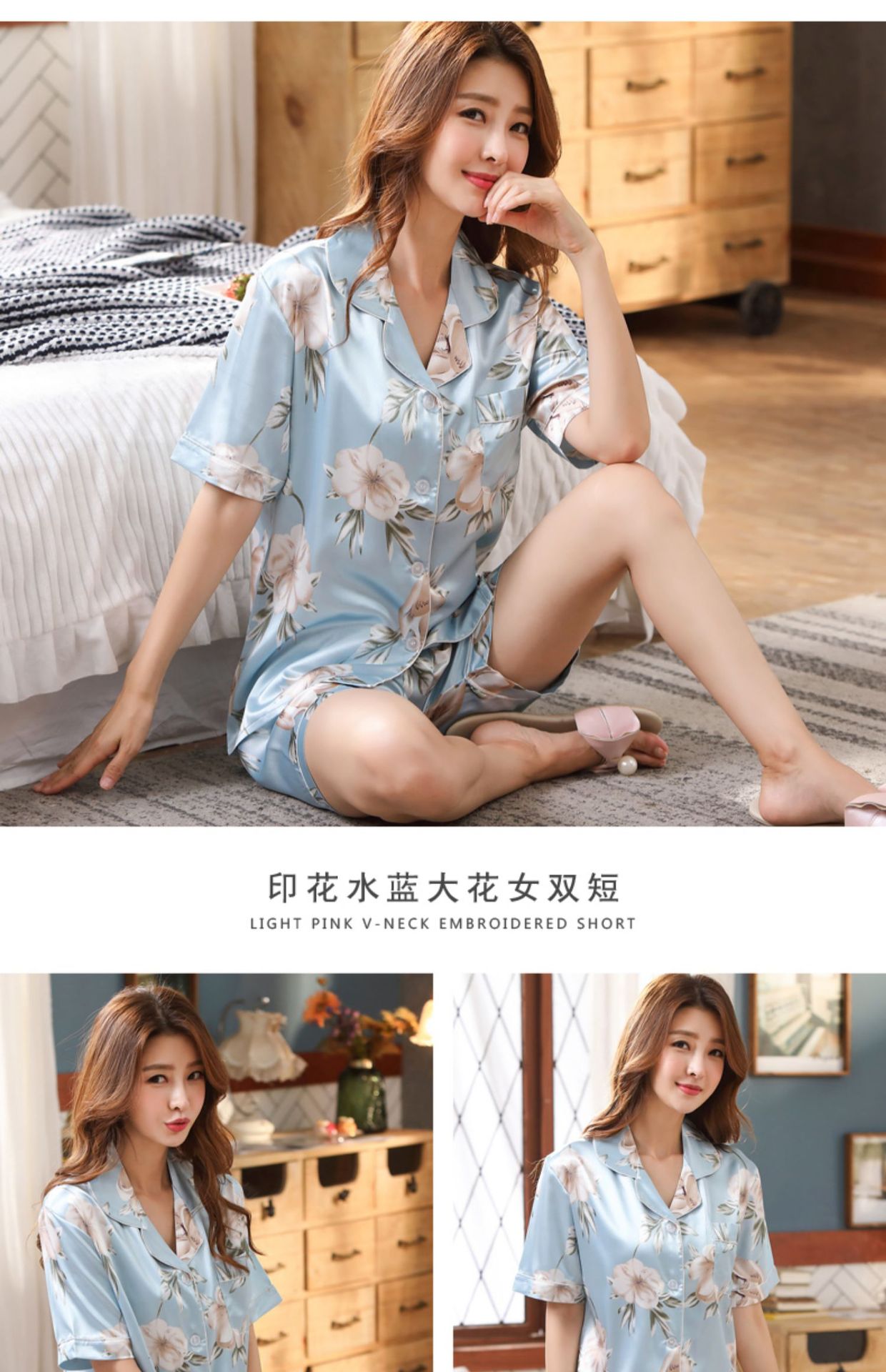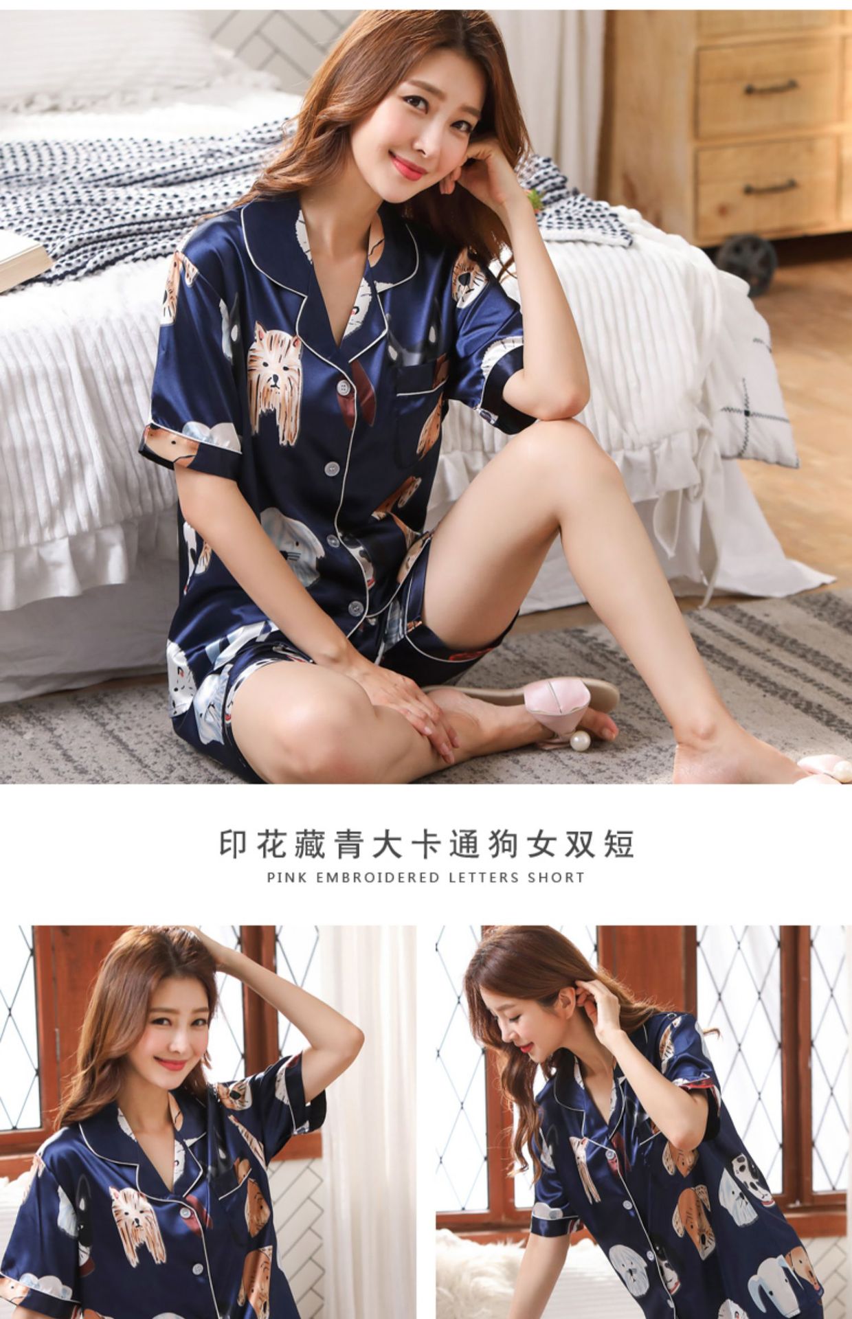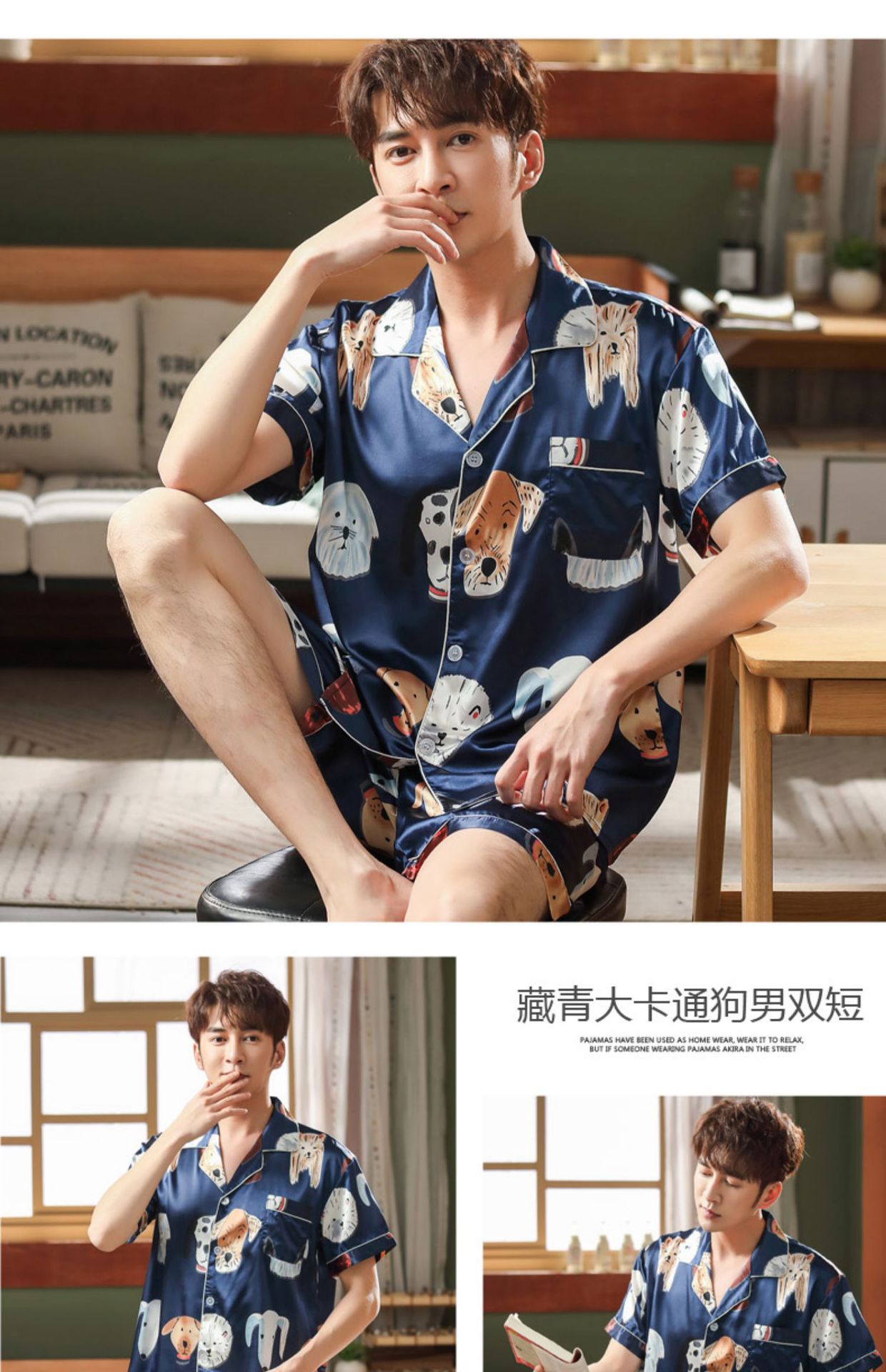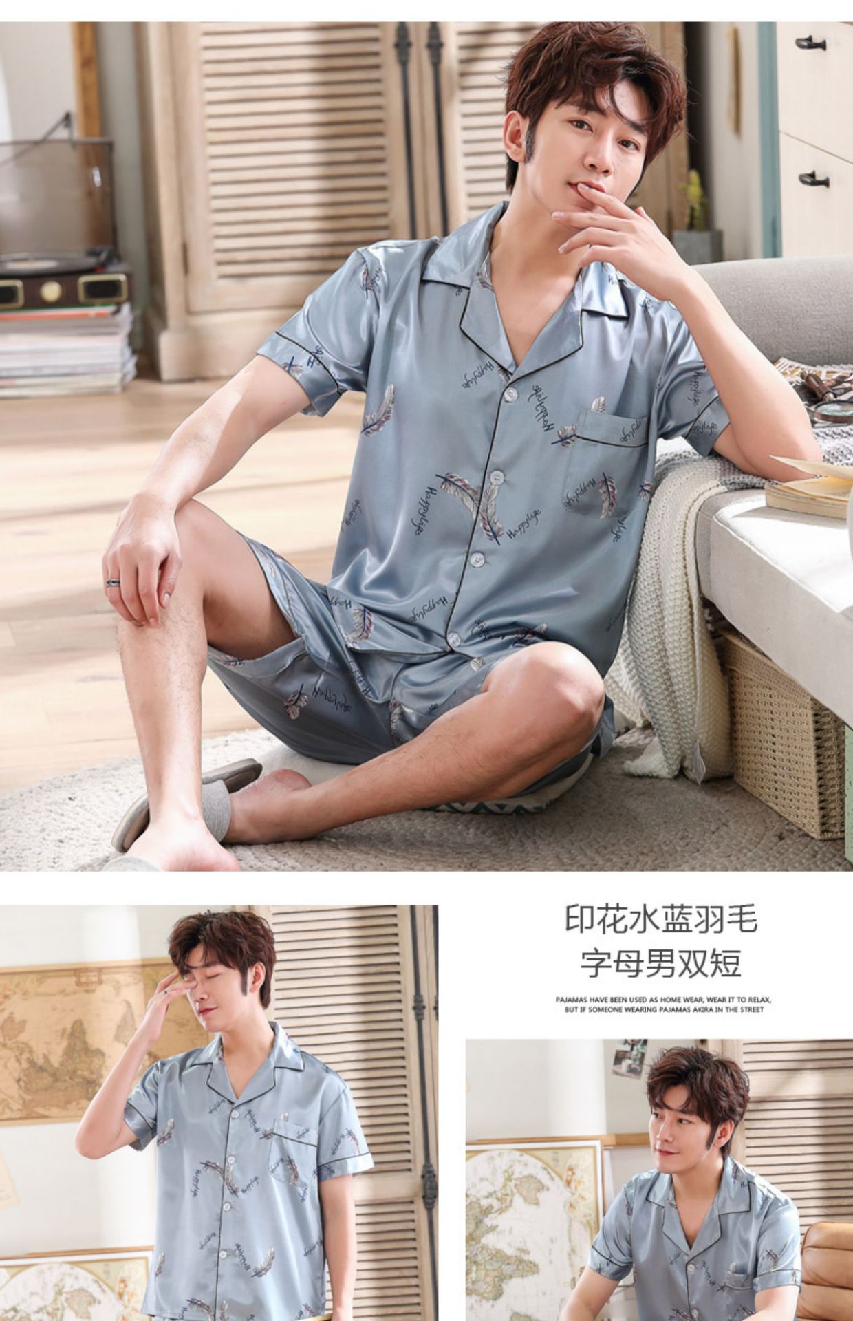 情侣睡衣夏季短袖短款冰丝睡衣女夏薄款加大码家居服套装