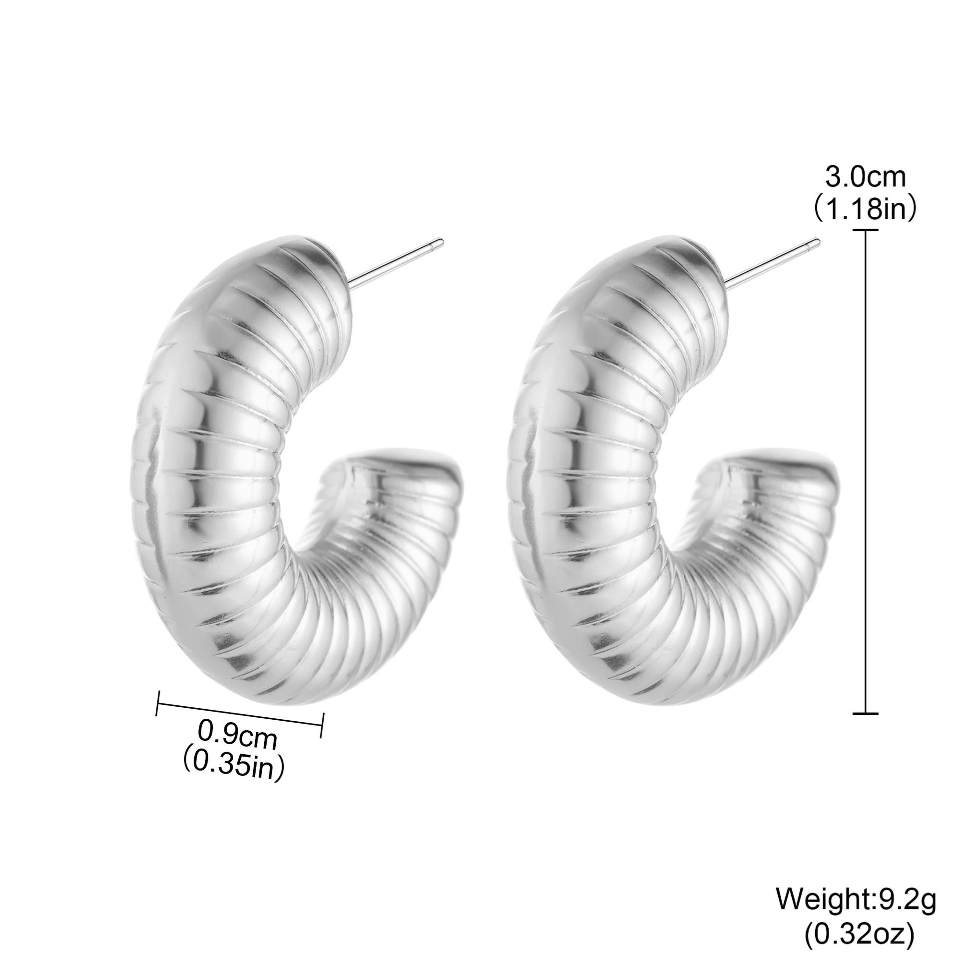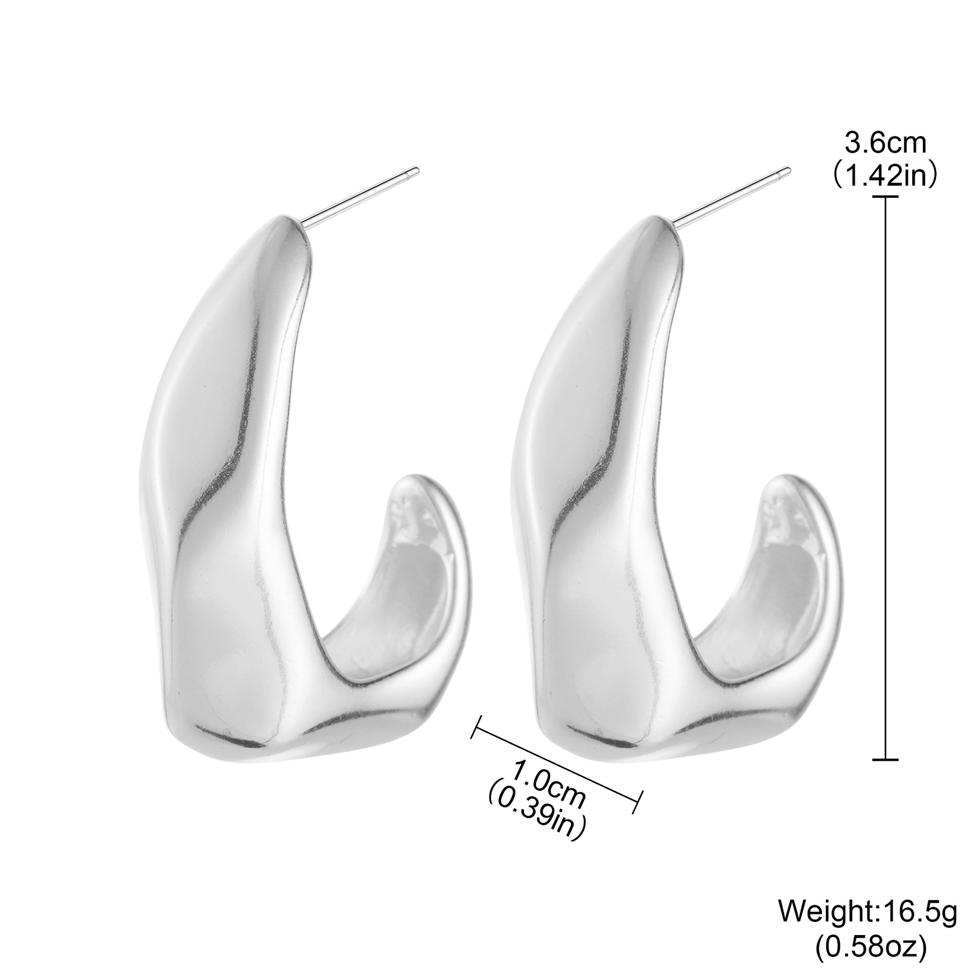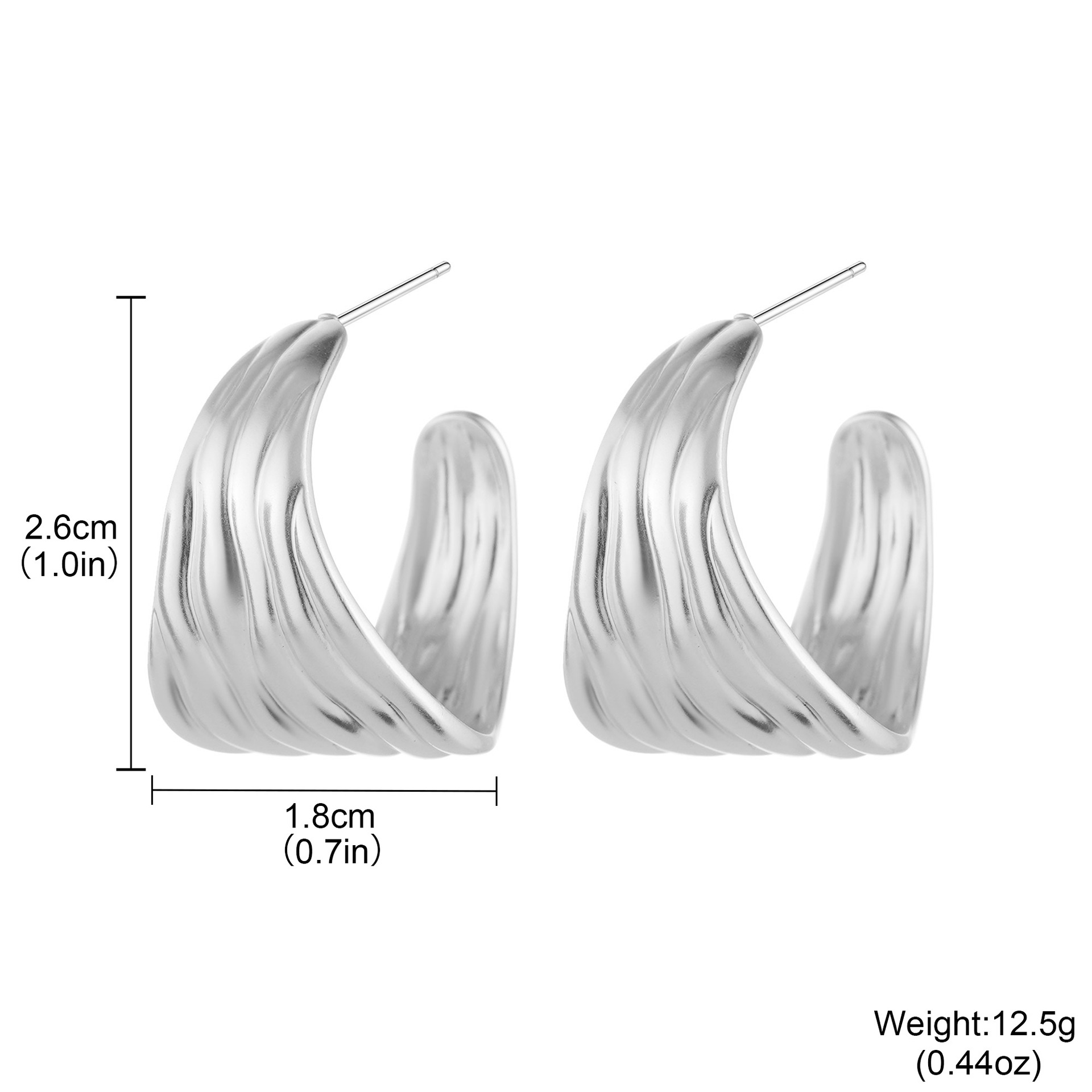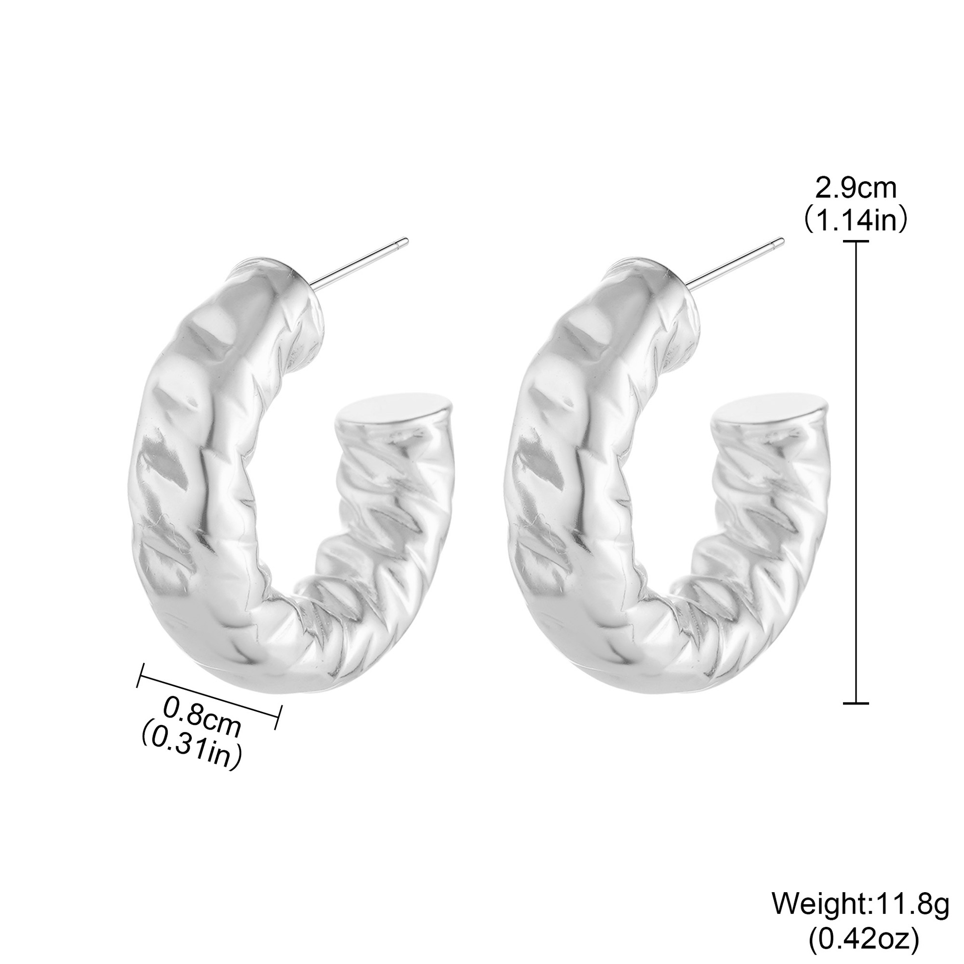 不规则纹路耳钉真金电镀2025跨境新款圆形百搭质感夸张耳饰银色女