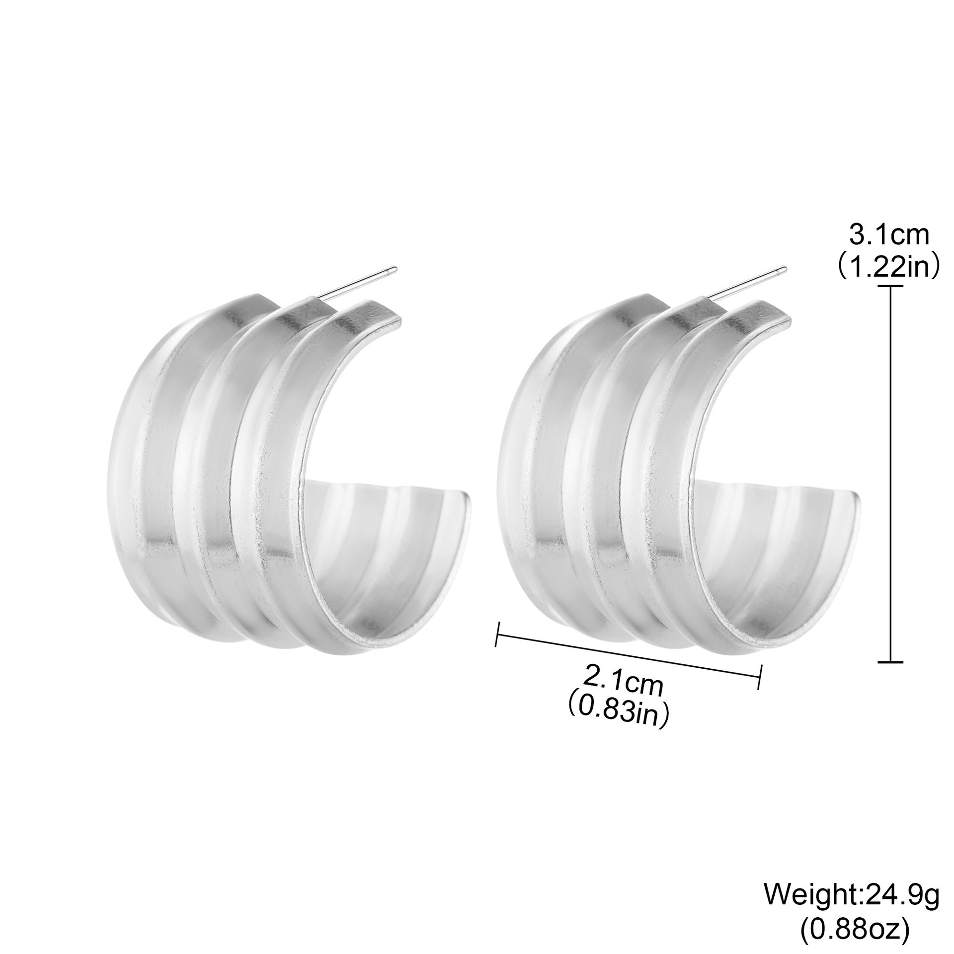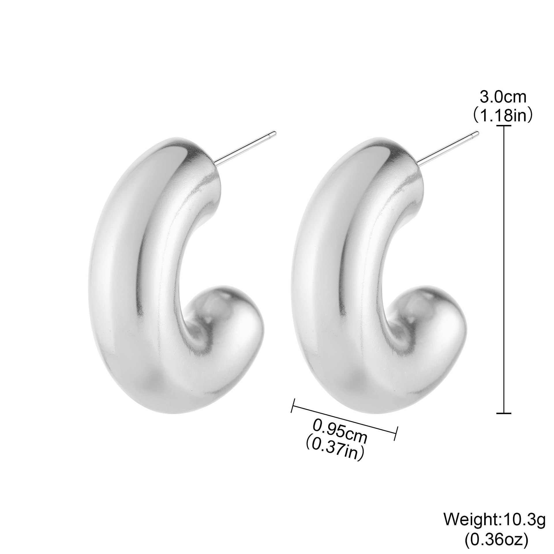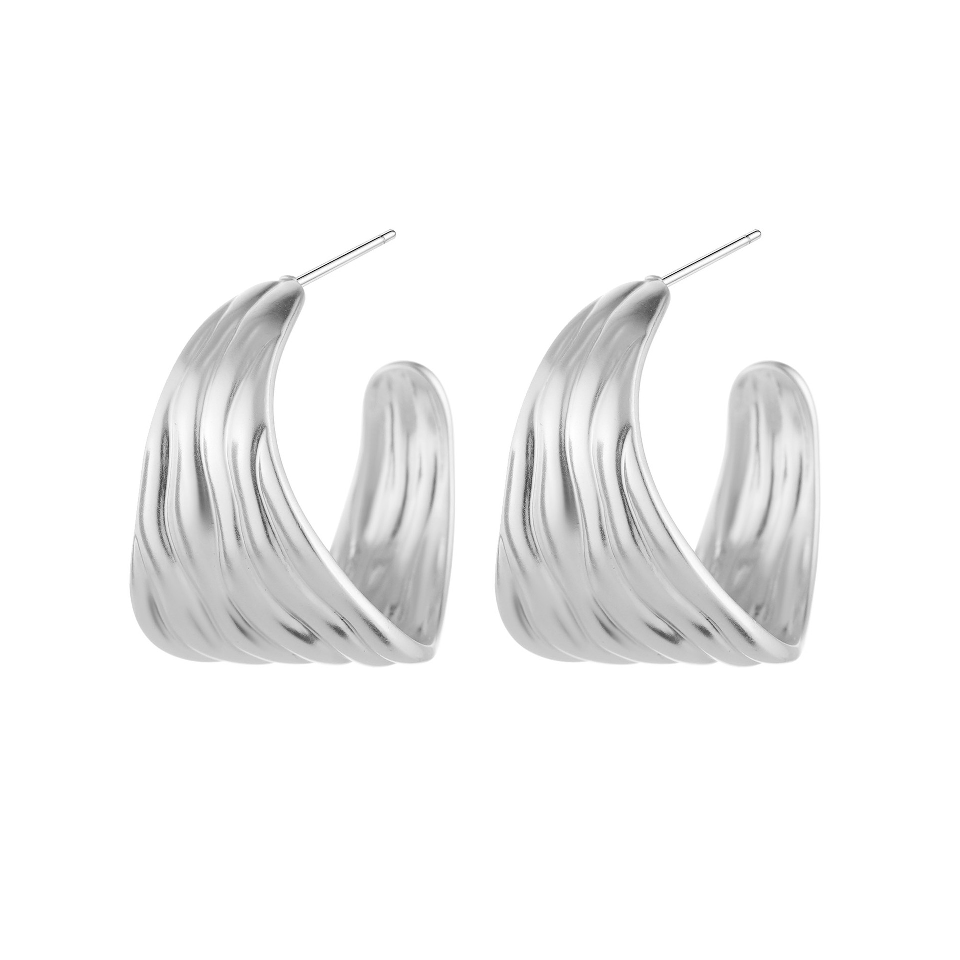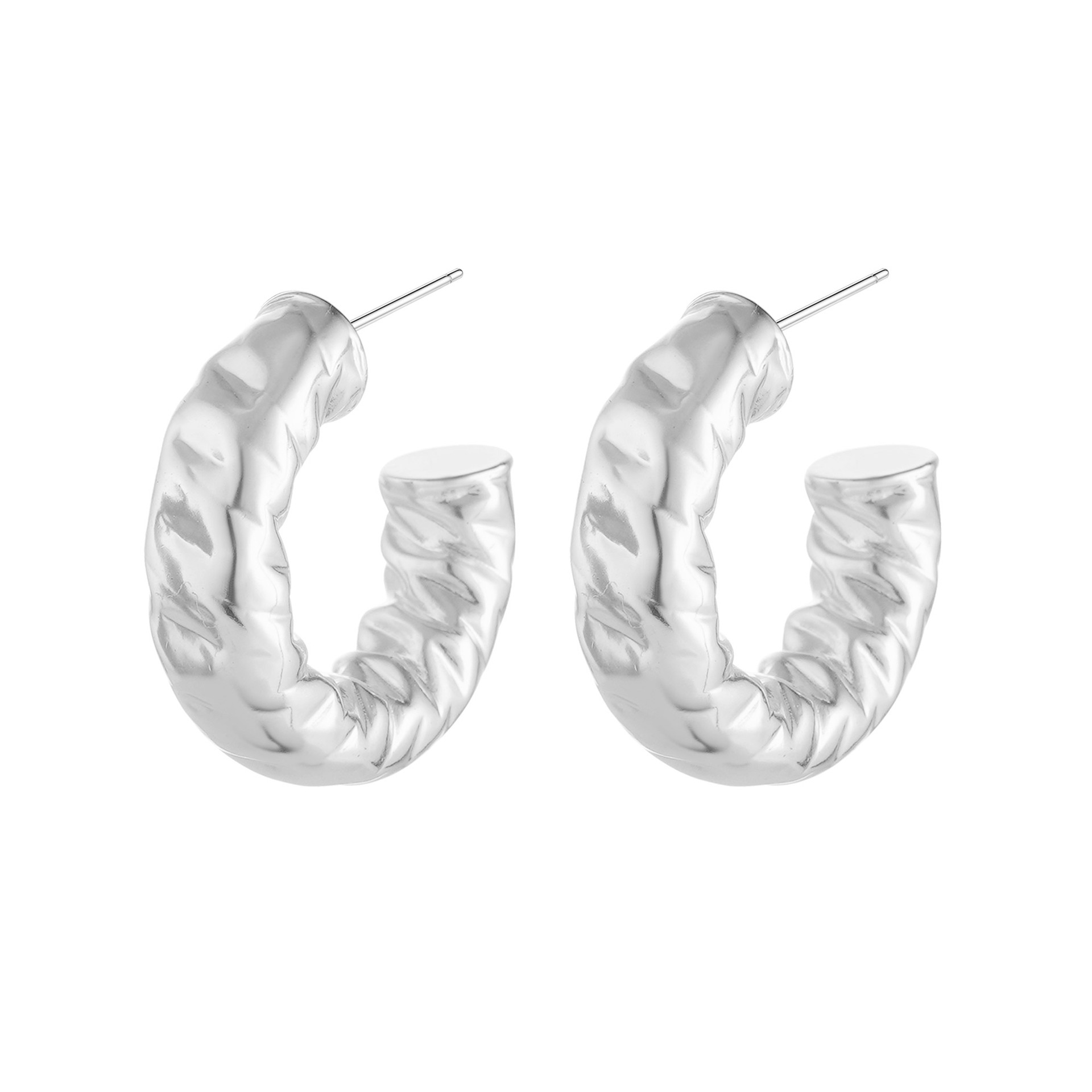 不规则纹路耳钉真金电镀2025跨境新款圆形百搭质感夸张耳饰银色女
