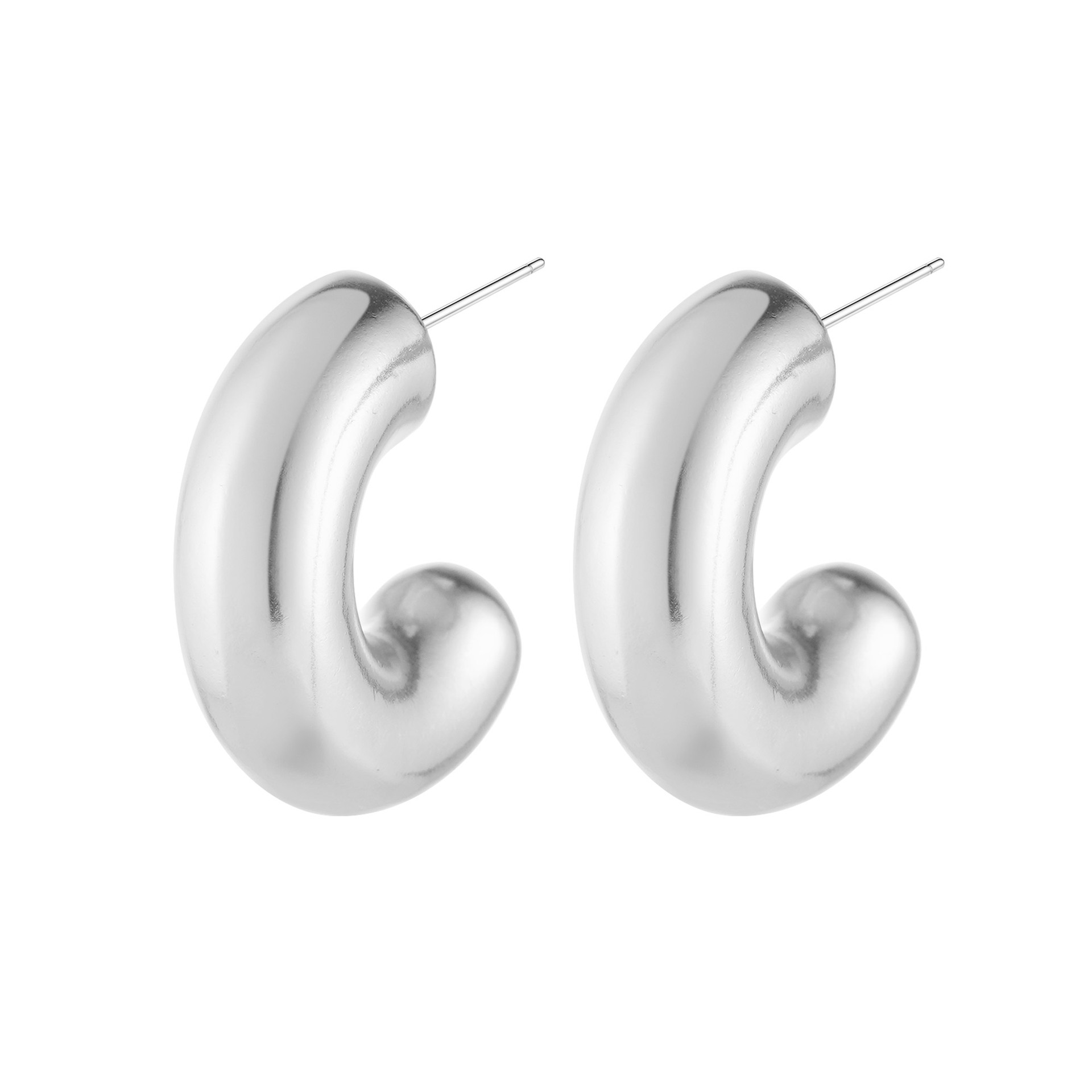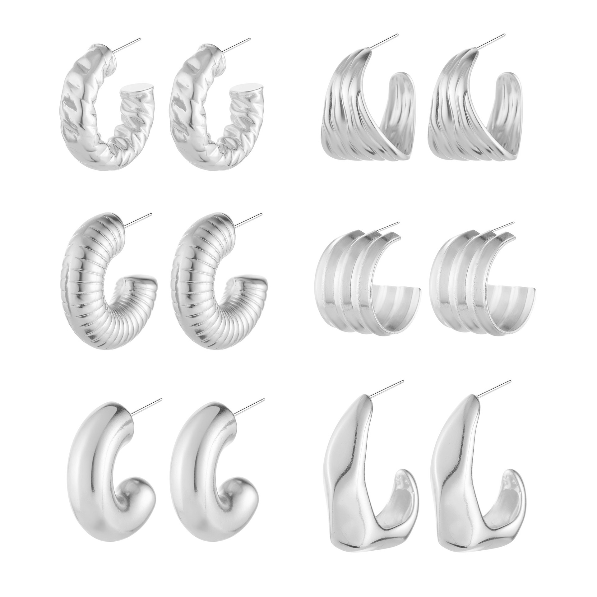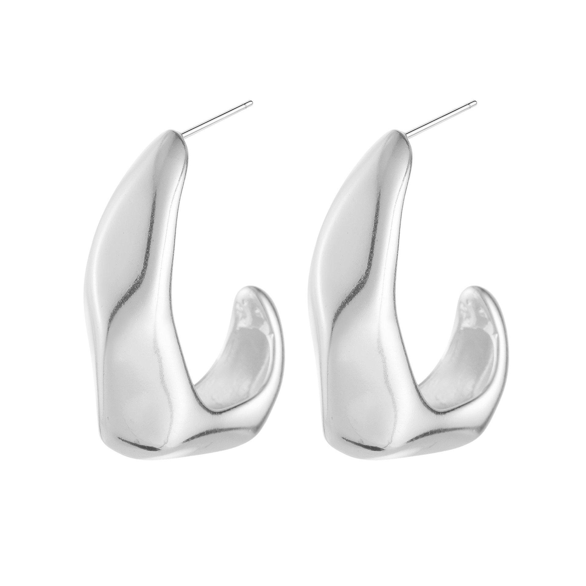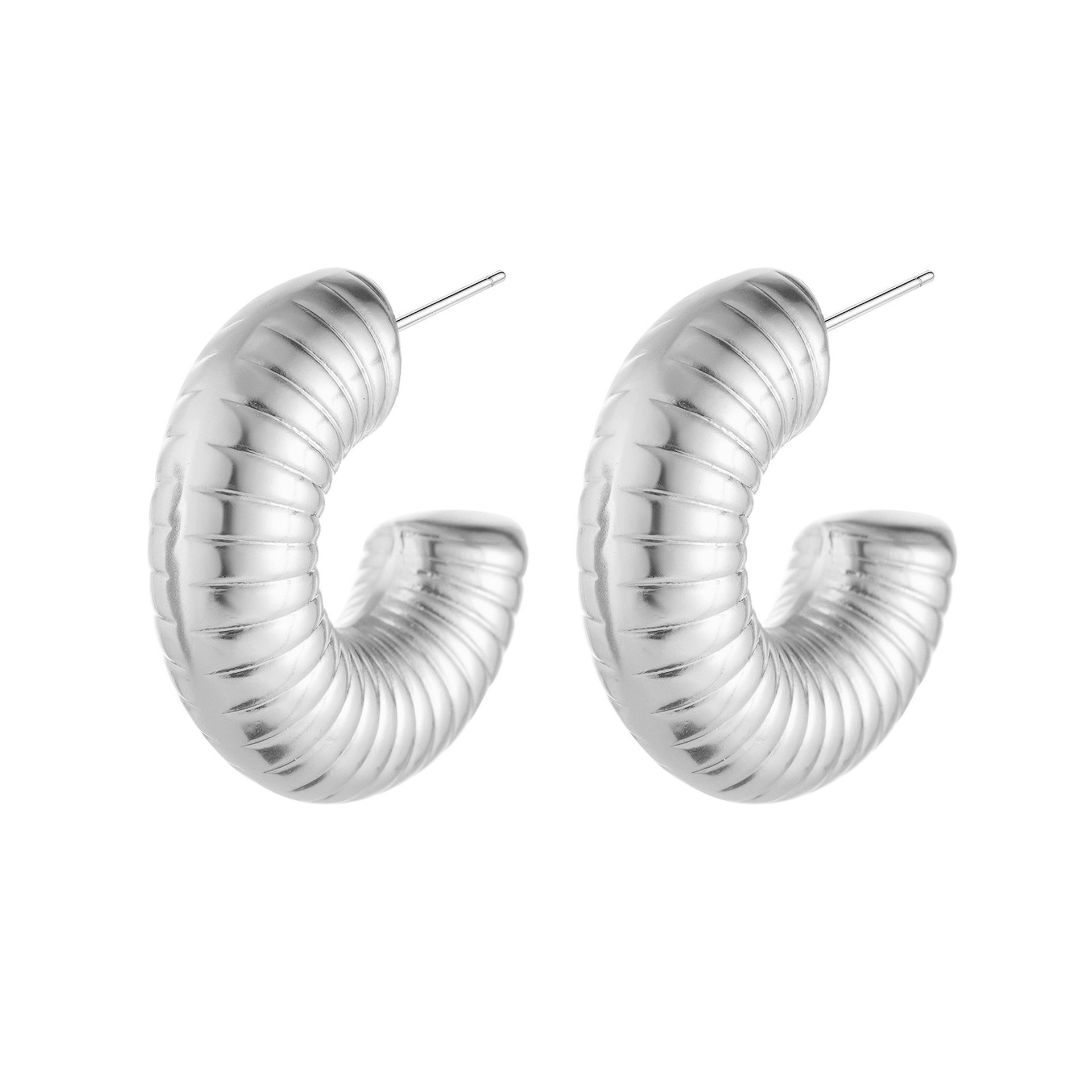 不规则纹路耳钉真金电镀2025跨境新款圆形百搭质感夸张耳饰银色女