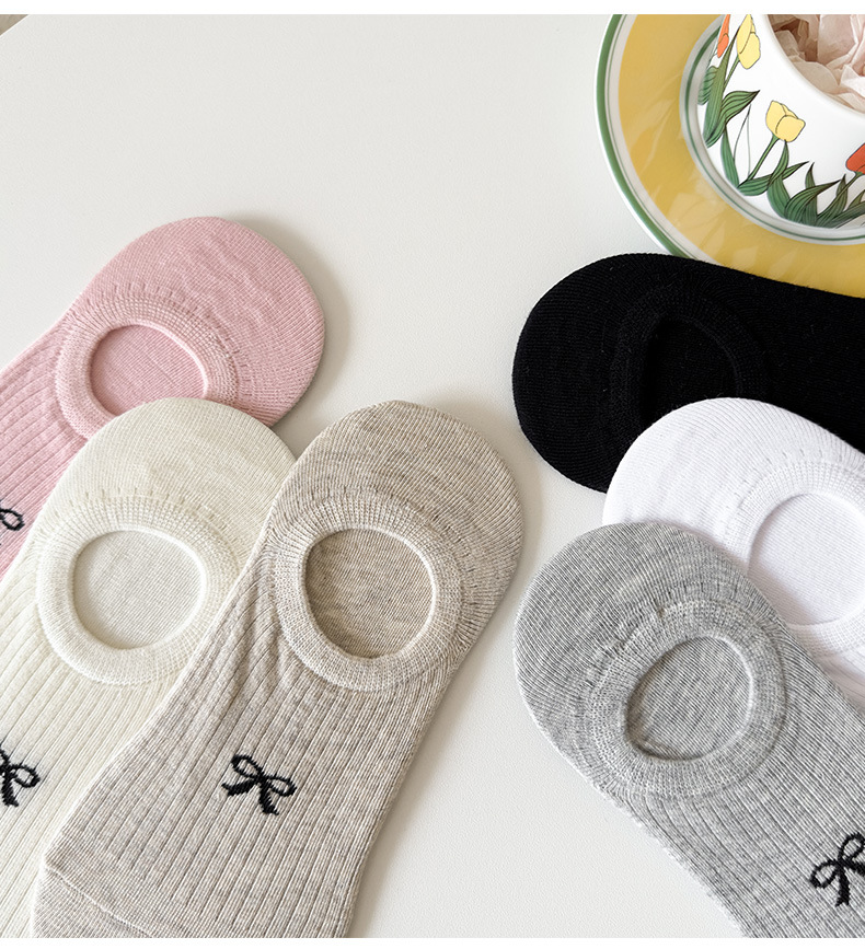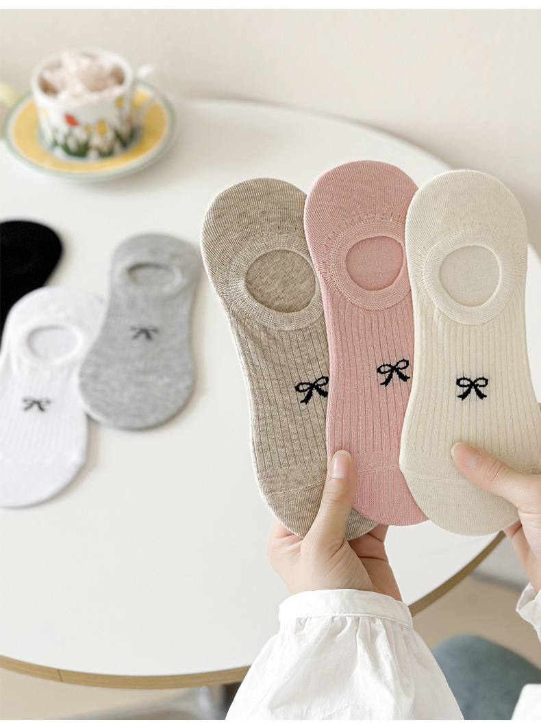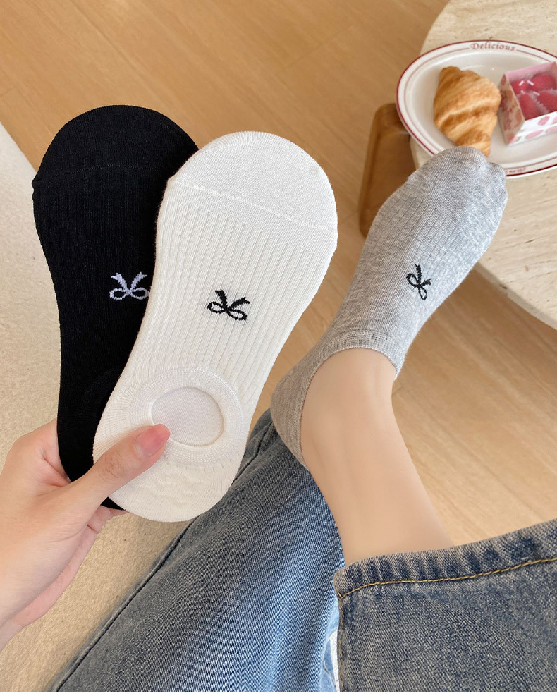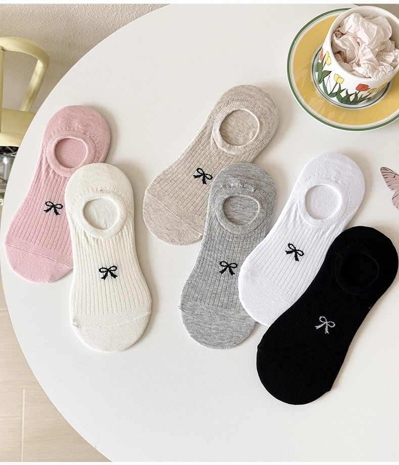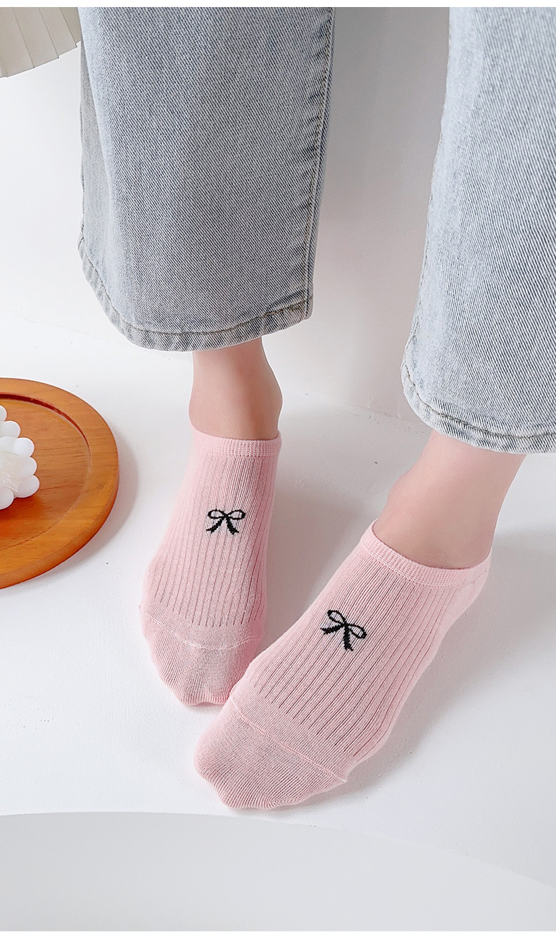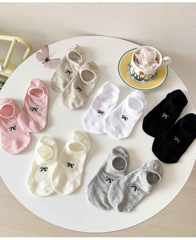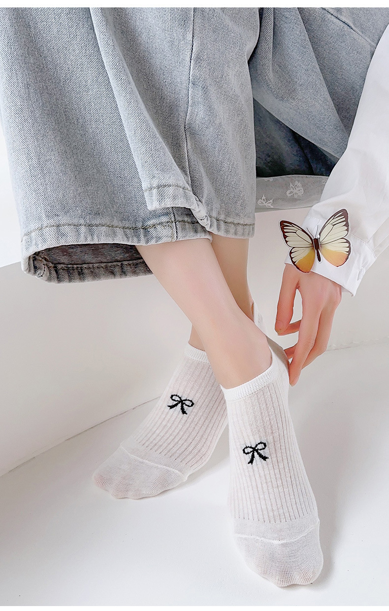 蝴蝶结袜子女夏季吸汗透气薄款船袜不掉跟女士夏天短袜可爱隐形袜