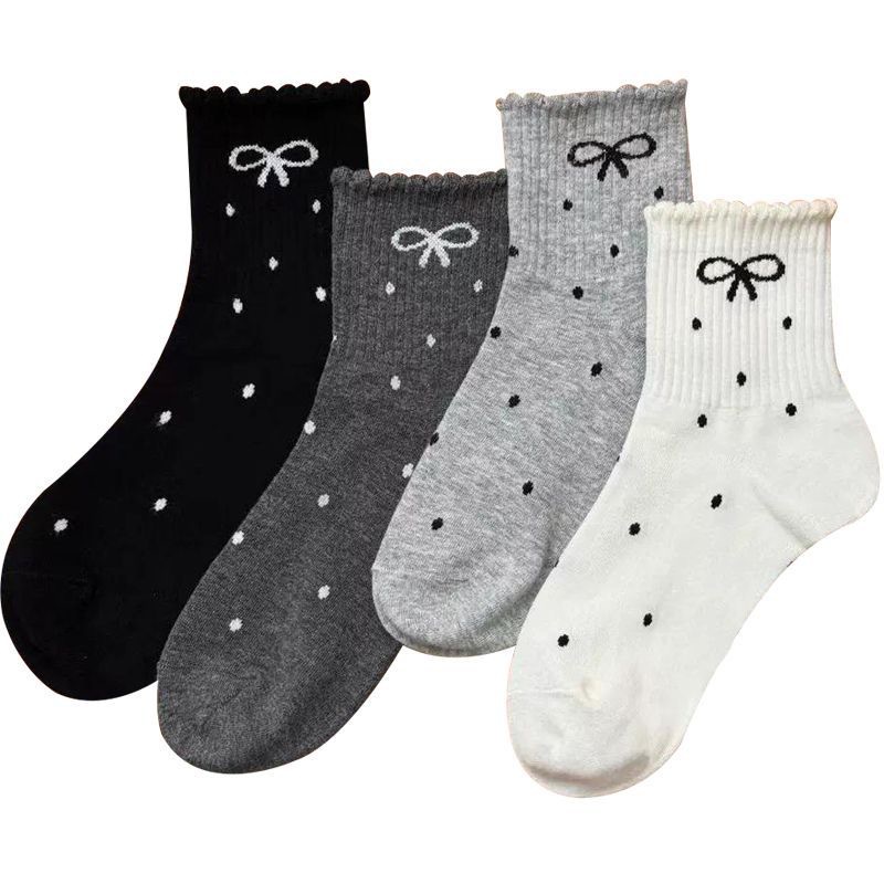 波点蝴蝶结秋冬新款堆堆袜ins潮长筒袜日系网红中筒女袜花边中筒