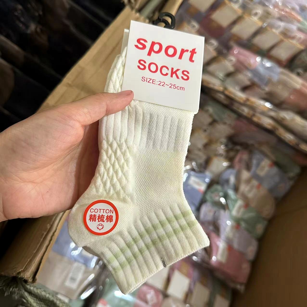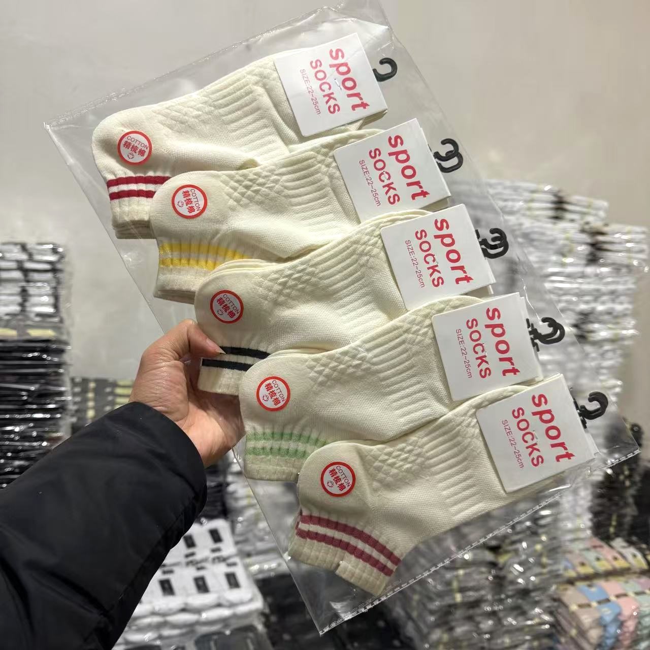 新款诸暨袜子女春秋季短袜糖果色运动短筒棉袜女生韩国条纹袜批发