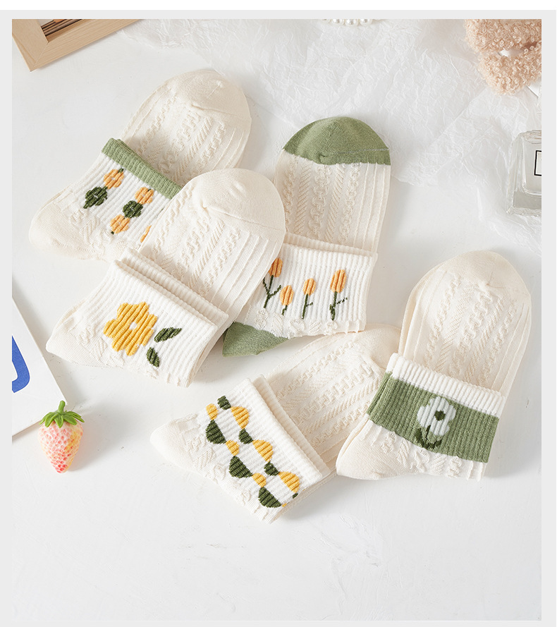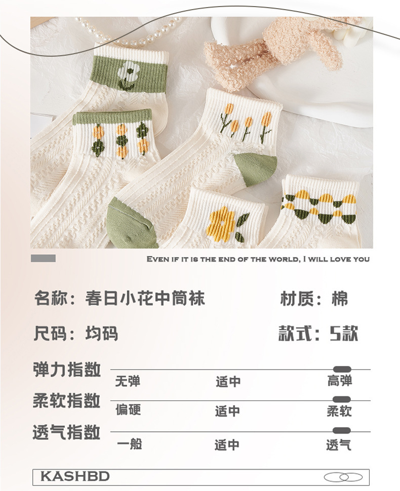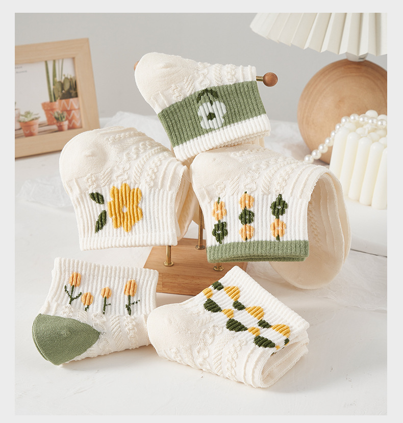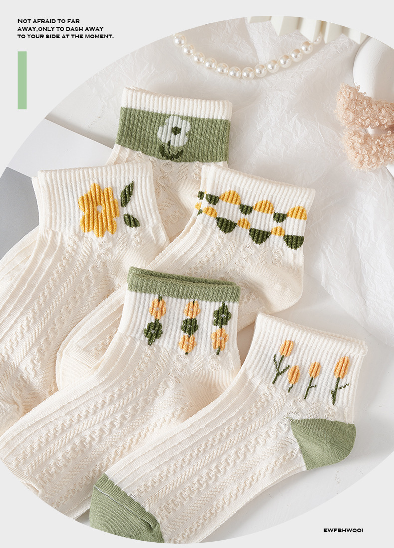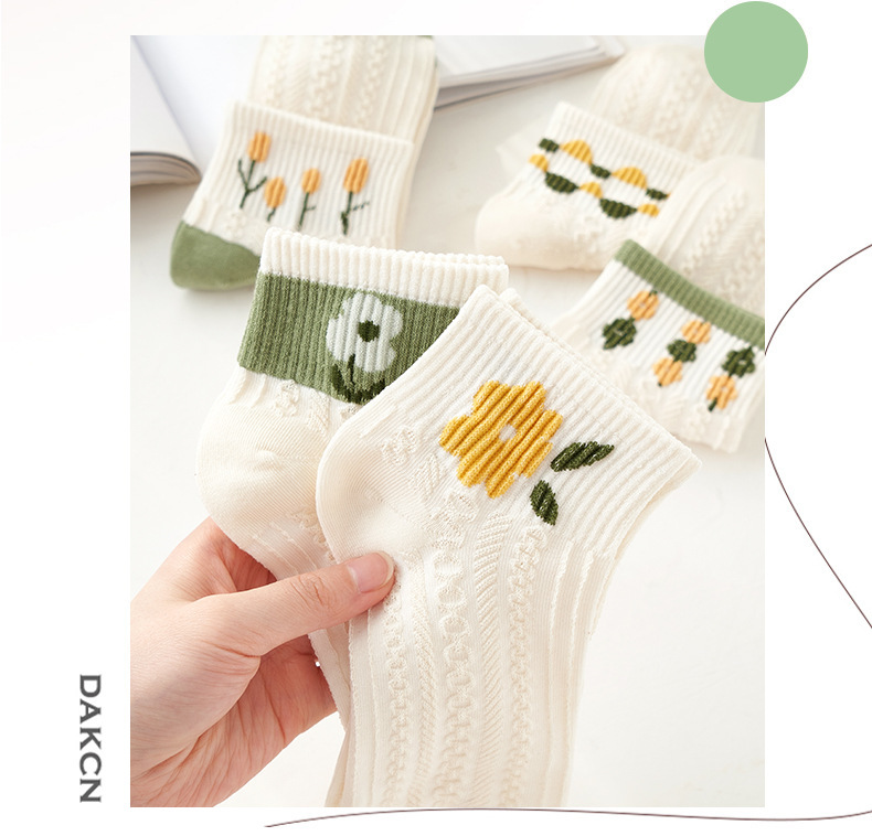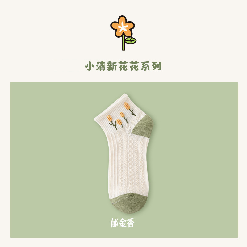 森系小花袜子女短袜棉质ins潮流可爱日系吸汗透气中筒袜