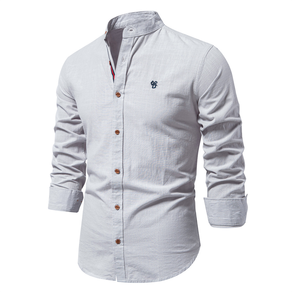 春夏季新款潮款商务衬衫男士棉麻休闲日系时尚纯色长袖衬衫男美码