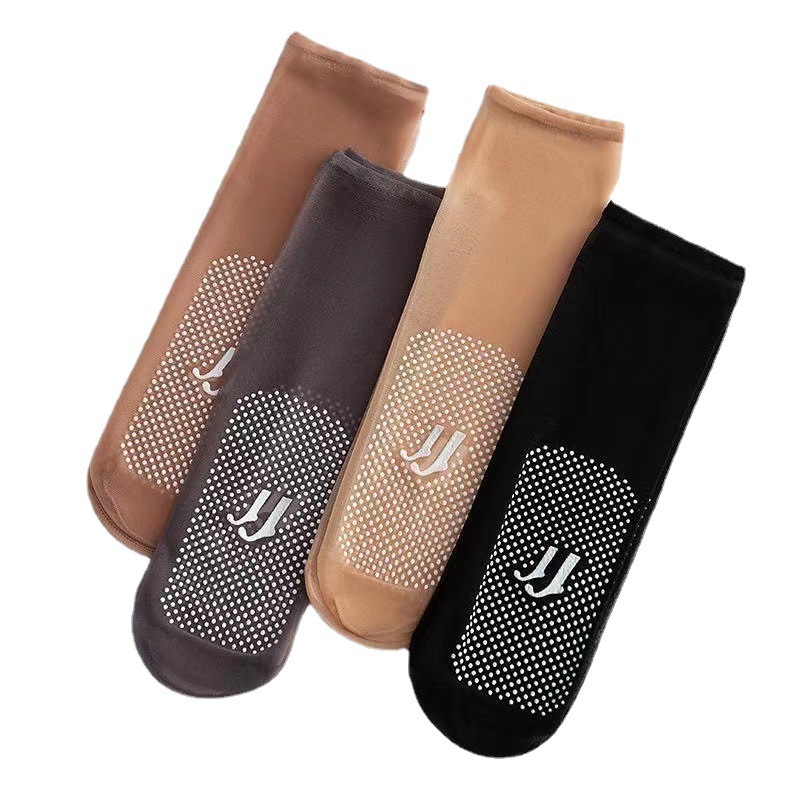 防滑硅胶天鹅绒水晶丝袜女耐磨透气超薄短款点胶包芯丝中筒袜子