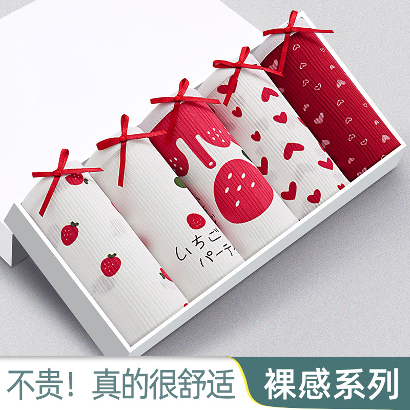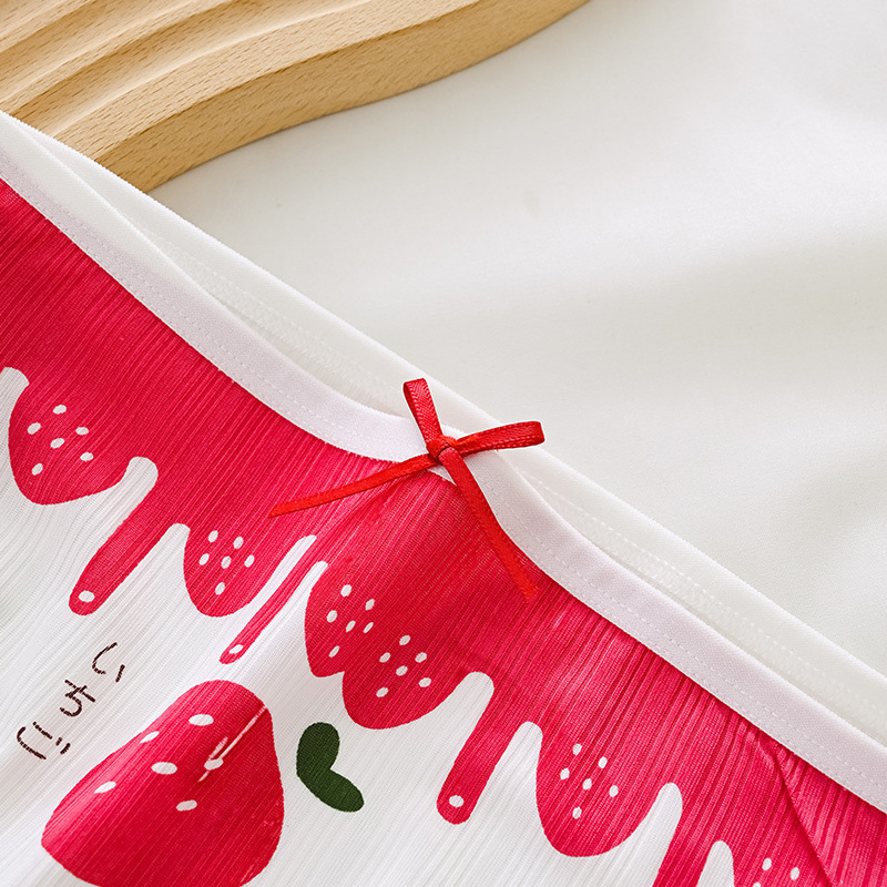 跨境牛奶丝草莓中腰透气内裤女日系可爱甜美印花少女学生三角短裤