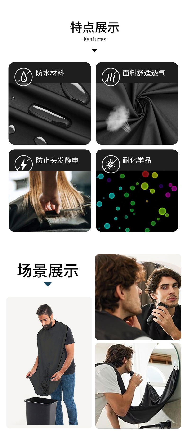 跨境理发围布涤塔夫吸盘剃须围布理发店清洁胡须围兜男士造型成人