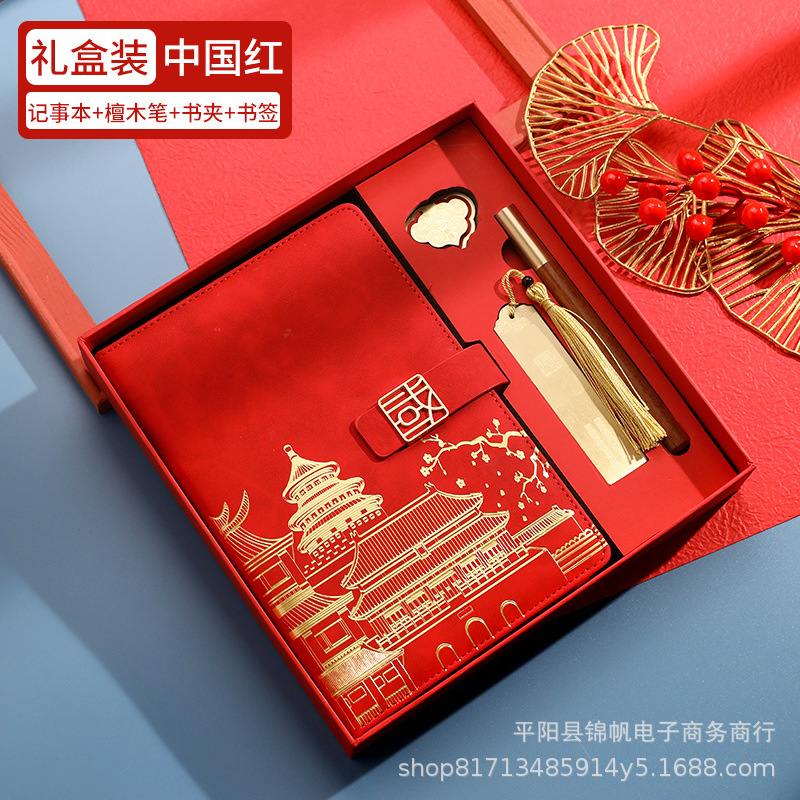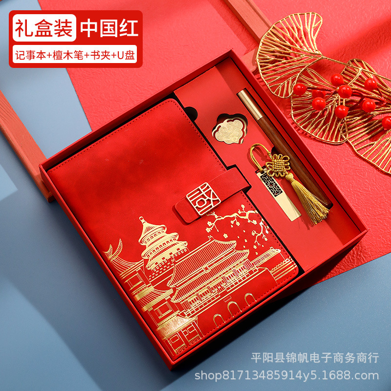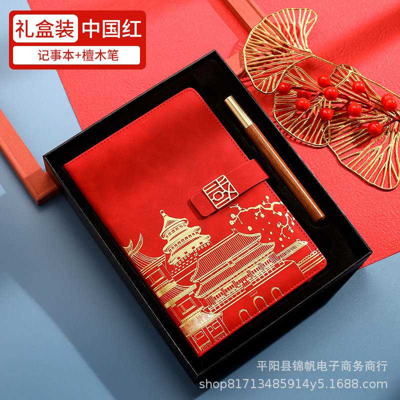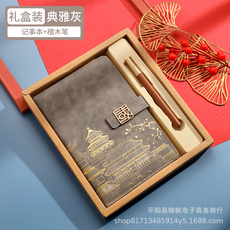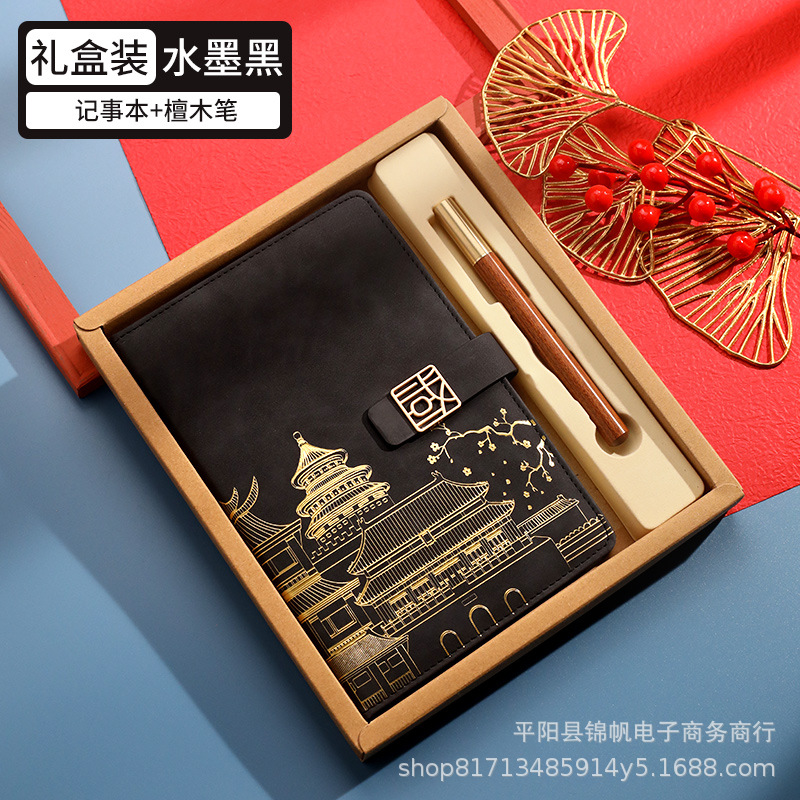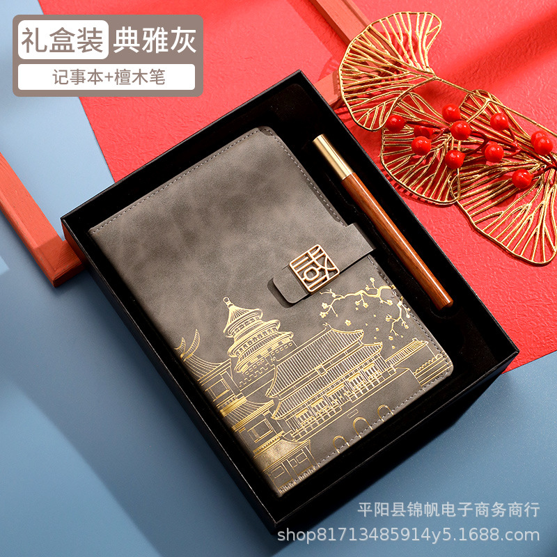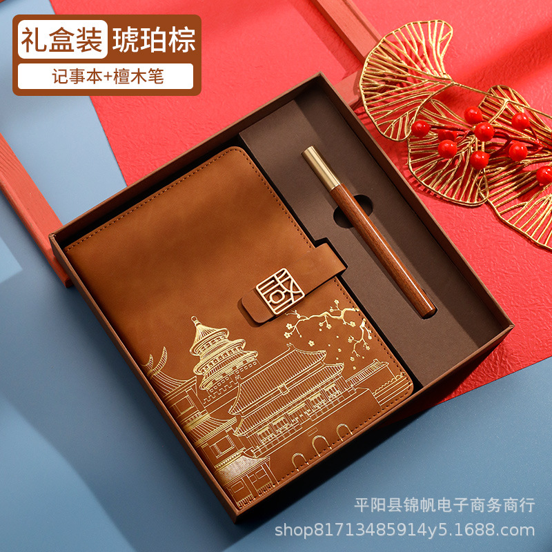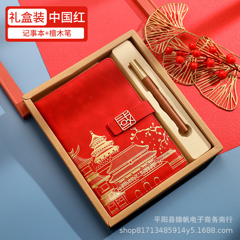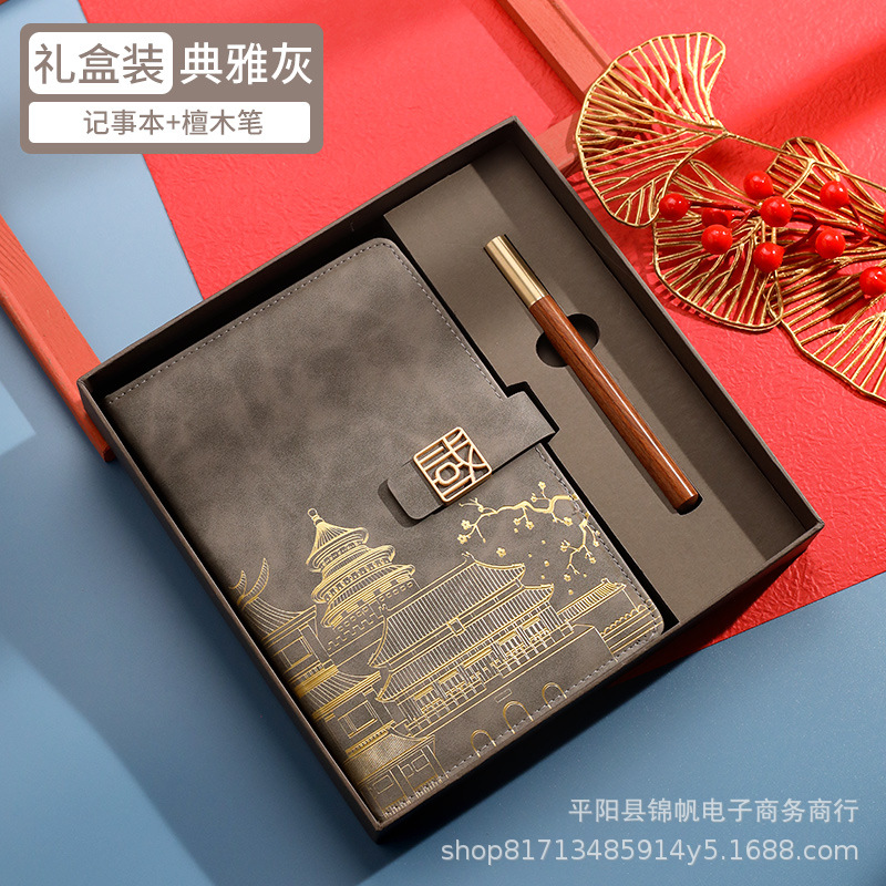 国潮笔记本礼盒套装A5复古精致文创商务会议办公记事本定 制LOGO