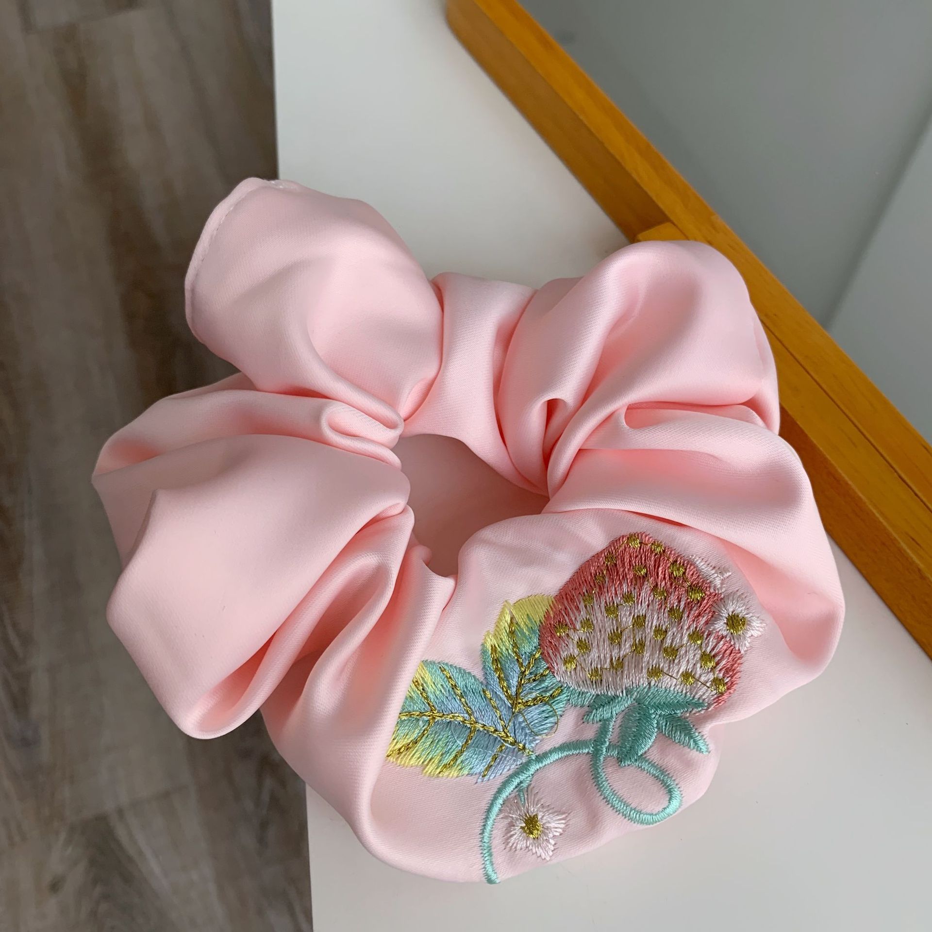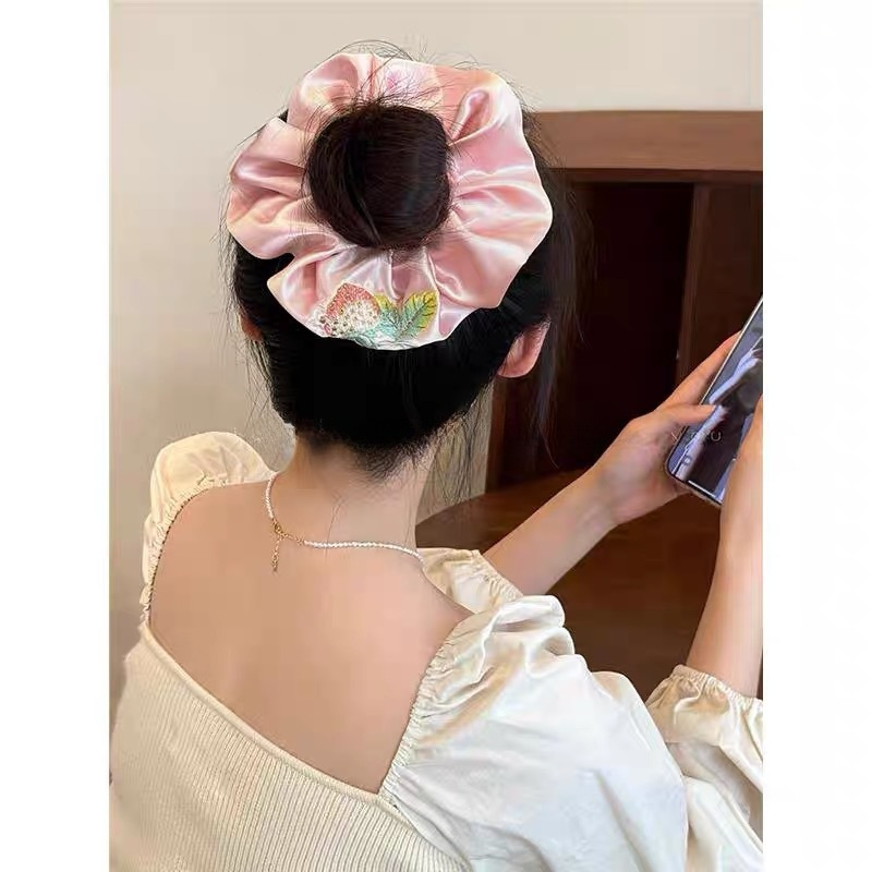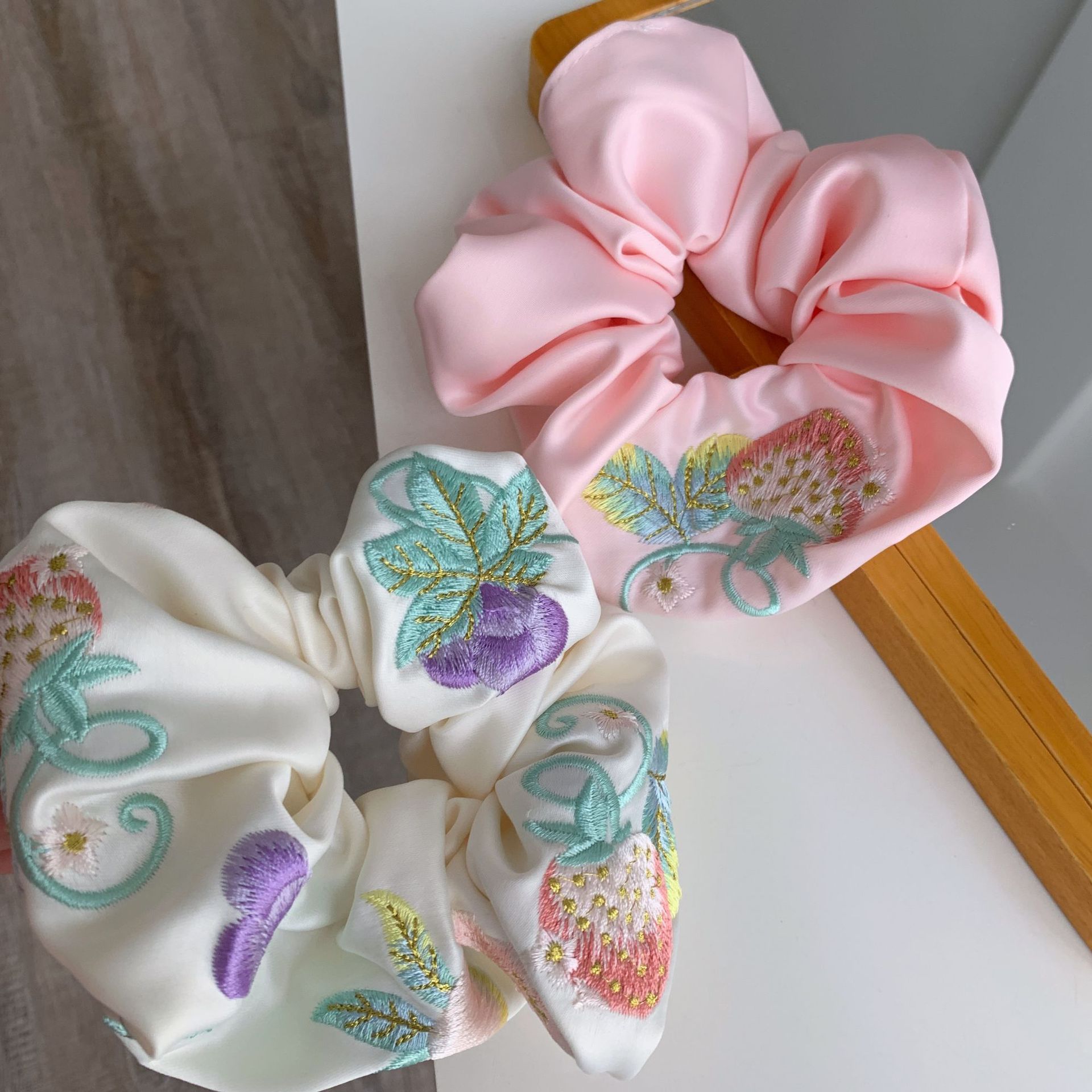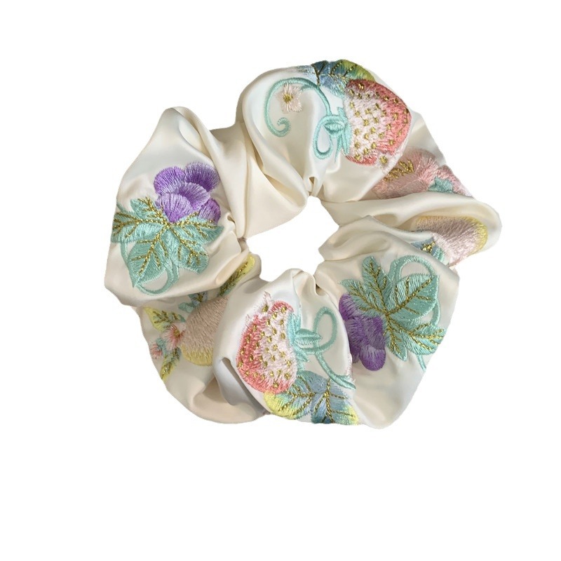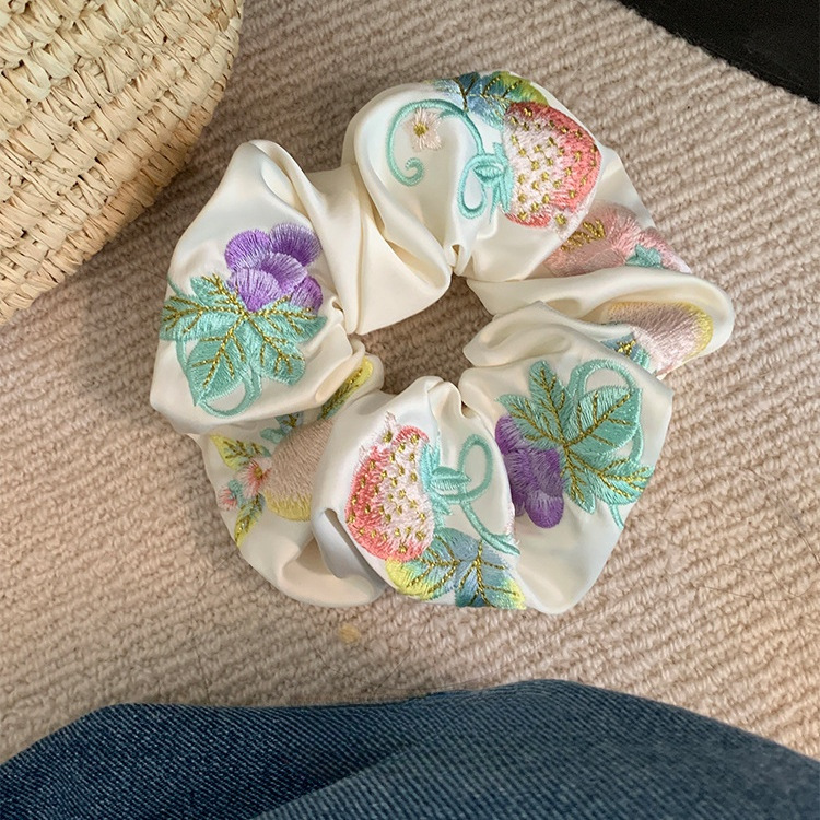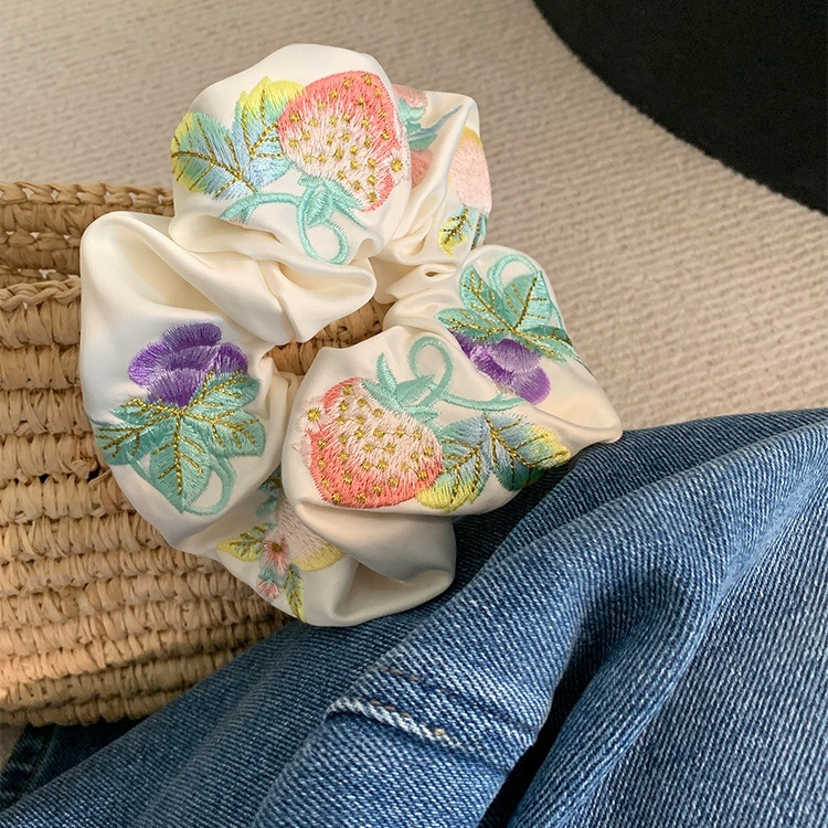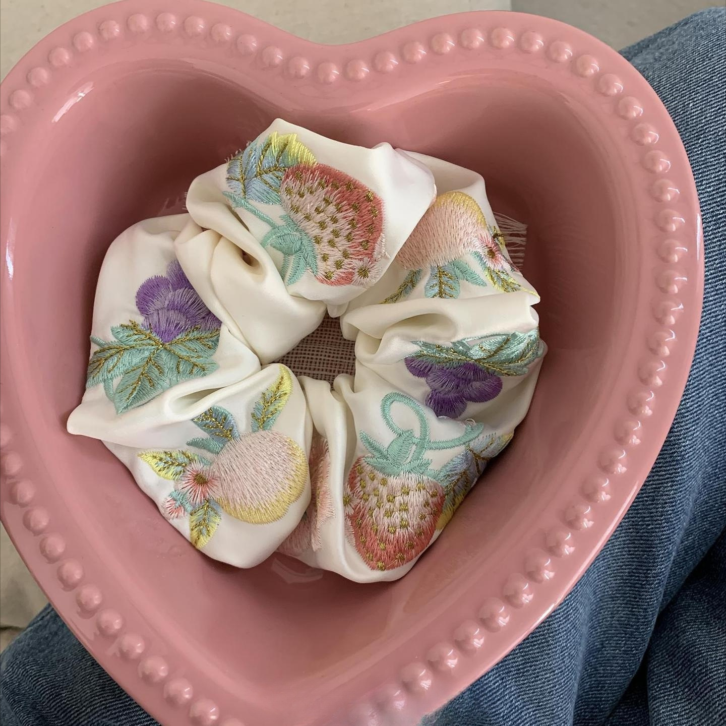 韩国刺绣草莓葡萄缎面质感大肠圈清新甜美弹力发绳文艺少女发饰女
