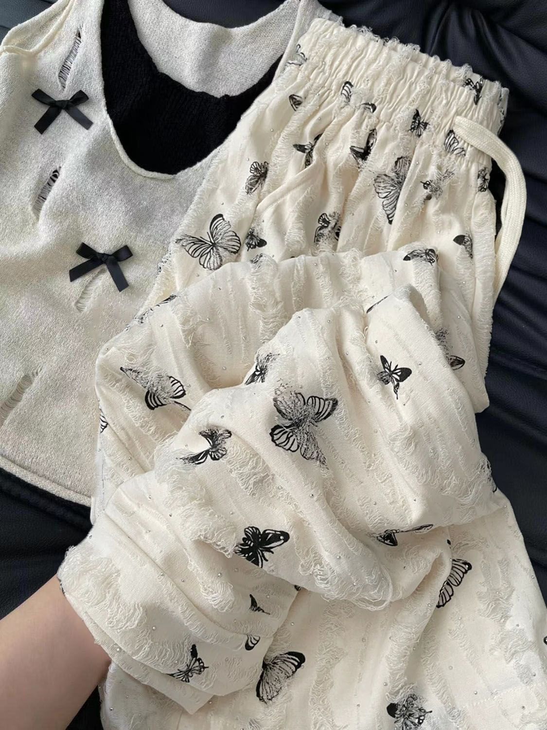 休闲裤套装女2024新款夏季搭配一整套甜辣妹吊带蝴蝶结裤子两件套