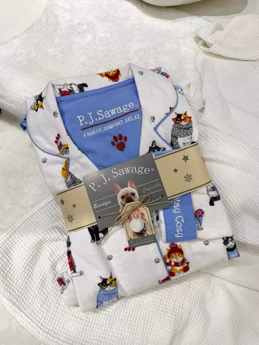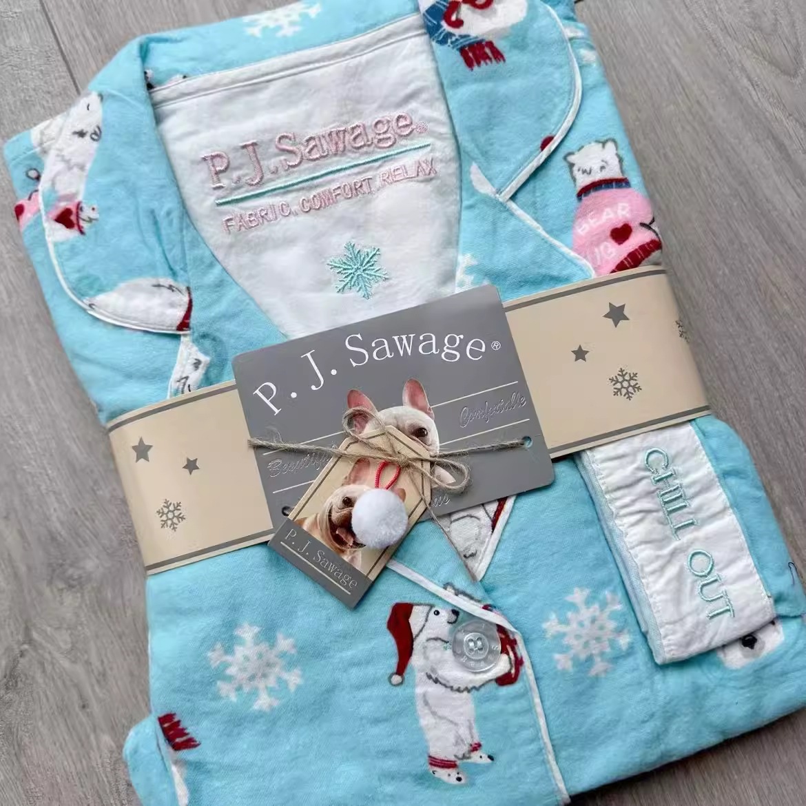 同款官网同步~出口美国PJS可爱秋冬加厚磨毛长袖长裤套装 棉质睡