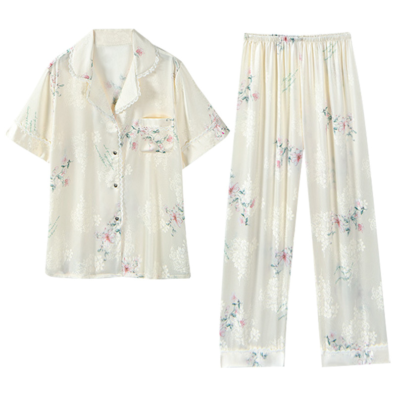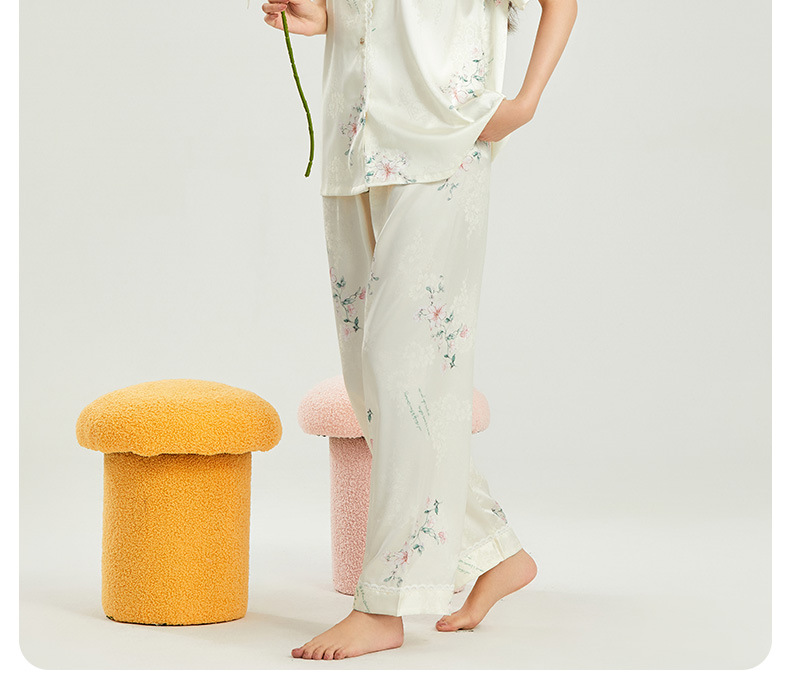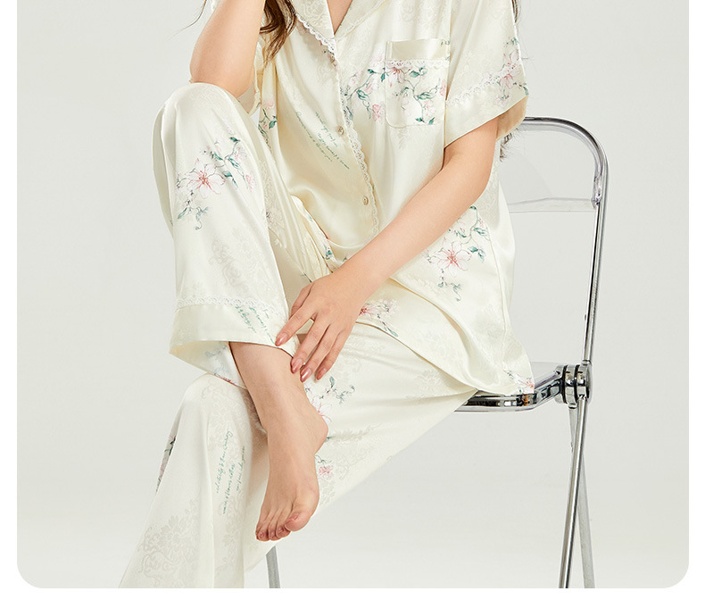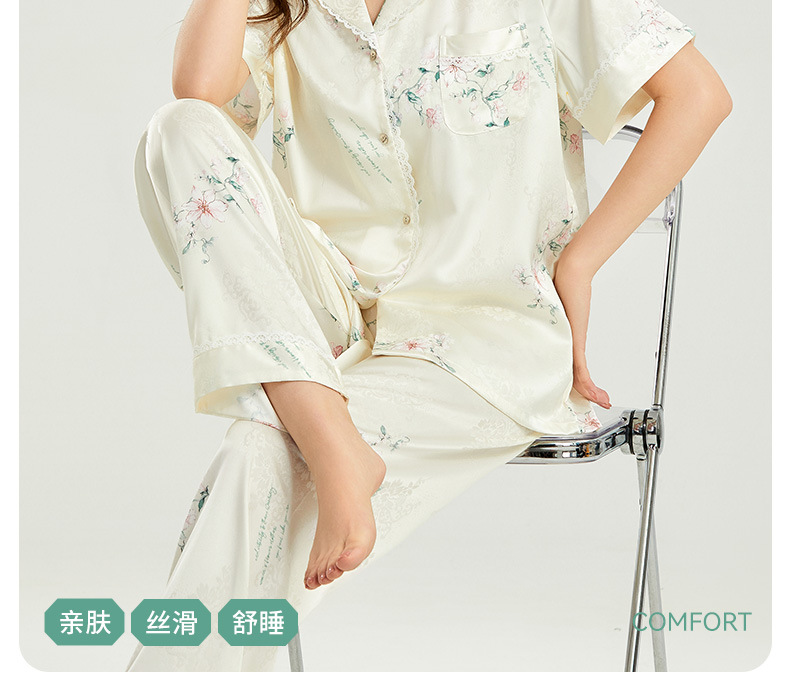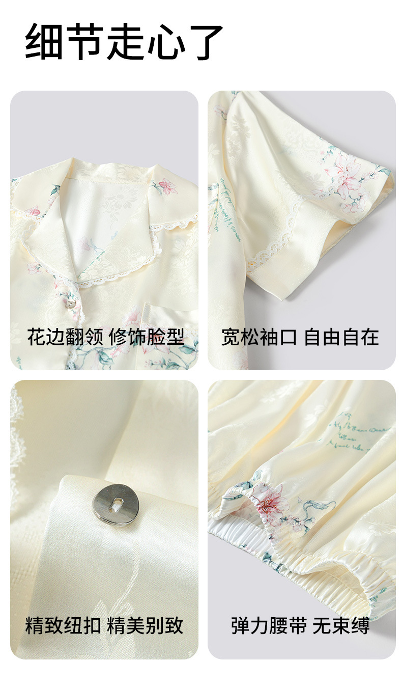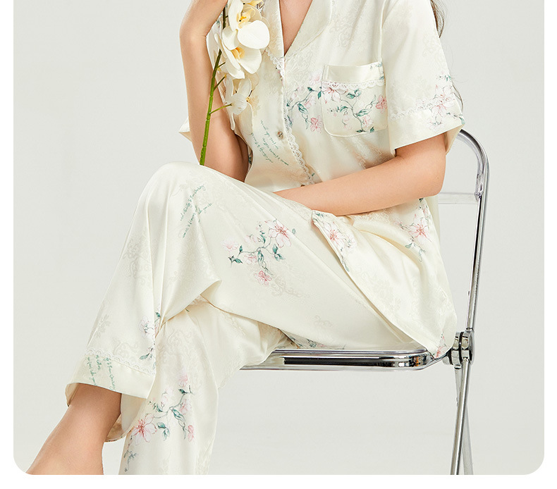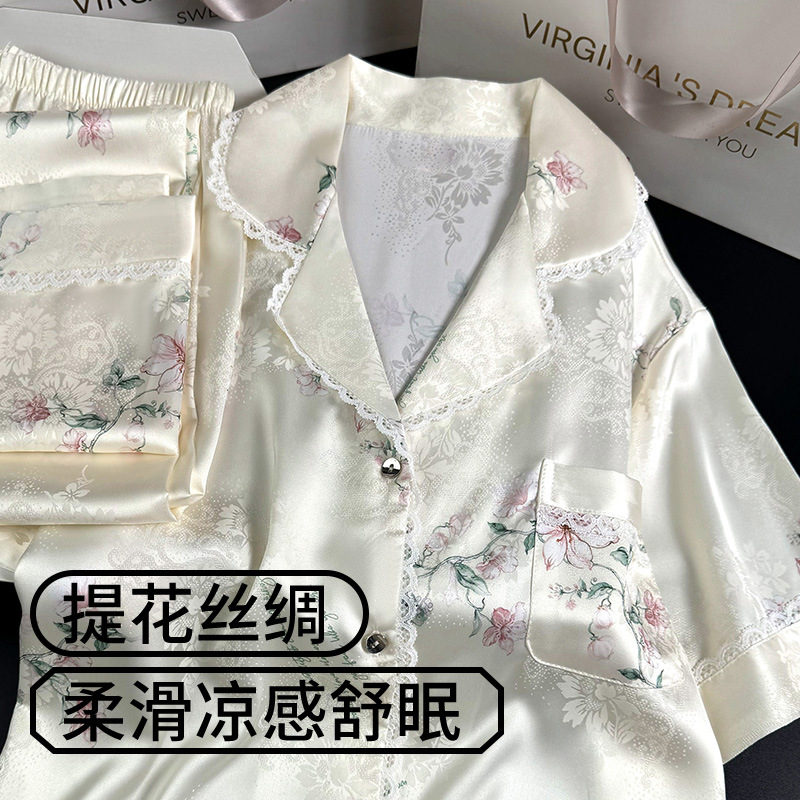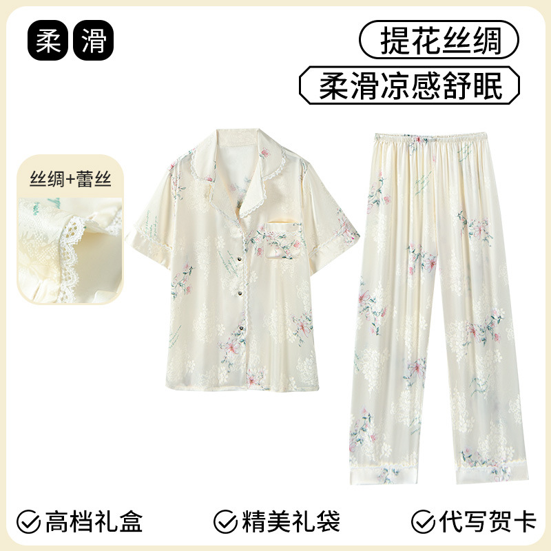 【送老婆】精致提花丝绸睡衣女夏凉感家居服女套装七夕情人送女友