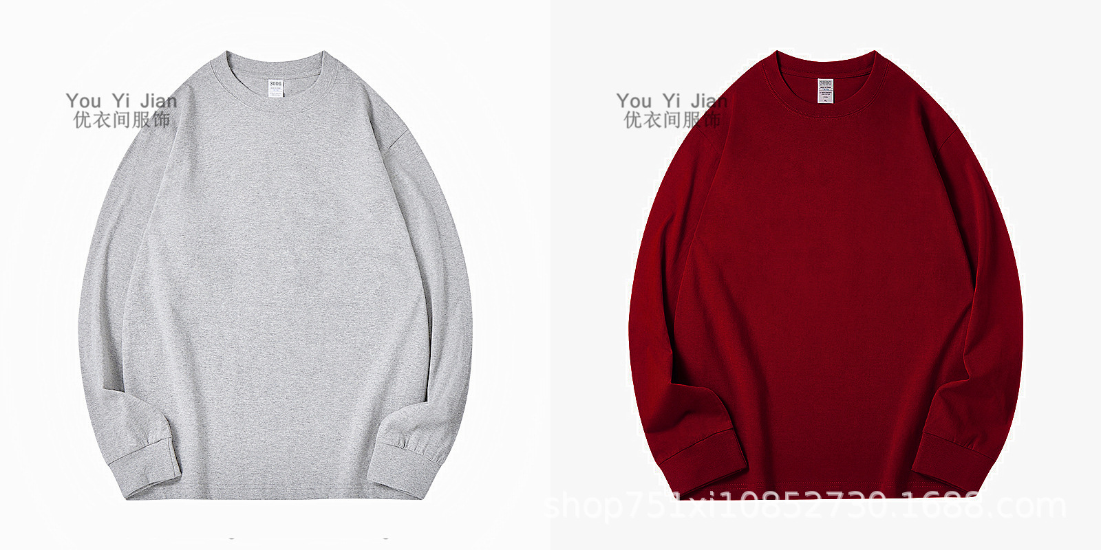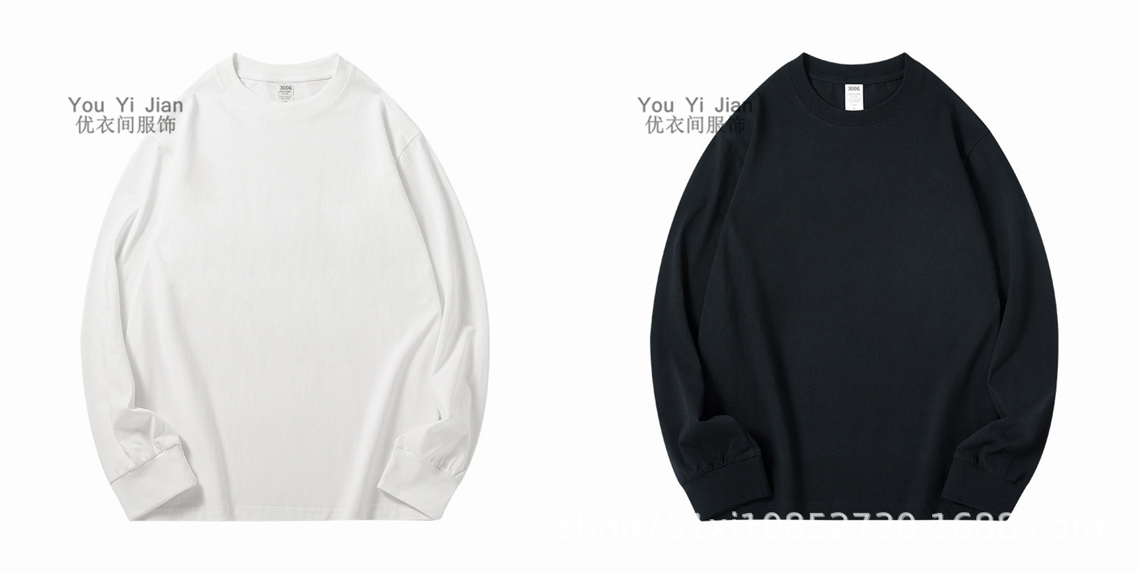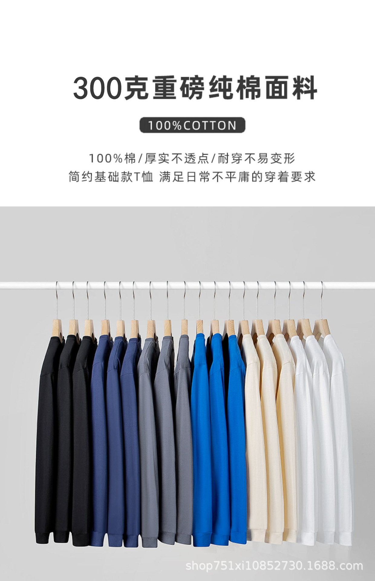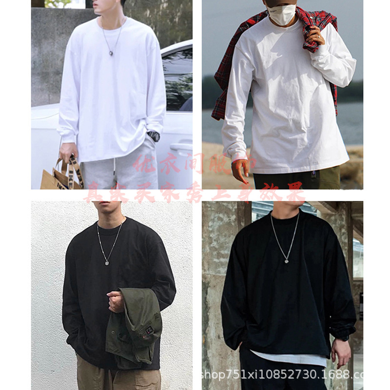 新疆棉 300g重磅纯棉长袖宽松纯白色上衣内搭厚实打底衫t恤男女款