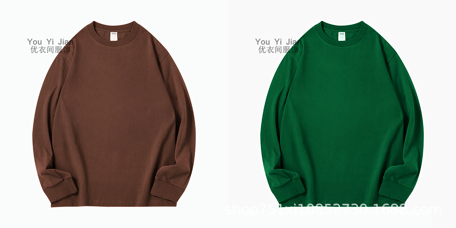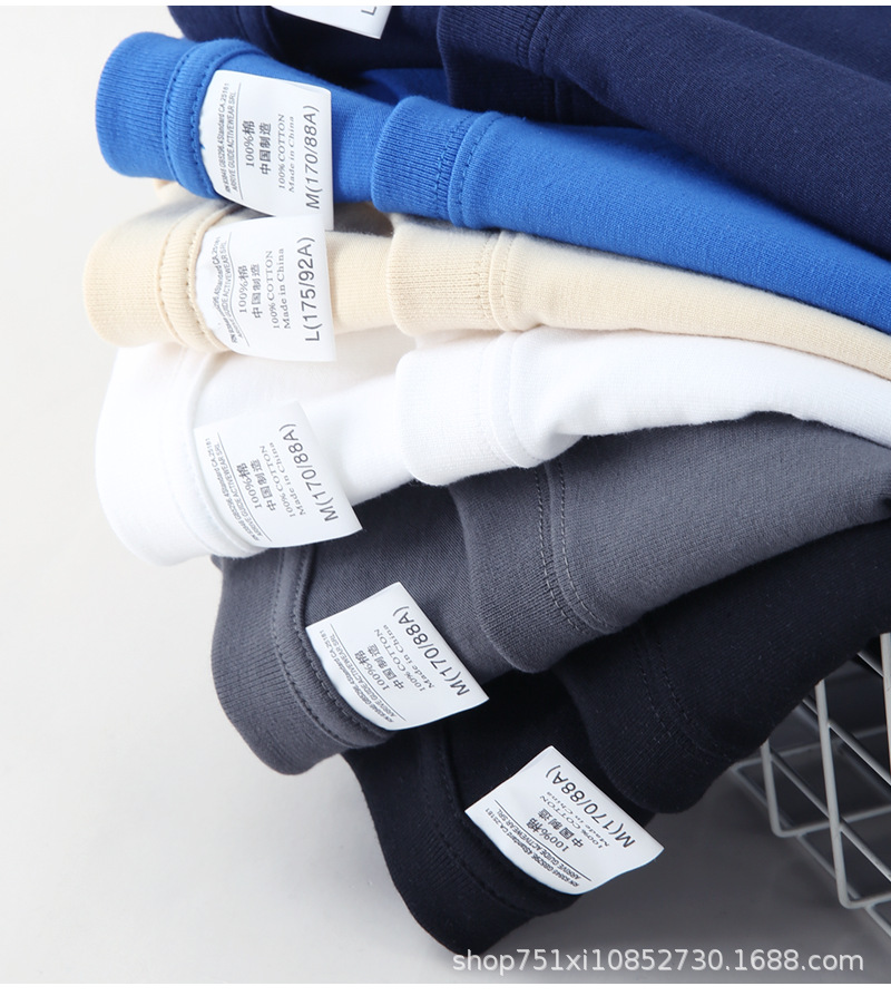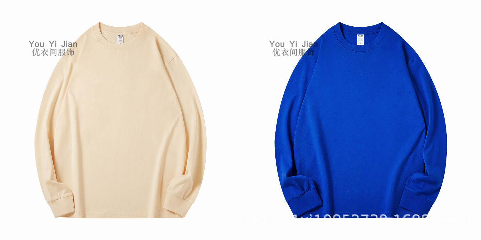 新疆棉 300g重磅纯棉长袖宽松纯白色上衣内搭厚实打底衫t恤男女款