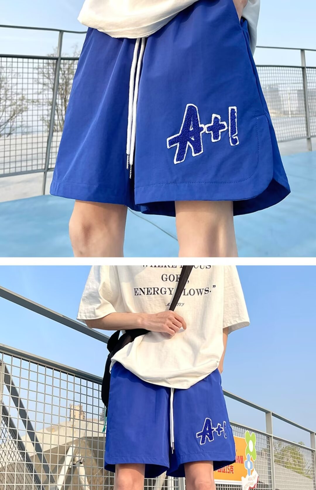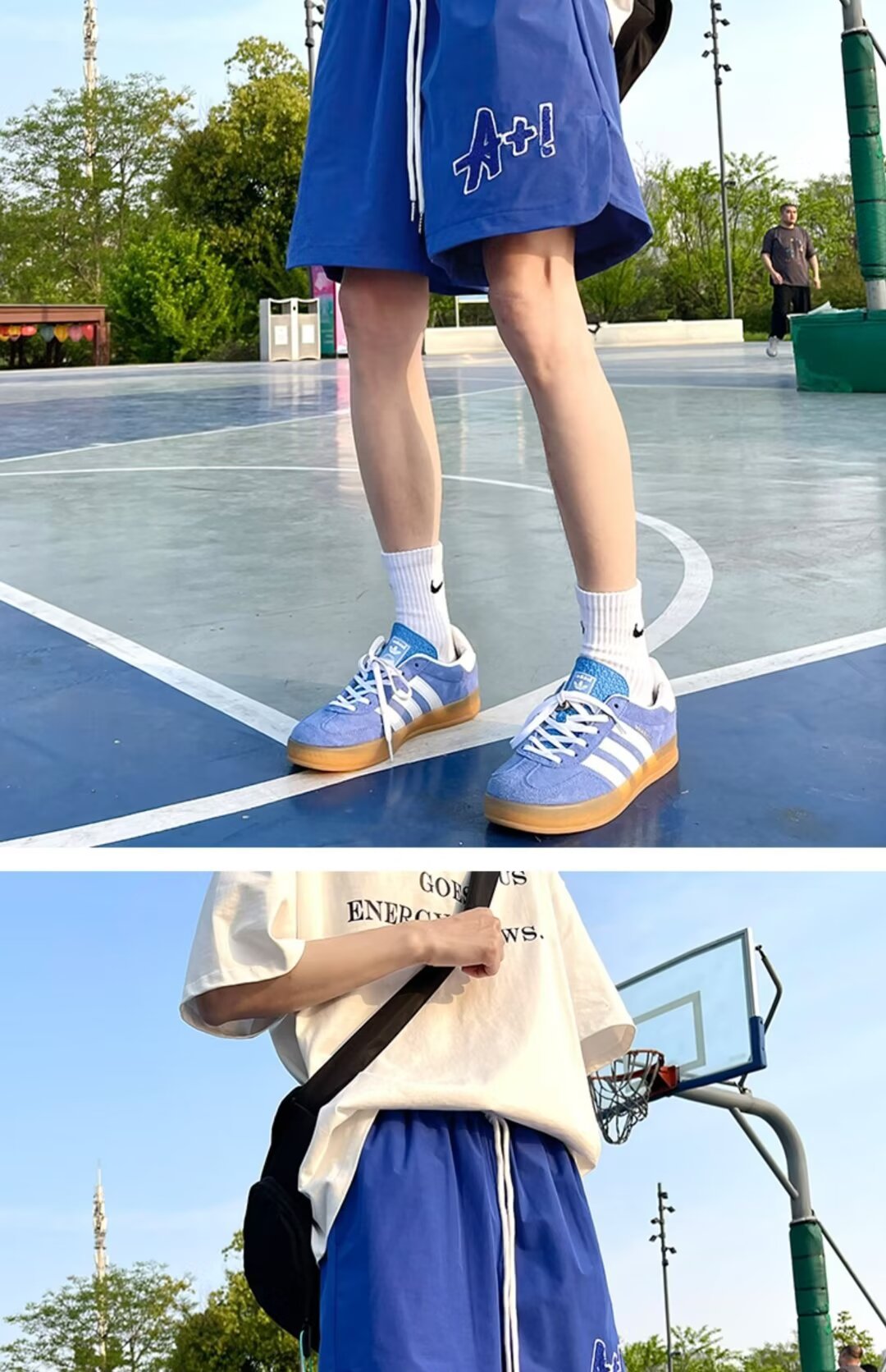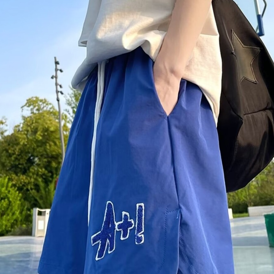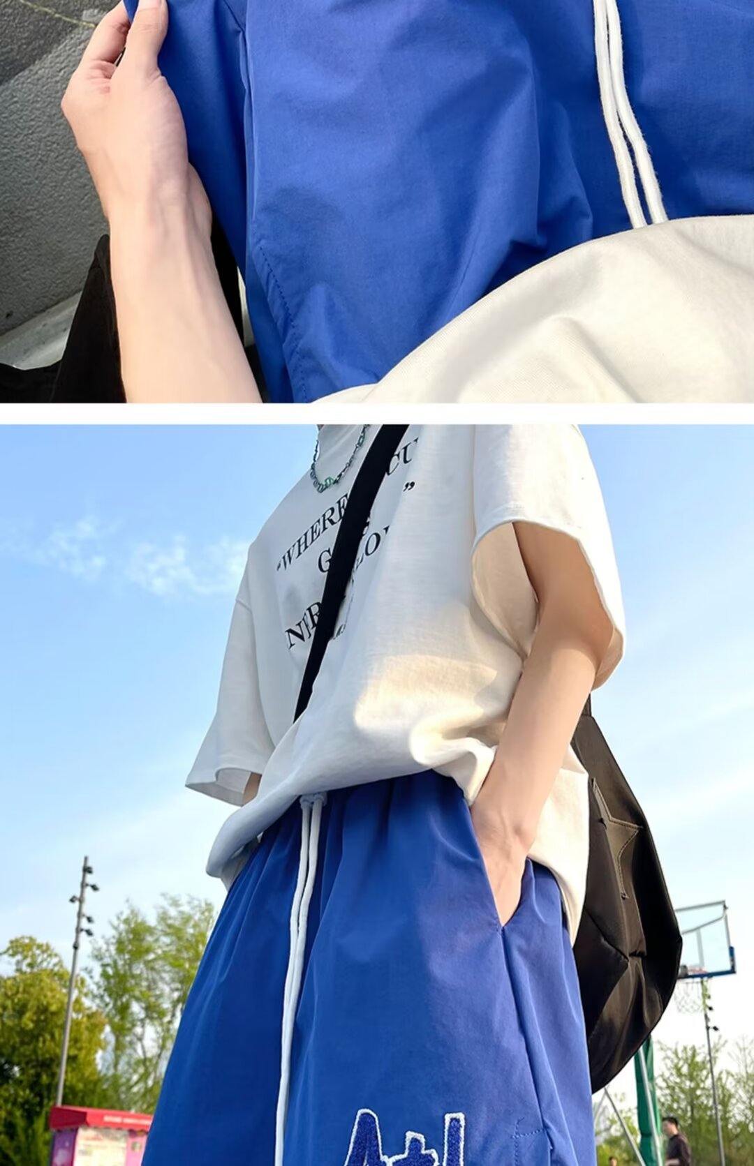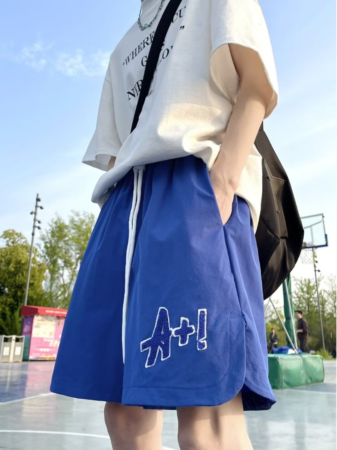 克莱因蓝美式街头短裤男夏季潮牌过膝直筒裤子冰丝速干篮球六分裤