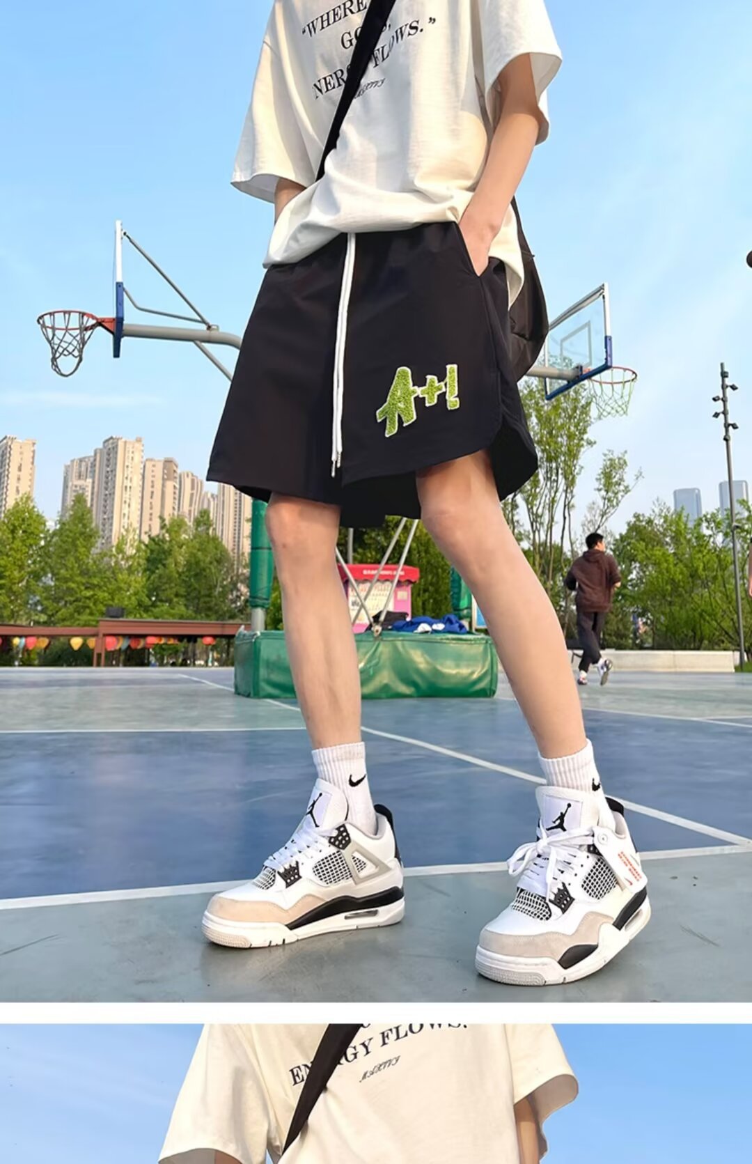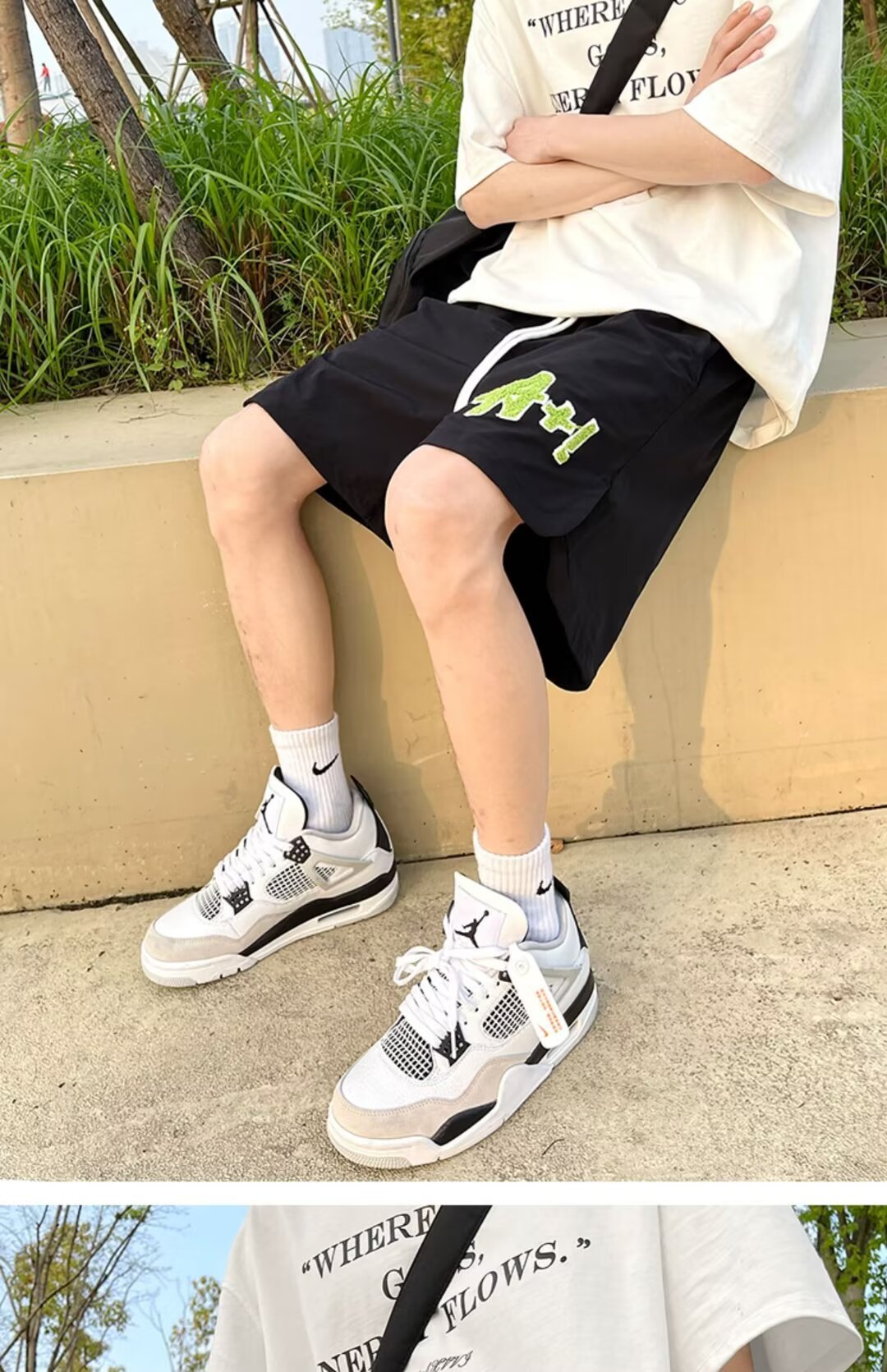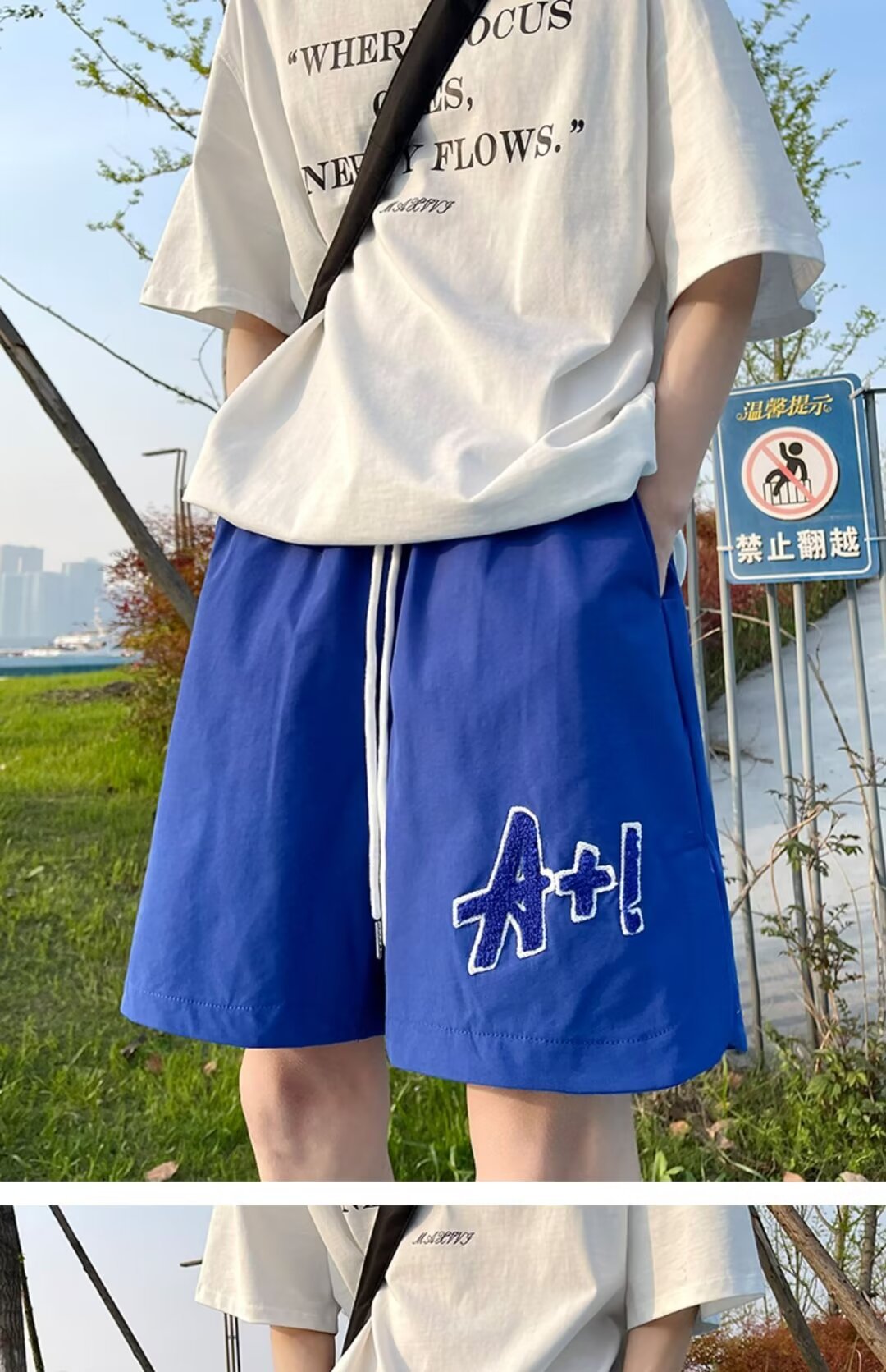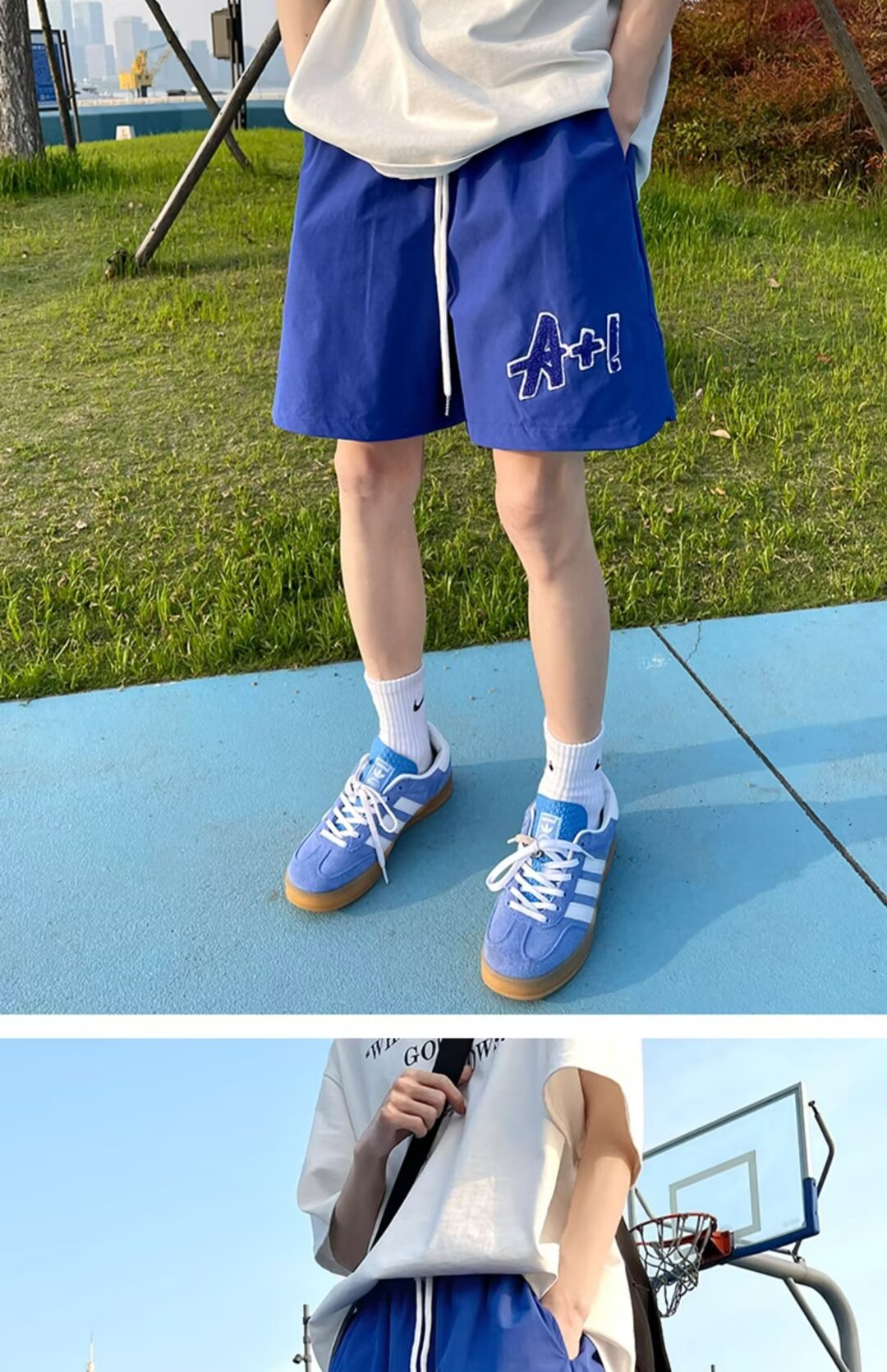克莱因蓝美式街头短裤男夏季潮牌过膝直筒裤子冰丝速干篮球六分裤