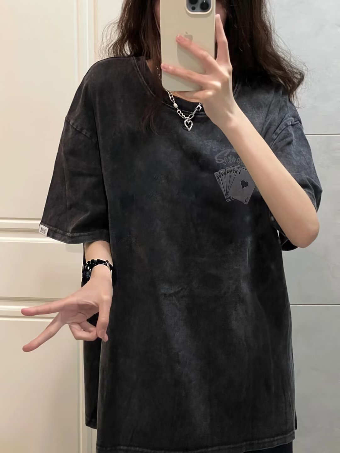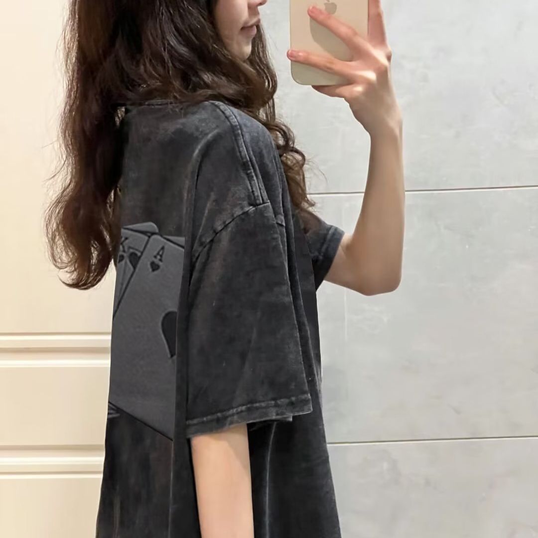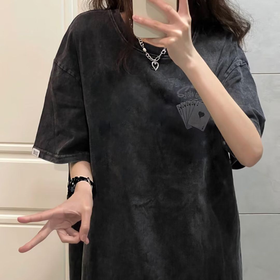 水洗做旧黑色T恤女短袖夏日多巴胺穿搭宽松oversize美式潮牌上衣
