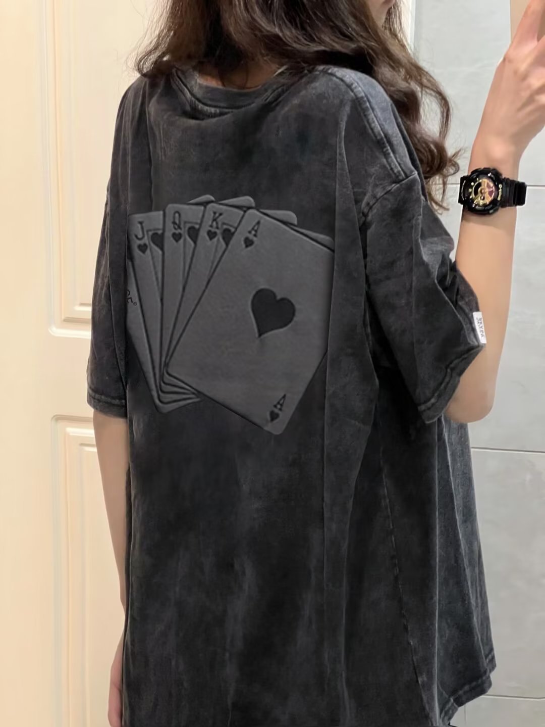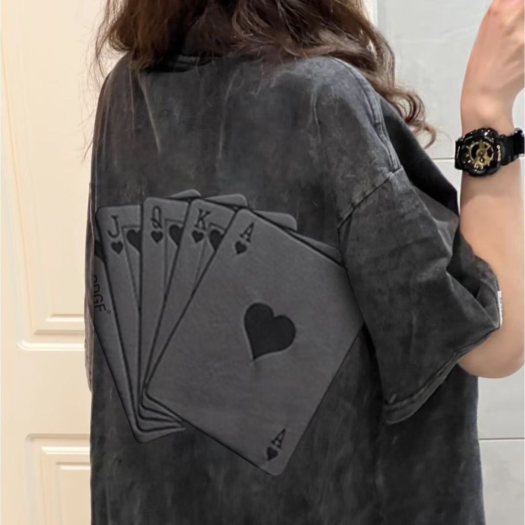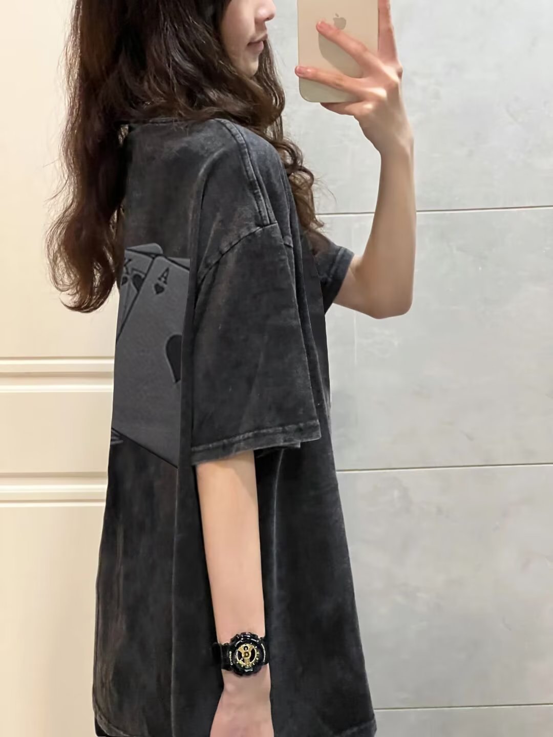 水洗做旧黑色T恤女短袖夏日多巴胺穿搭宽松oversize美式潮牌上衣