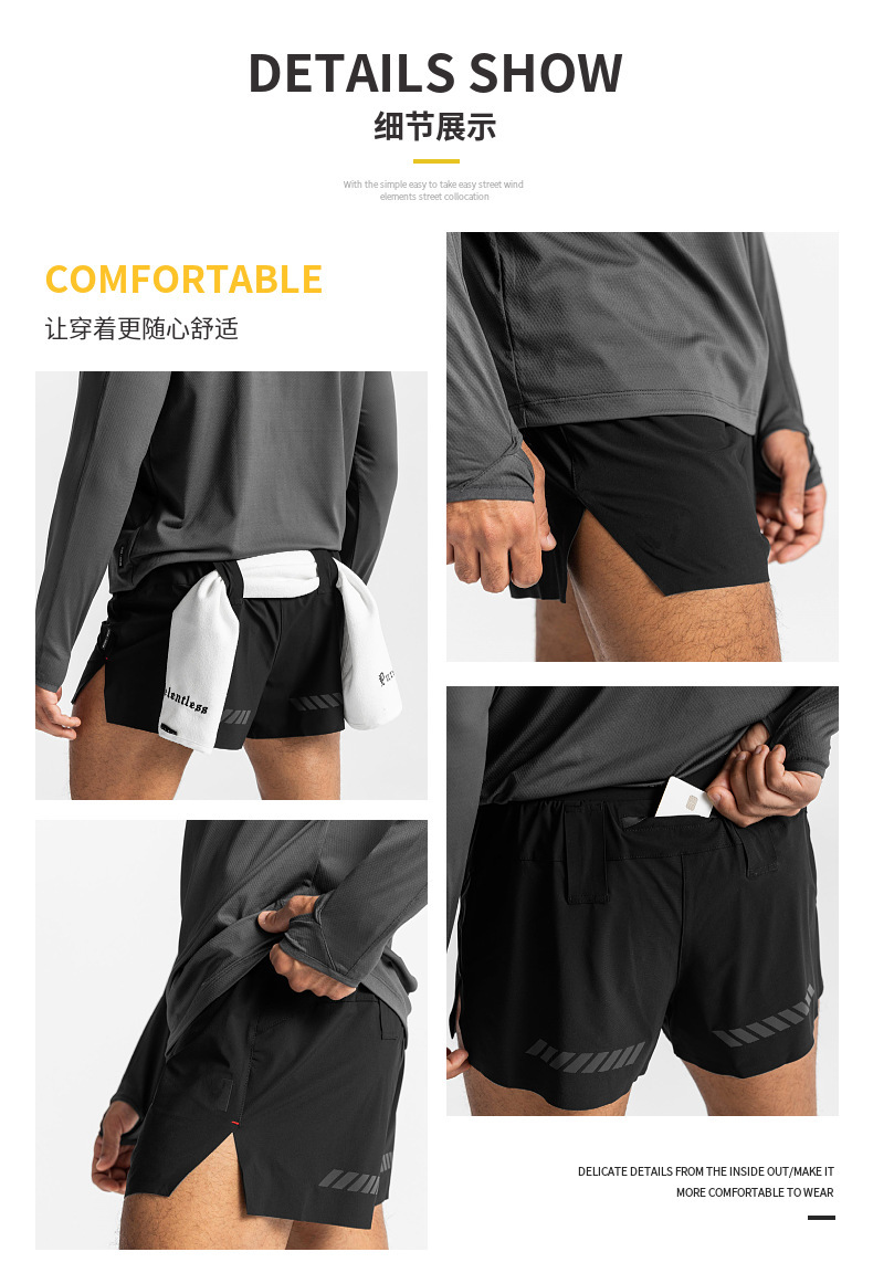 2023男装休闲裤子弹力男士简约休闲跑步运动速干三分成年宽松短裤