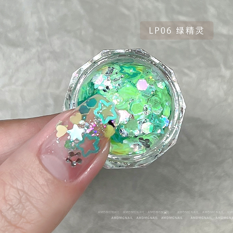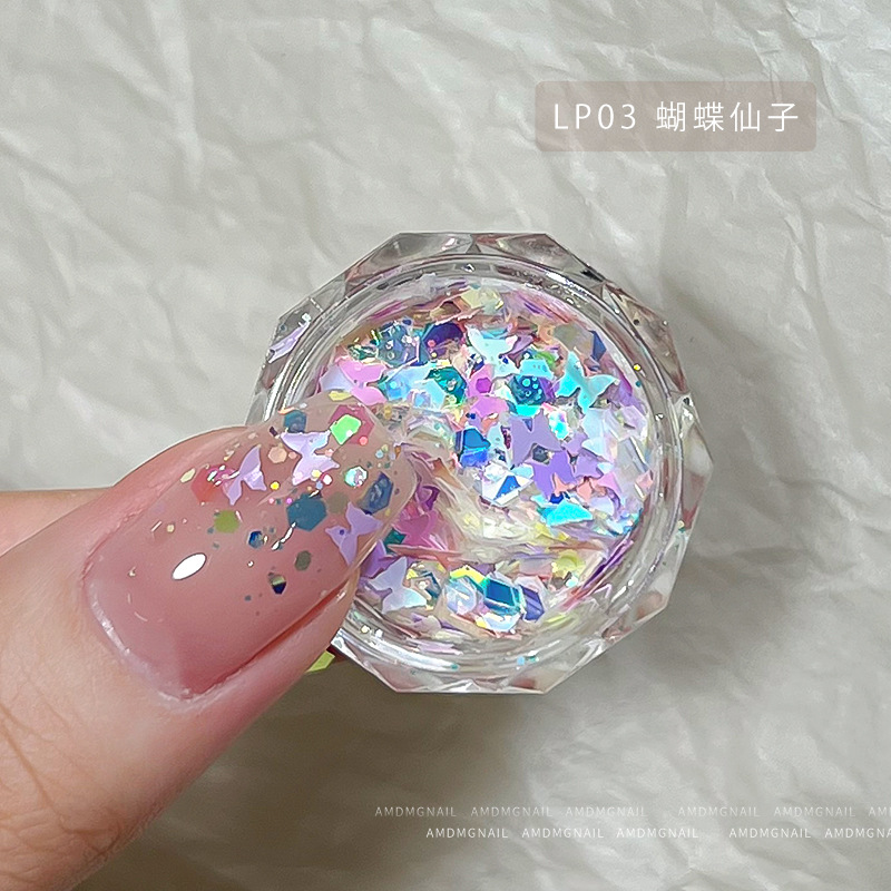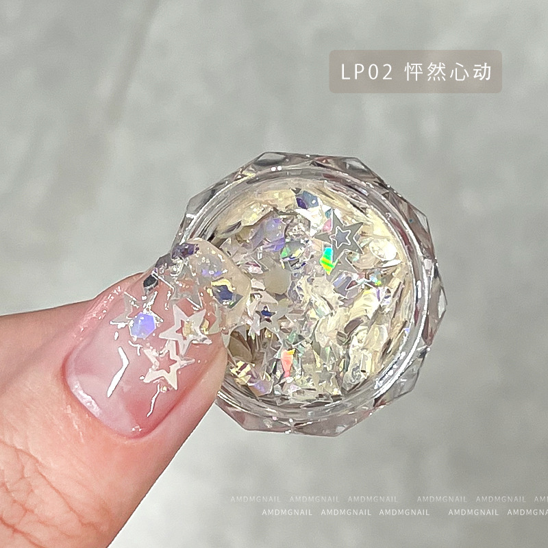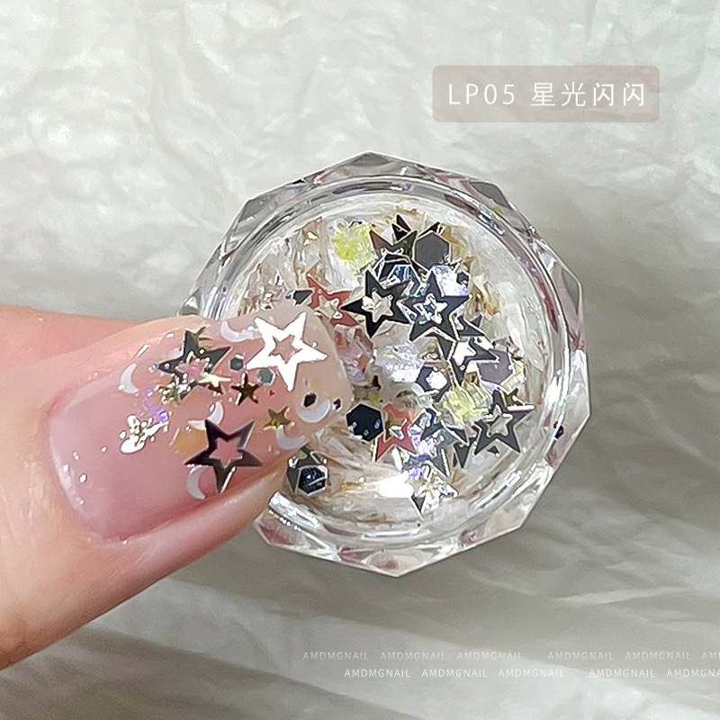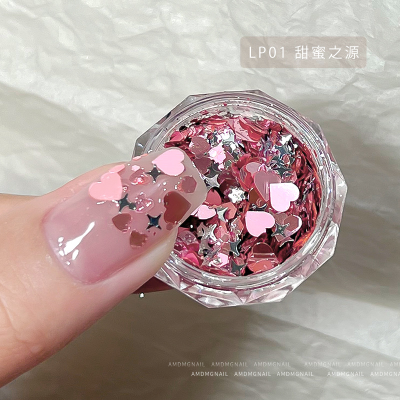 美甲亮片2024新款网红爆闪四星芒爱心星星少女粉色闪粉指甲装饰品