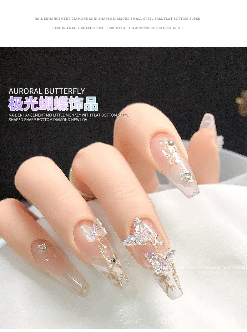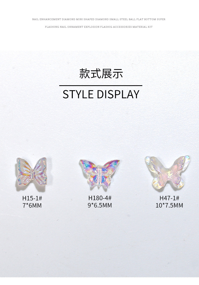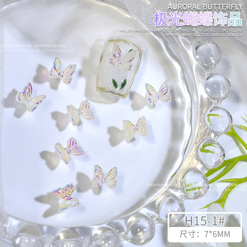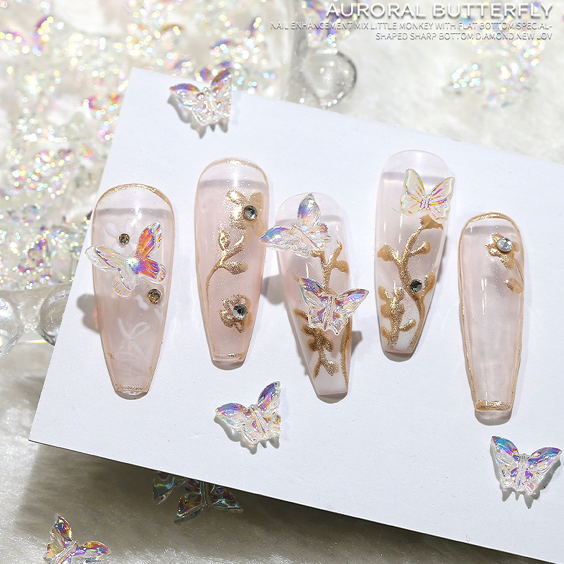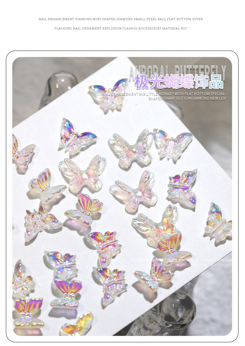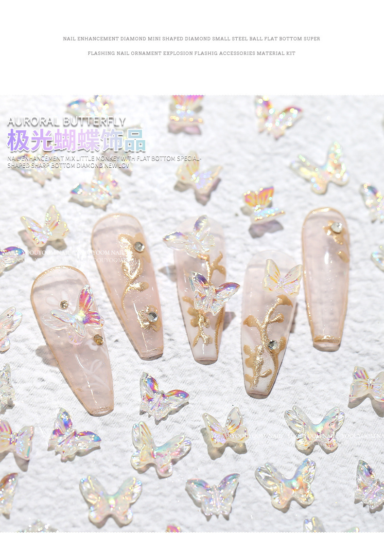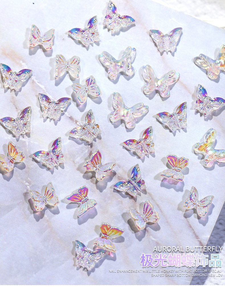 网红新款极光蝴蝶指甲饰品立体树脂幻彩小蝴蝶DIY穿戴甲美甲配饰