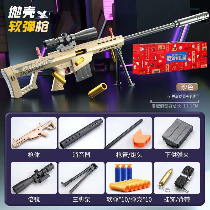 加大号巴雷特抛壳软弹枪加长消音玩具狙击步枪儿童男孩吃鸡玩具枪