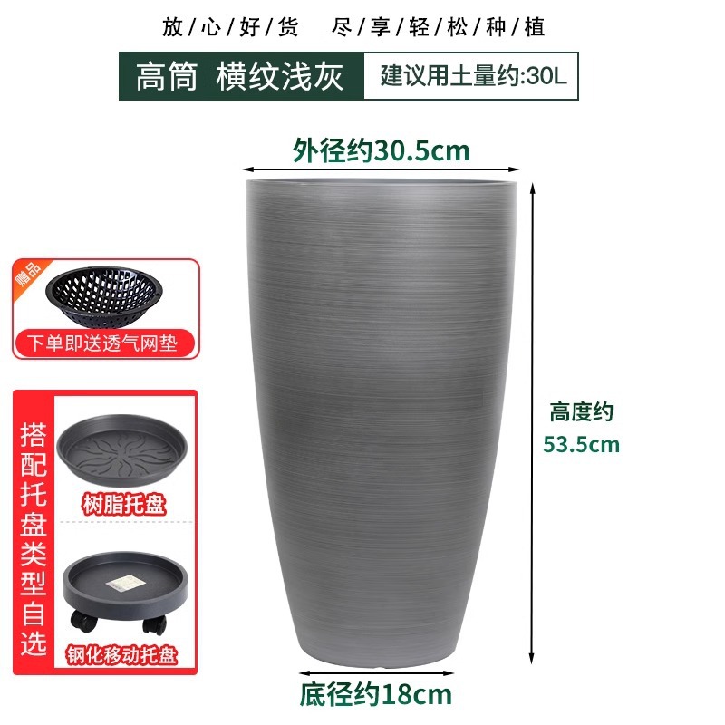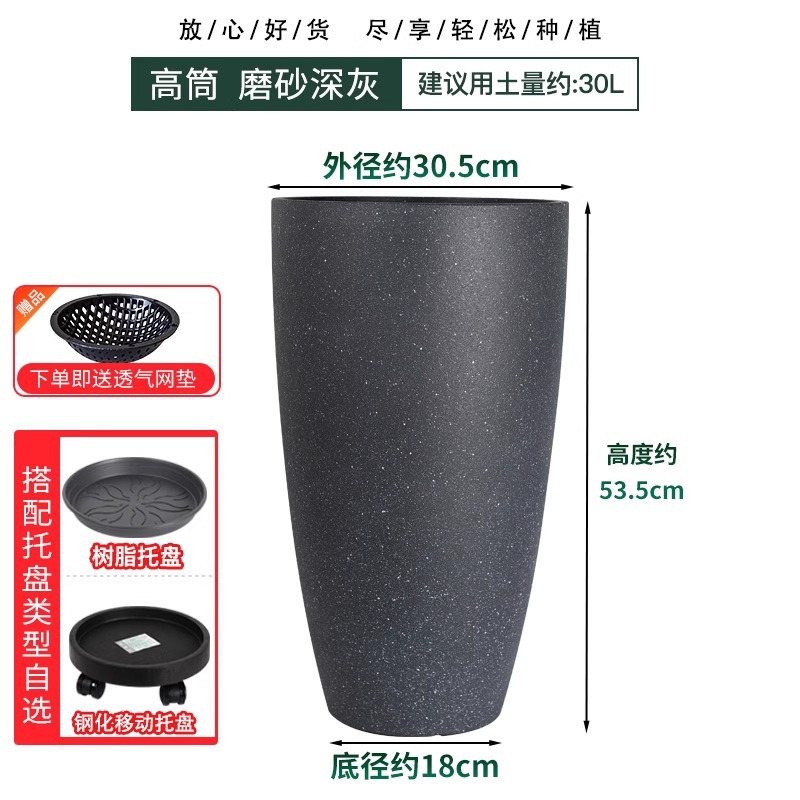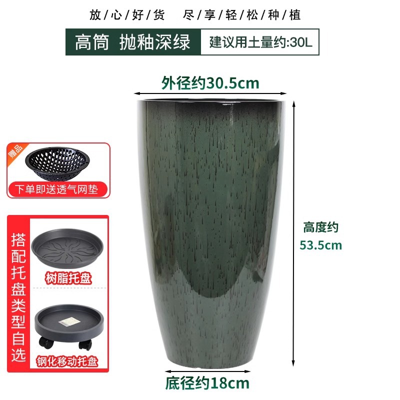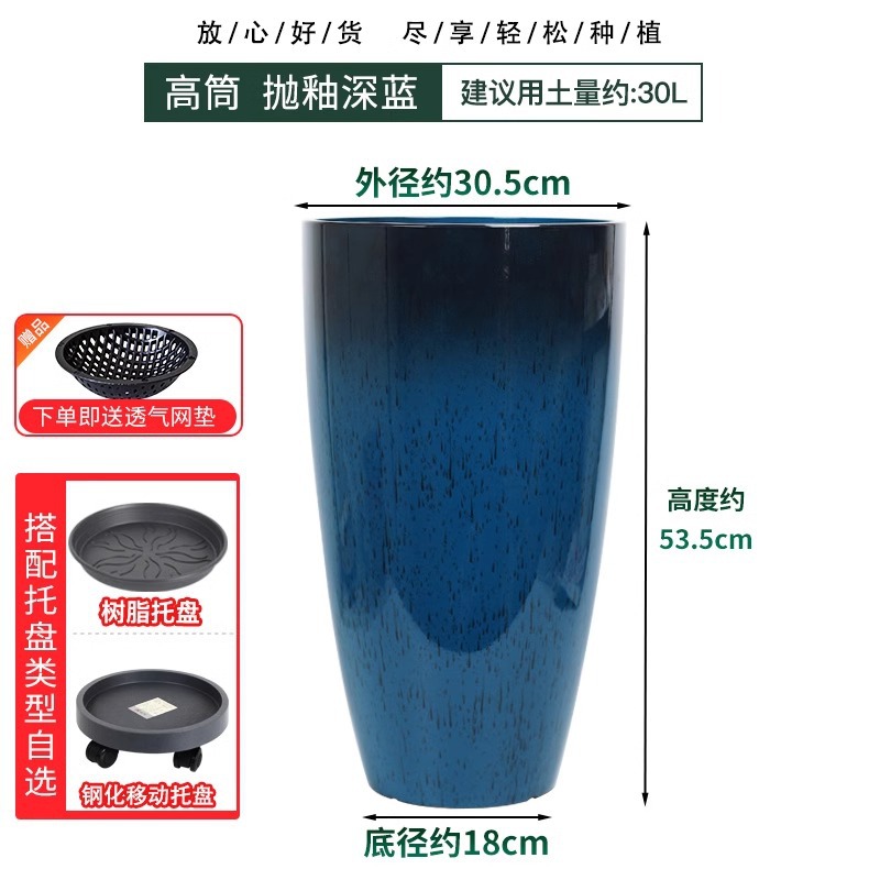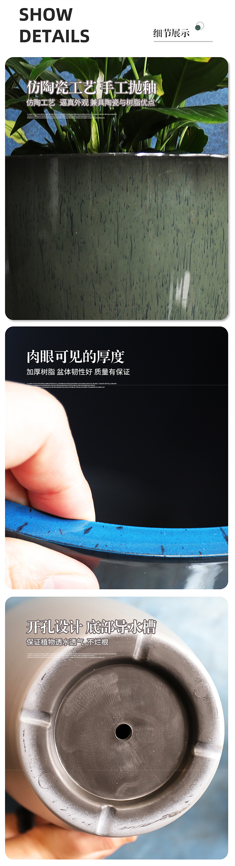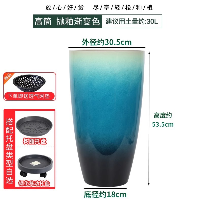 新品高光抛釉渐变色加厚树脂圆形花盆落地阳台环球花盆高筒盆