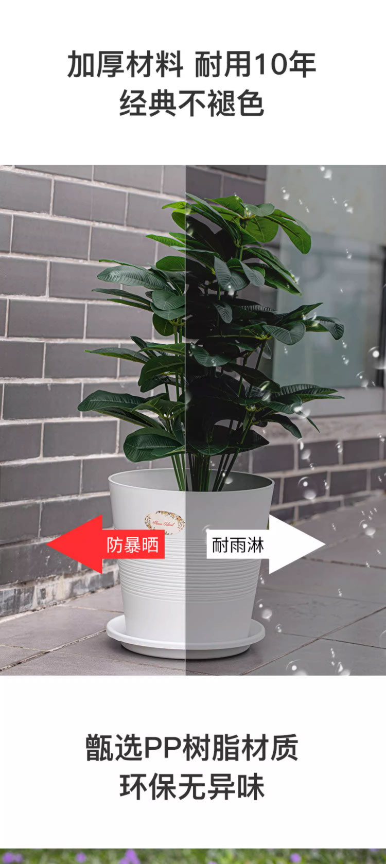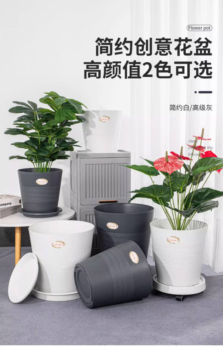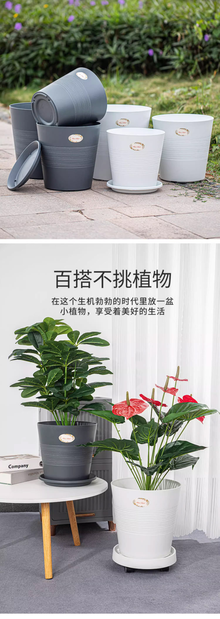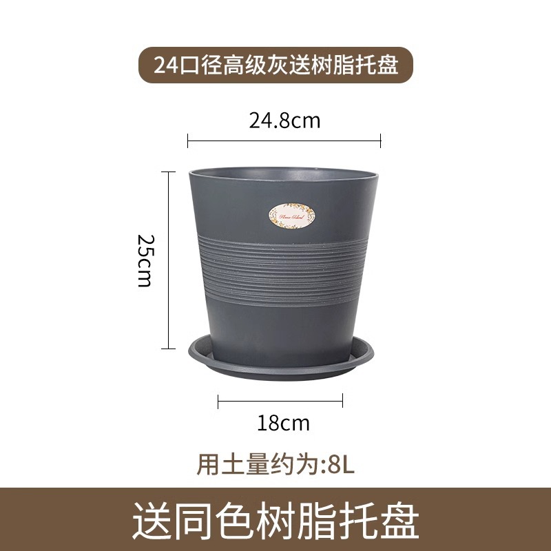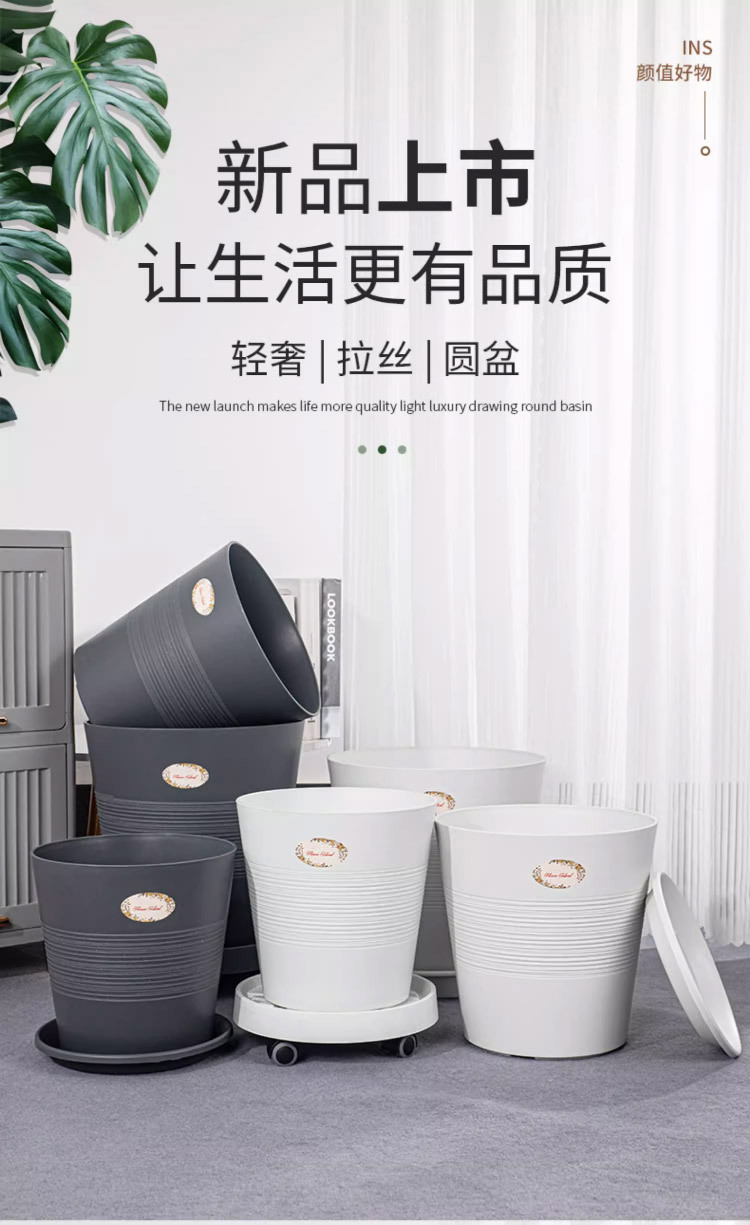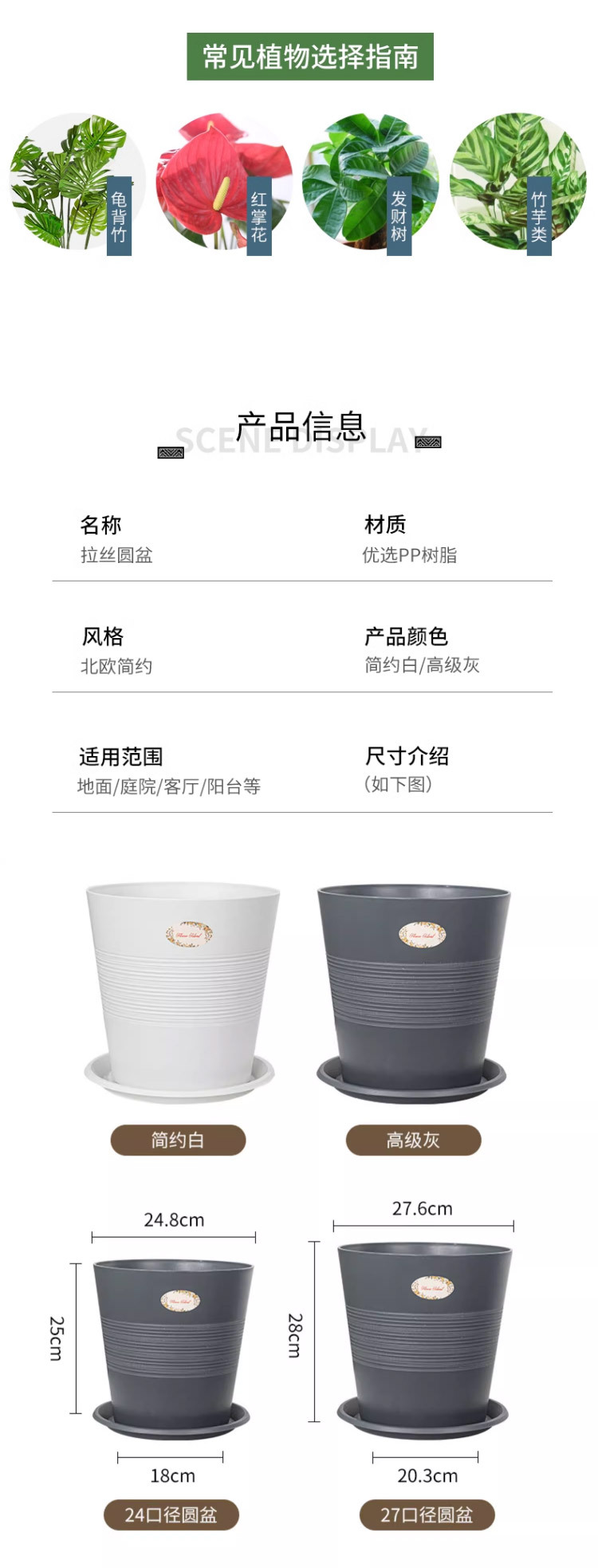轻奢树脂拉丝高款圆盆塑料盆北欧加厚大口径天堂鸟龟背竹绿植花卉