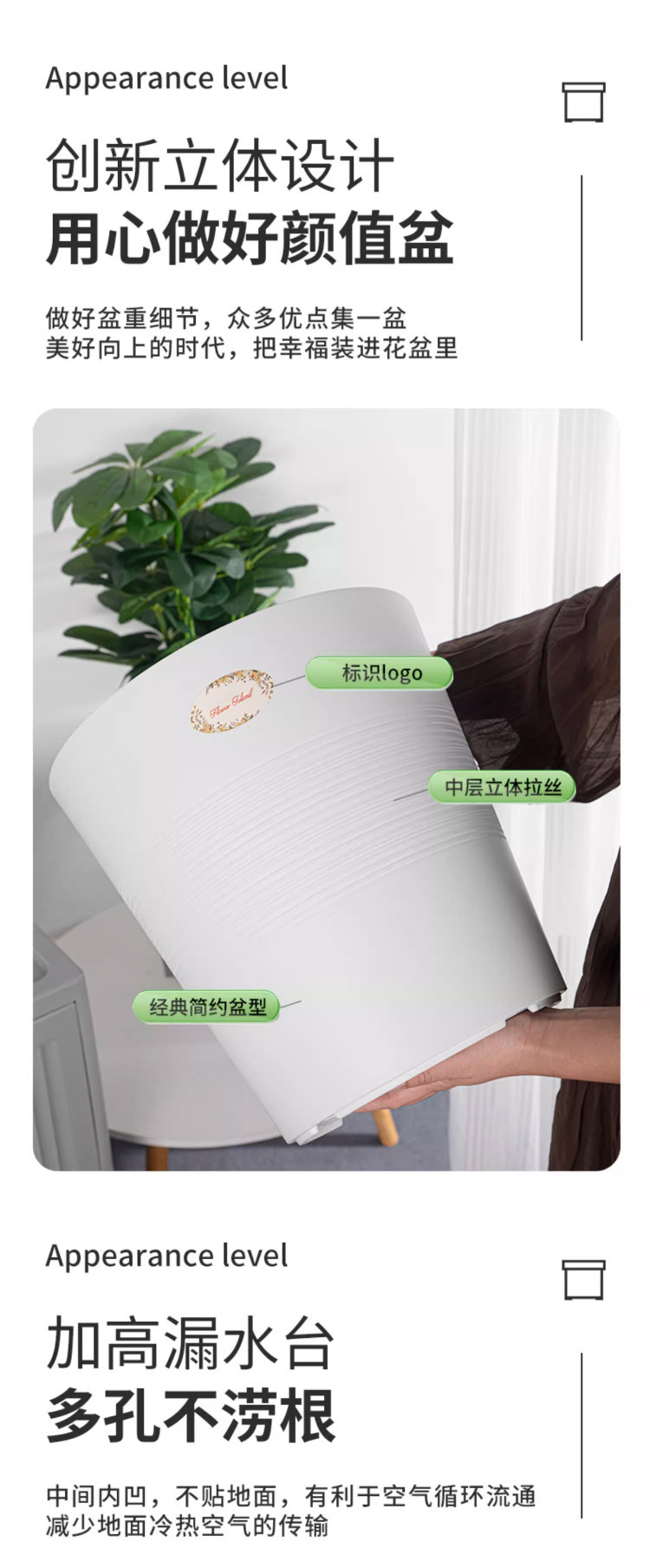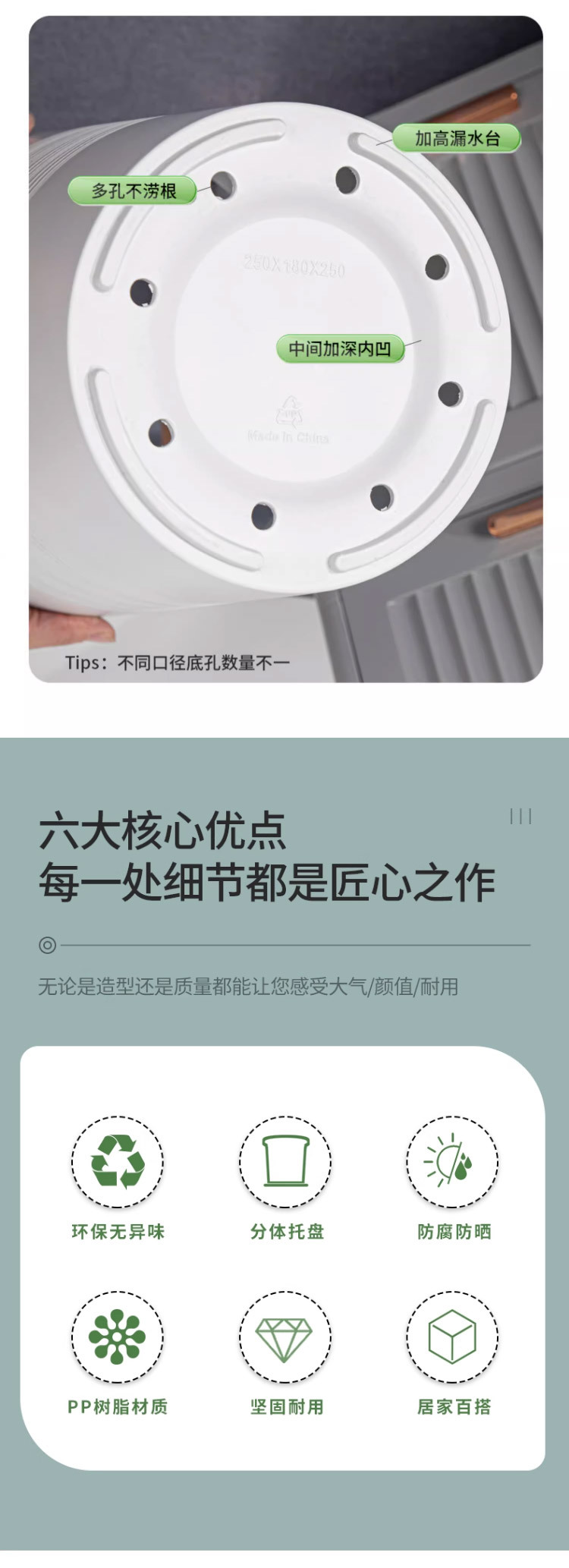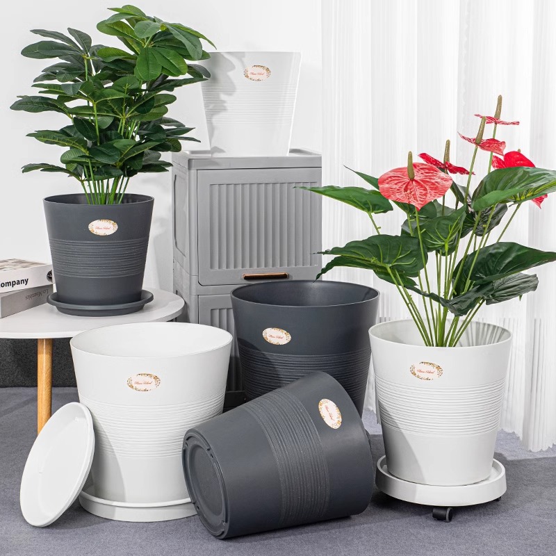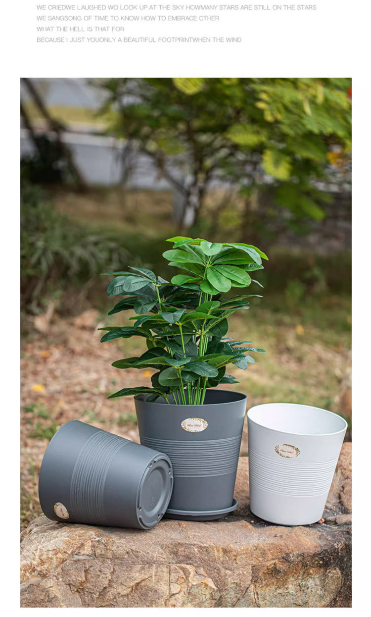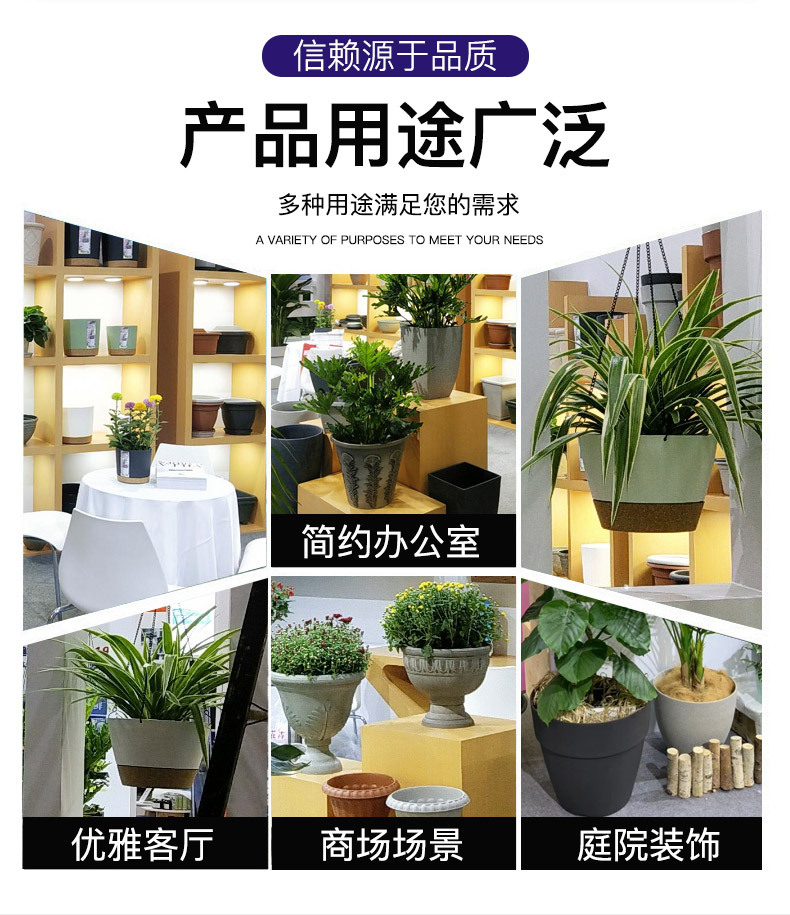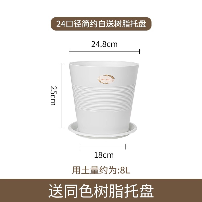 轻奢树脂拉丝高款圆盆塑料盆北欧加厚大口径天堂鸟龟背竹绿植花卉