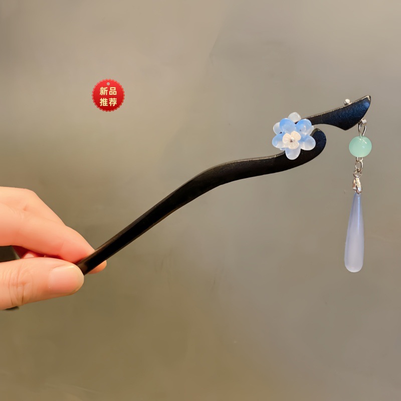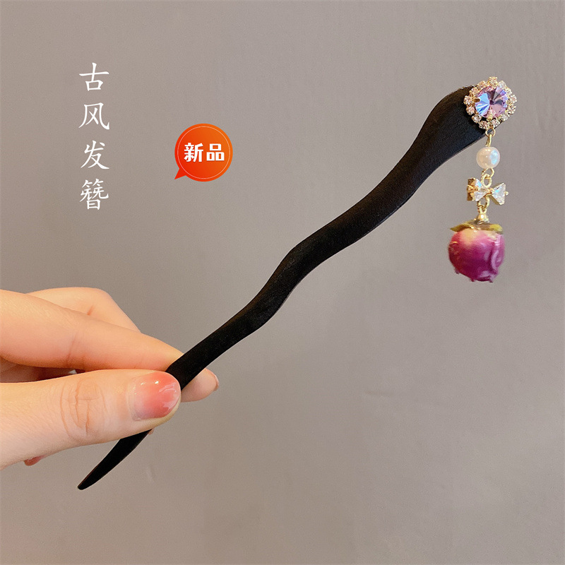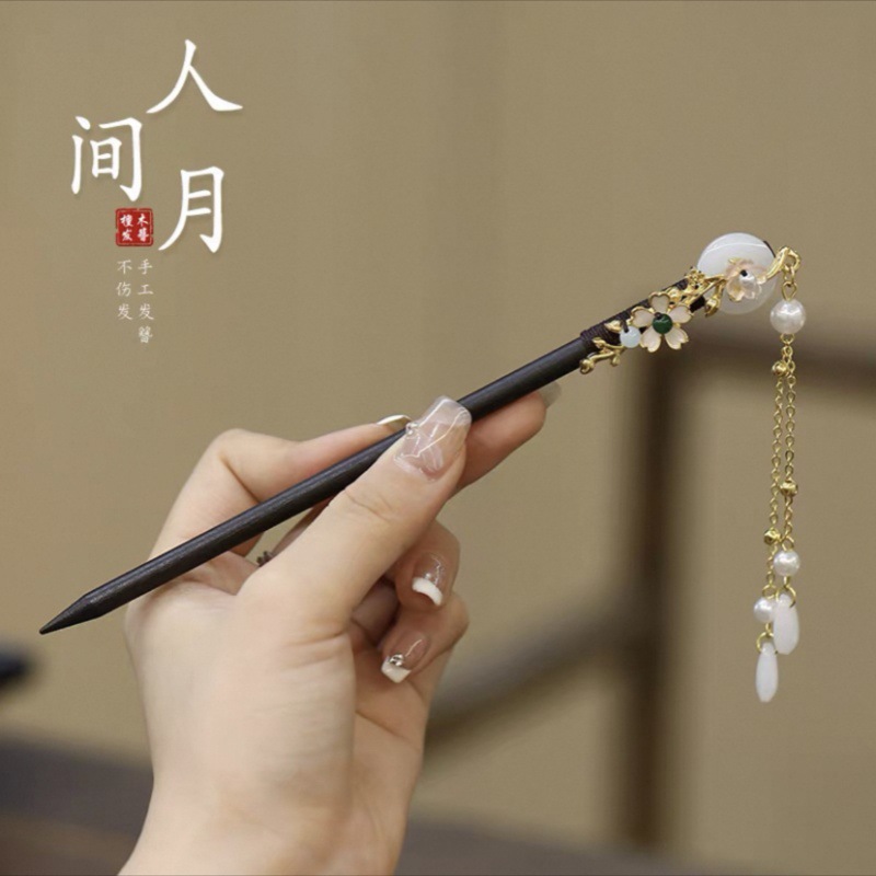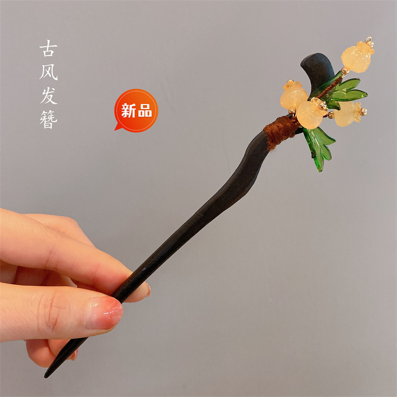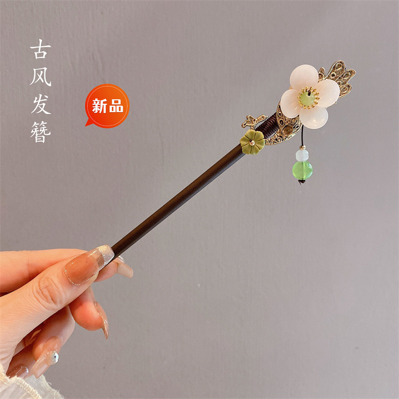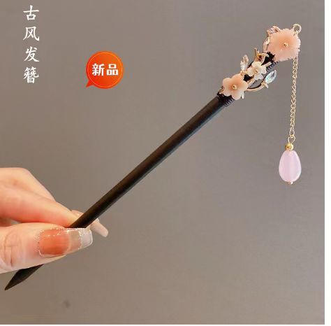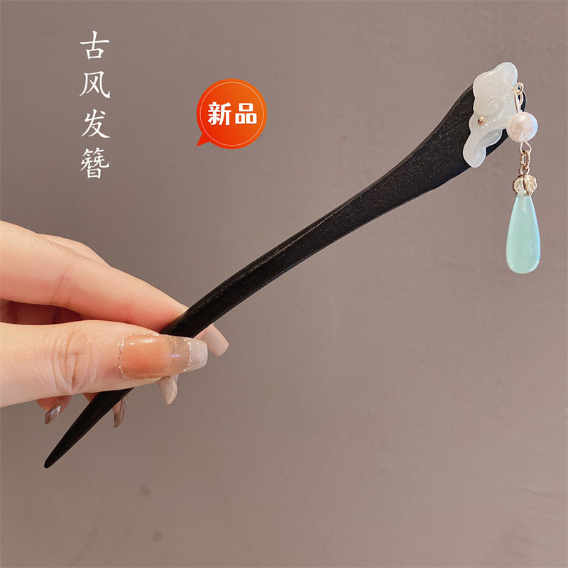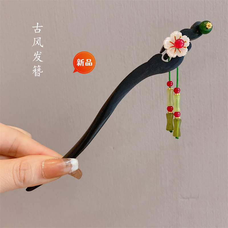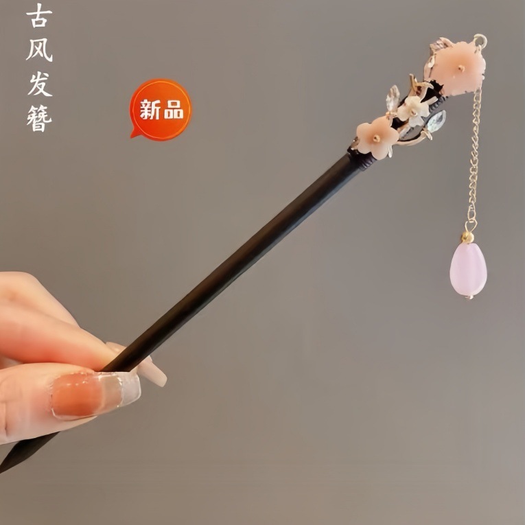 新中式古风发簪女木质钗子流苏步摇高级感新中式盘发器简约簪子