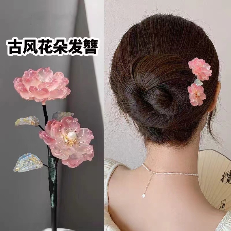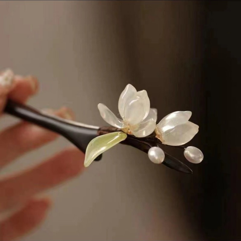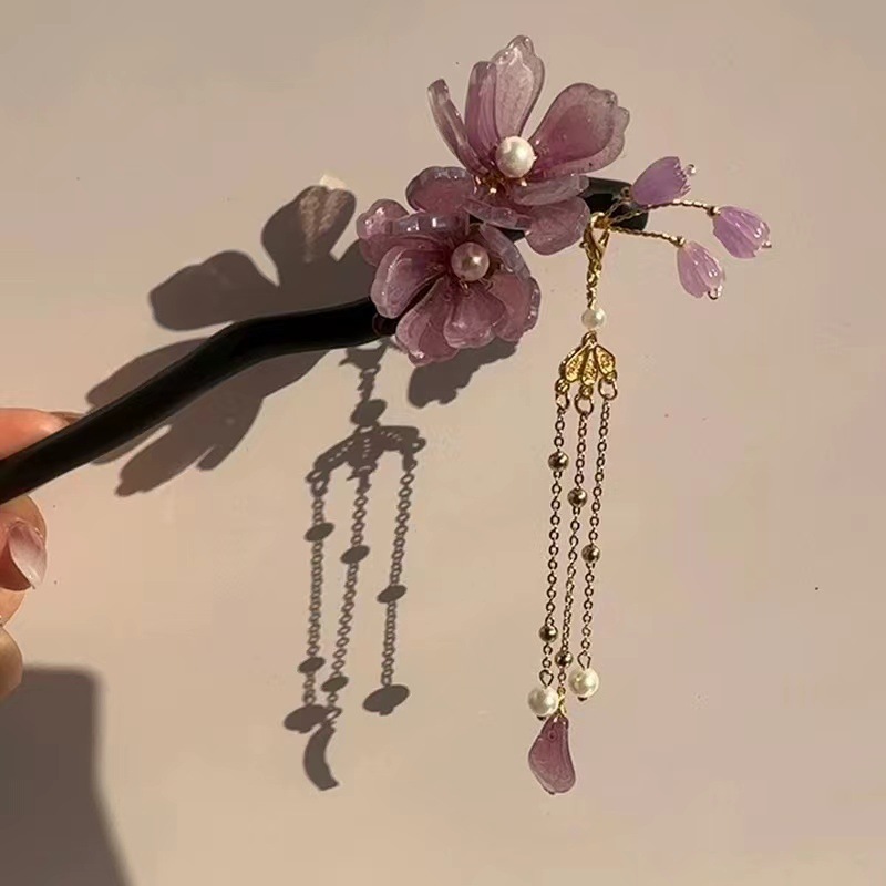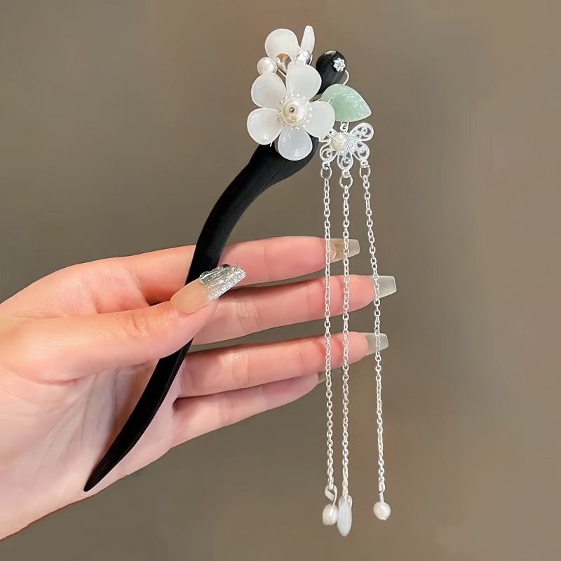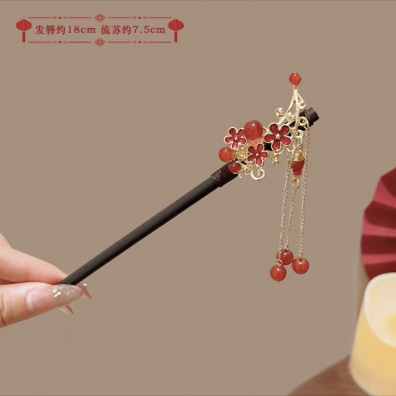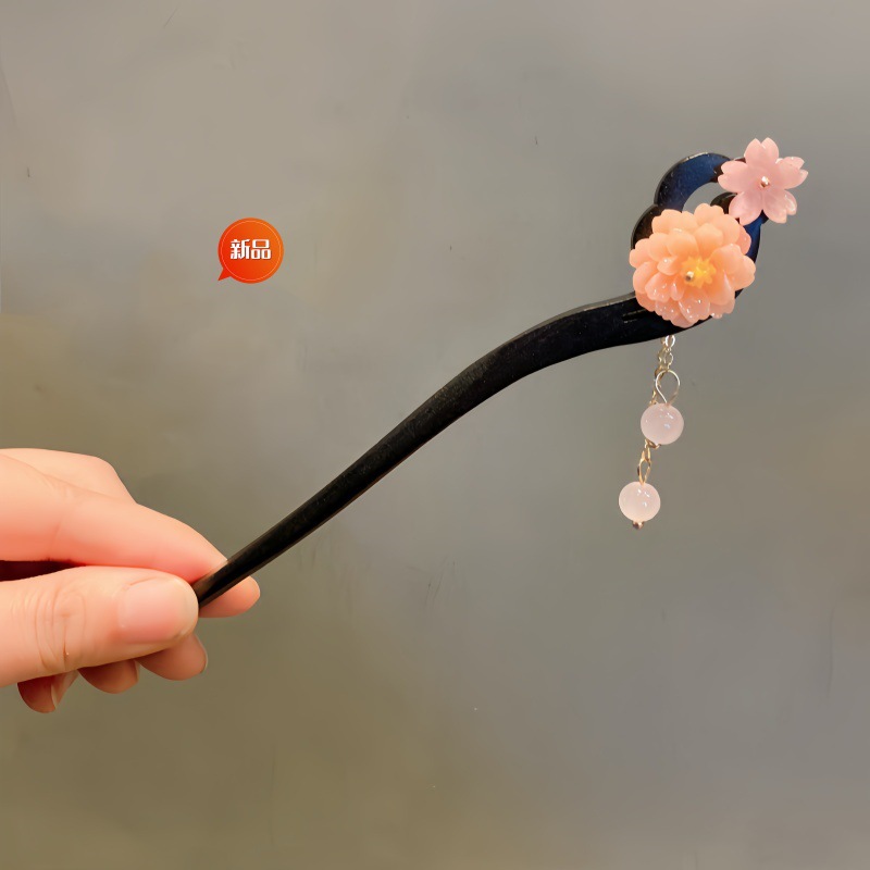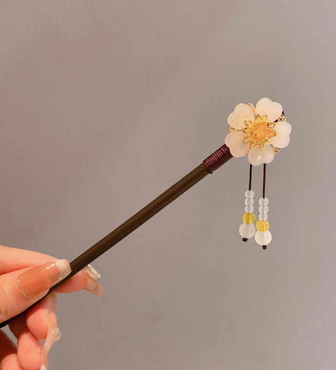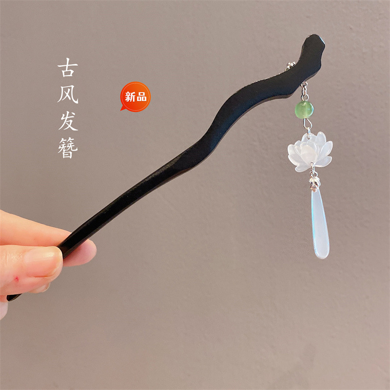 新中式古风发簪女木质钗子流苏步摇高级感新中式盘发器简约簪子