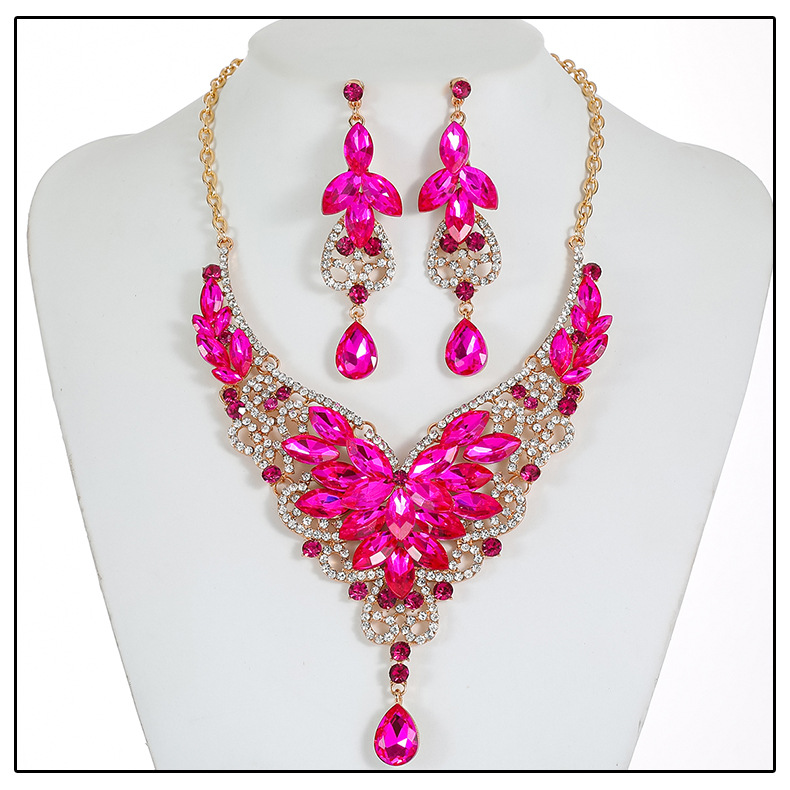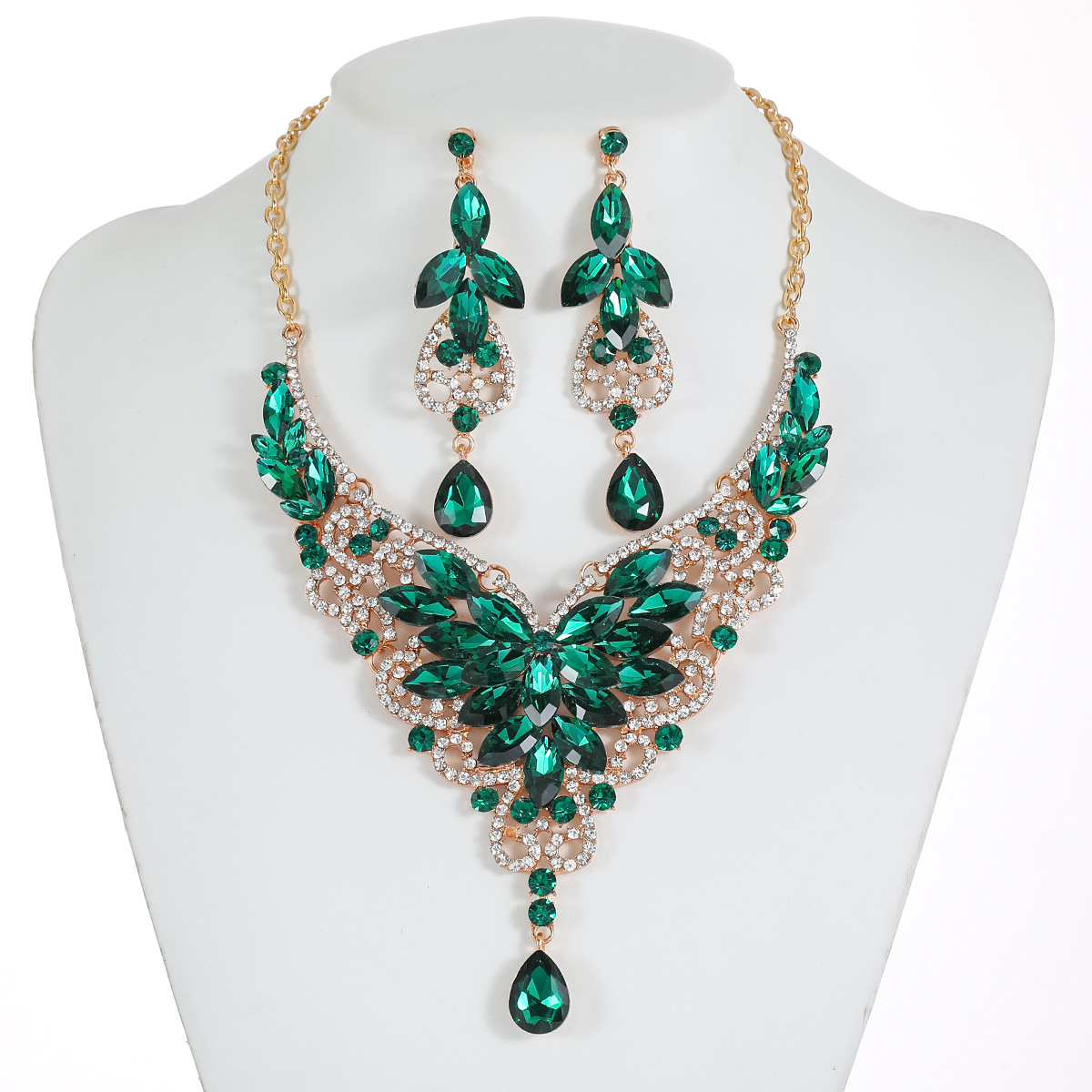 夸张大气复古设计感欧美外贸水晶宝石跨境饰品项链套装女配饰批发