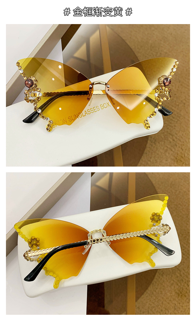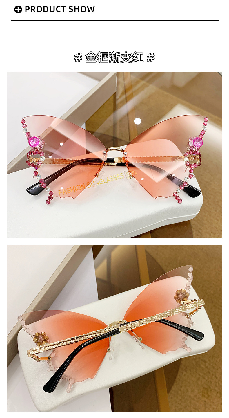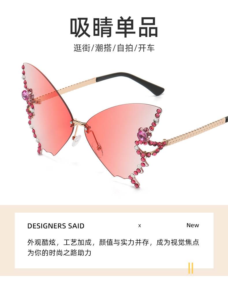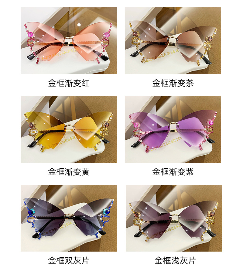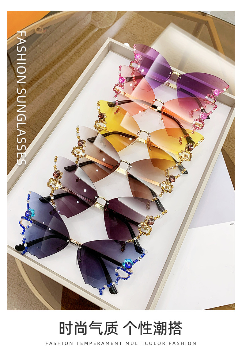 跨境2025新款蝴蝶形状镶钻无框太阳镜女时尚个性夸张墨镜欧美网红