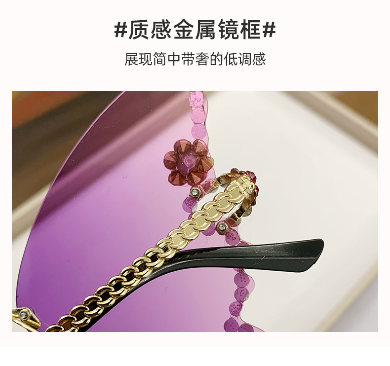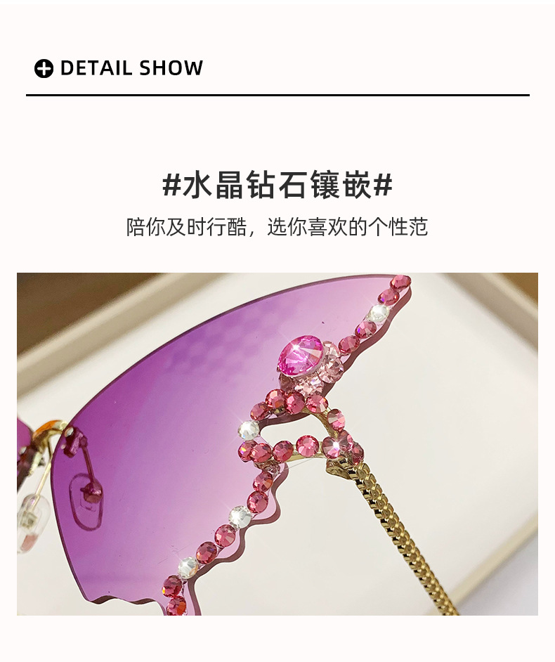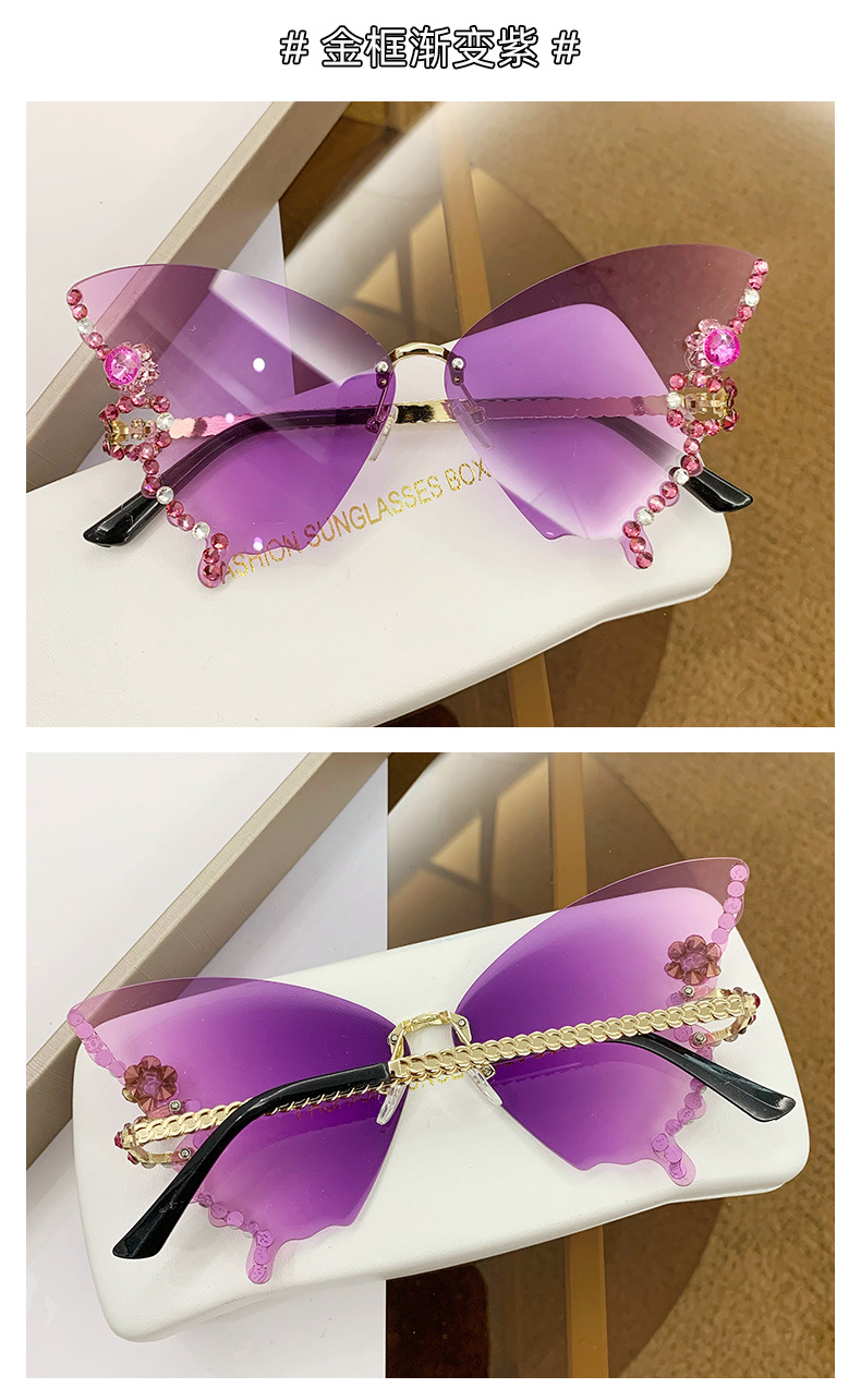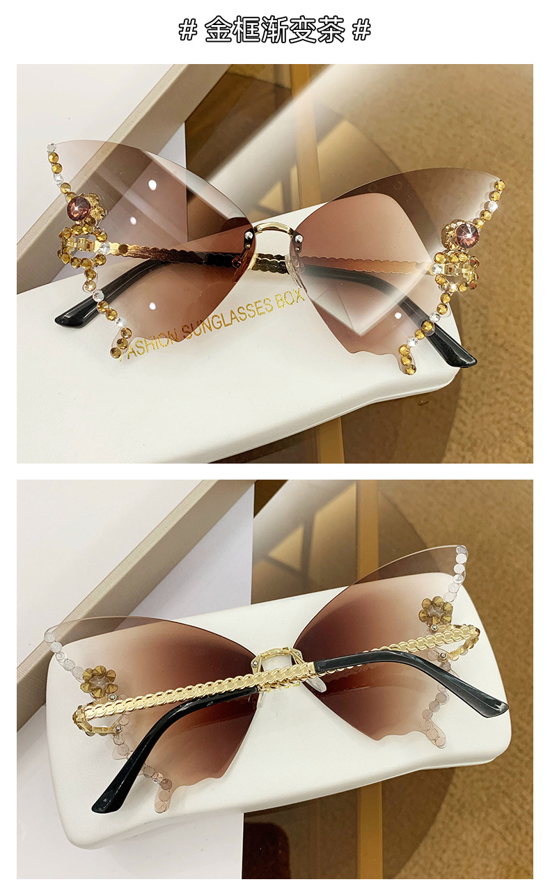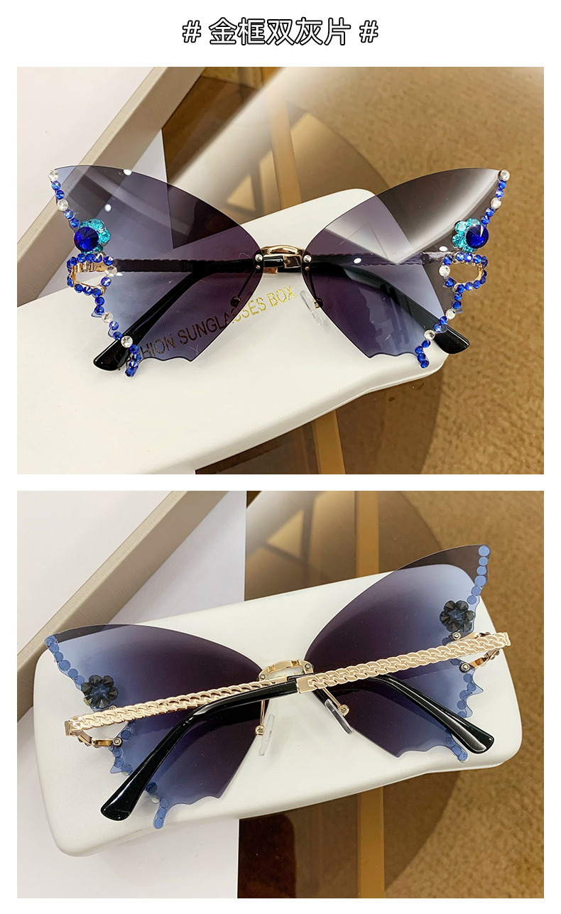 跨境2025新款蝴蝶形状镶钻无框太阳镜女时尚个性夸张墨镜欧美网红