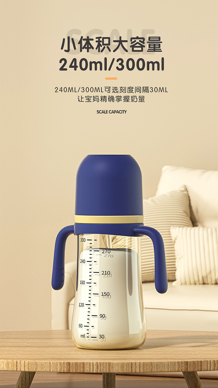 诺爱因新生婴儿奶瓶宽口径防摔防胀气柔软好吸仿母乳奶嘴吸管杯