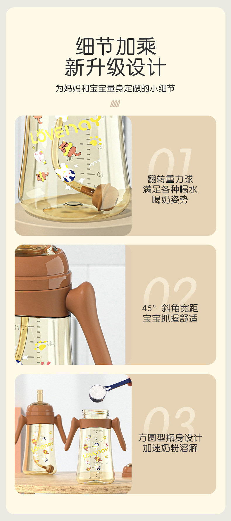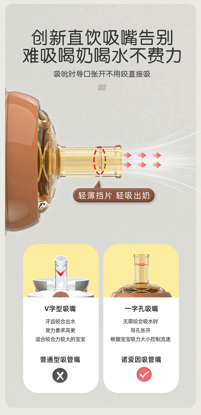 小兔火箭碎花吸管奶瓶进口材质纳米银吸嘴婴儿护齿吸管杯一杯三用
