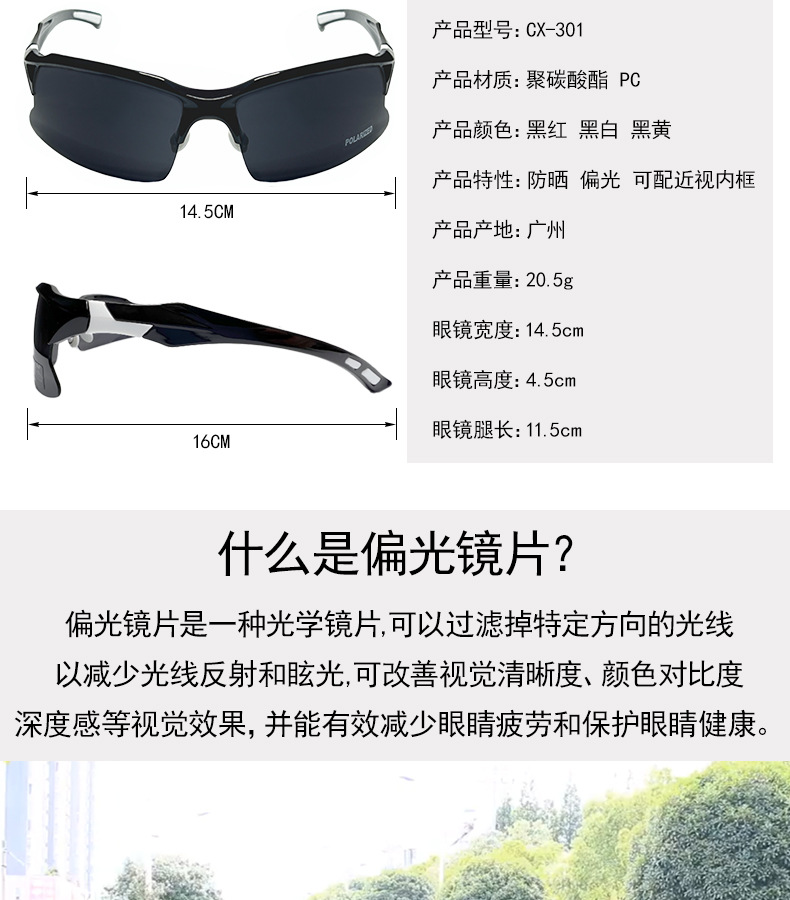 防紫外线户外骑行眼镜偏光运动跑步太阳镜山地自行车防风防晒墨镜
