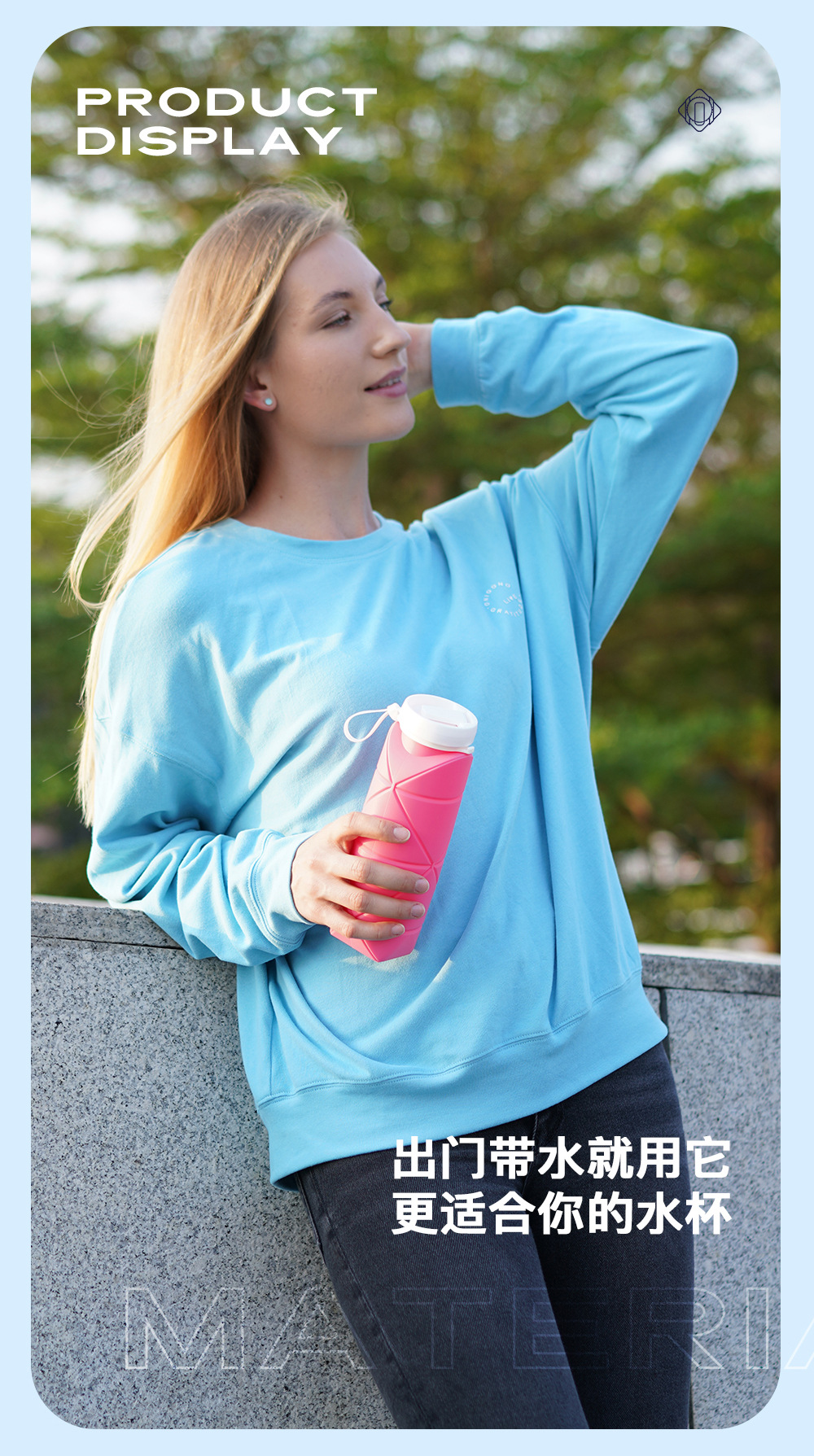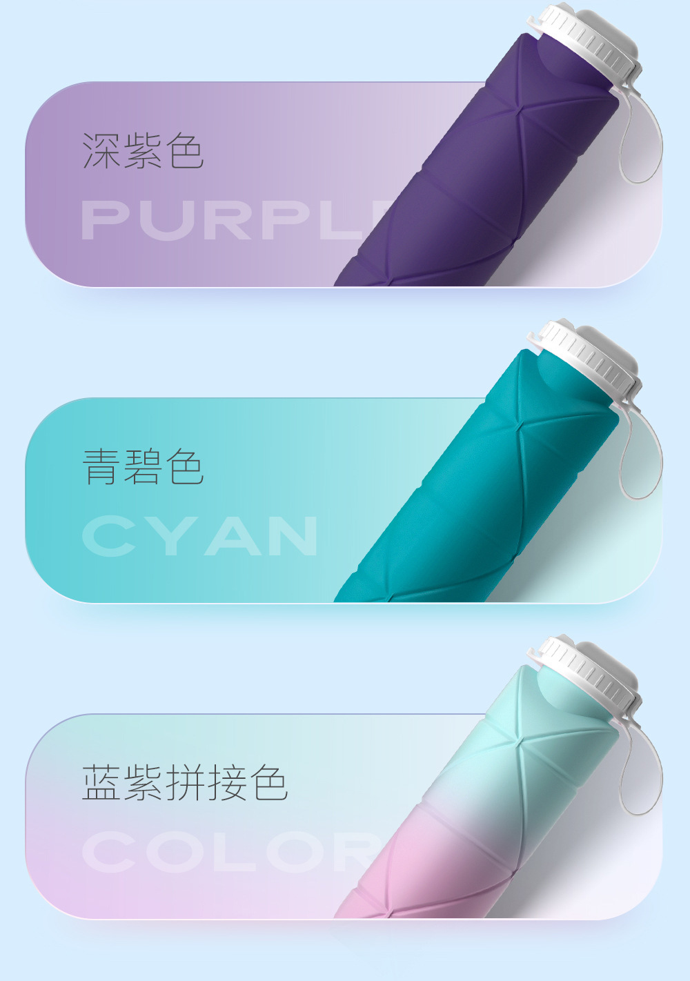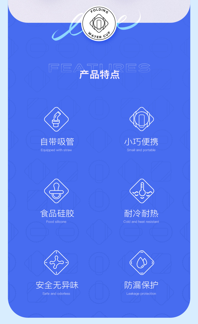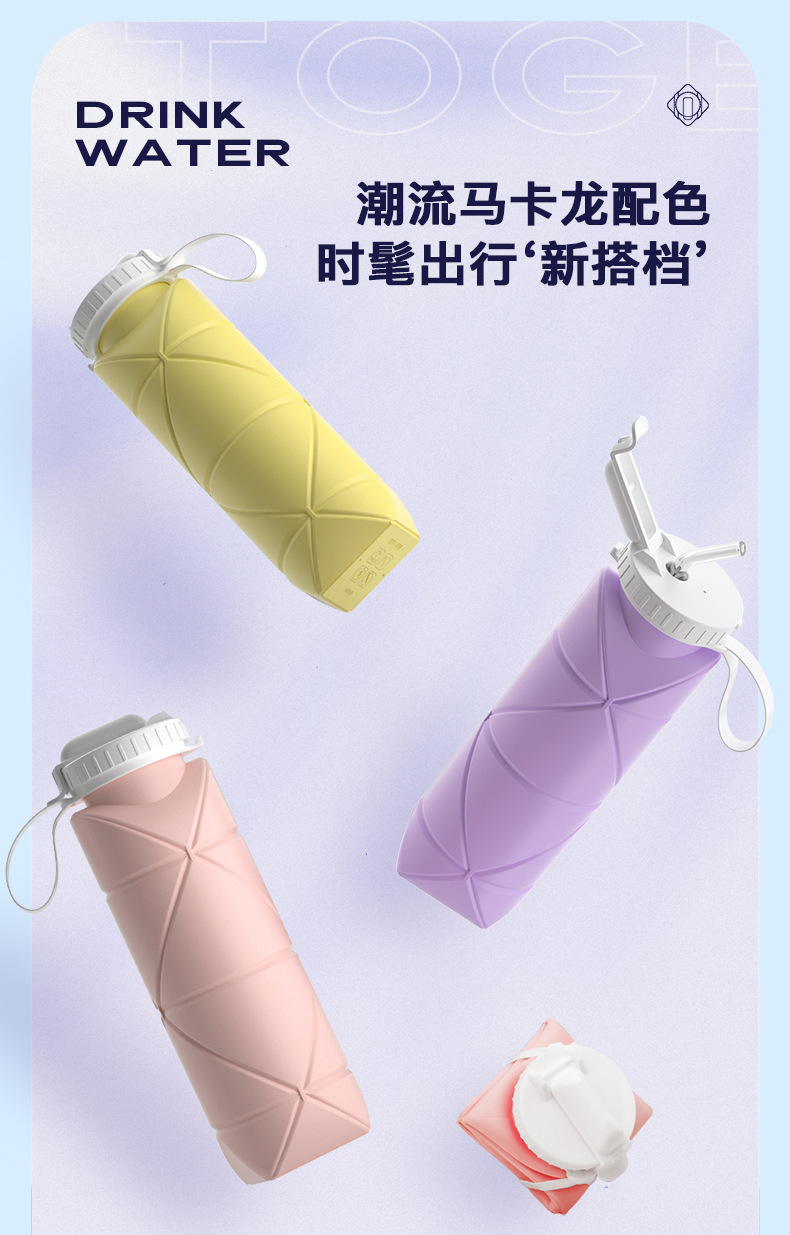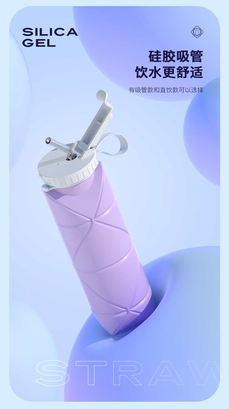 吸管款硅胶折叠水杯便携户外运动旅行骑行自行车水壶耐高温创意