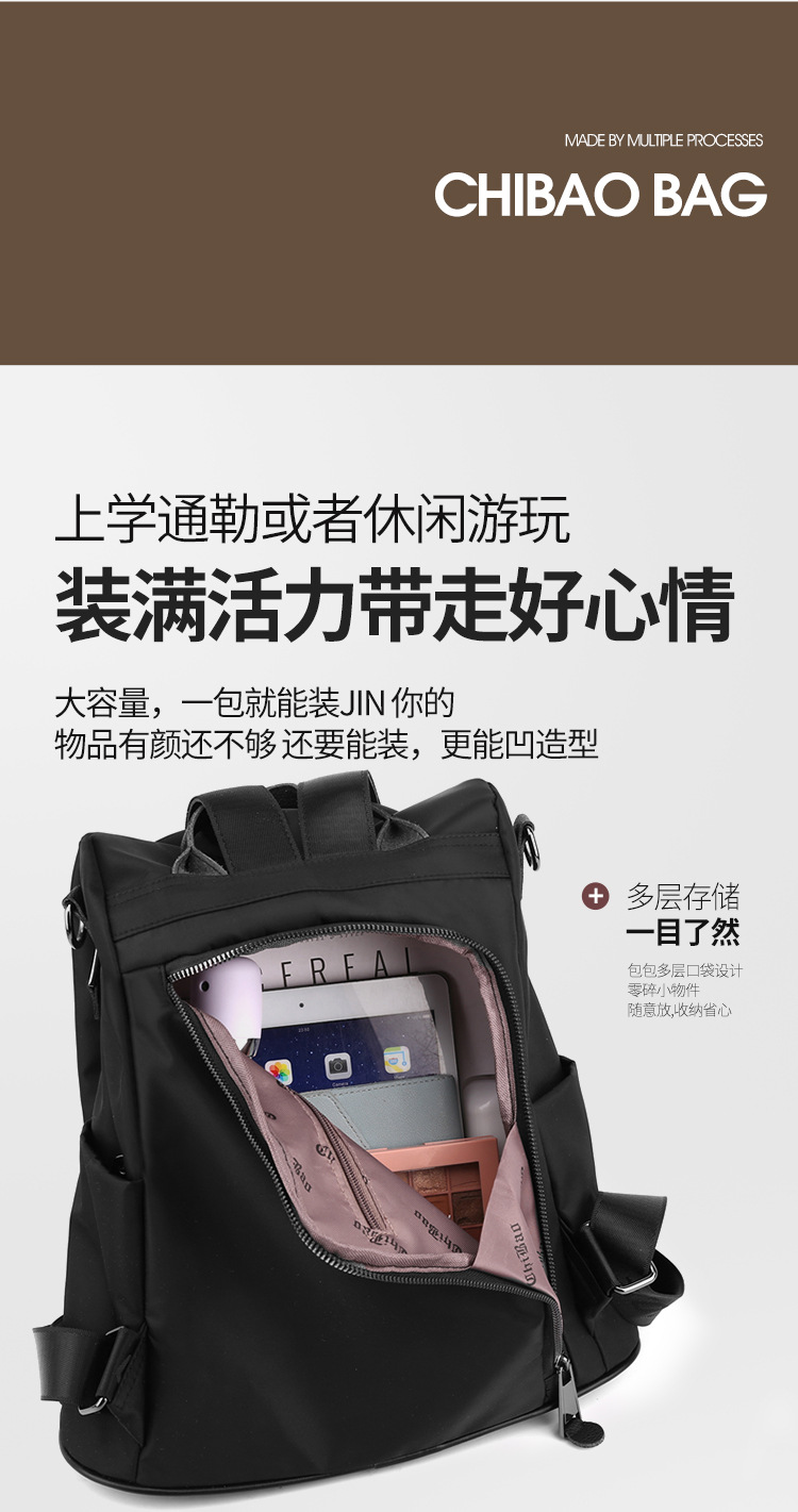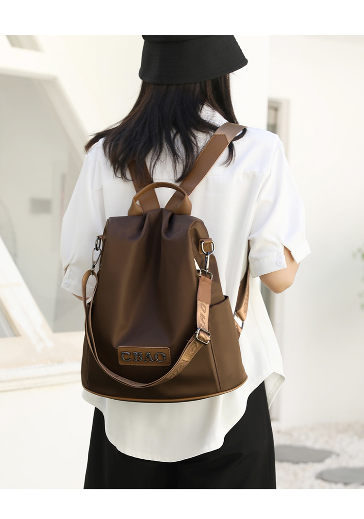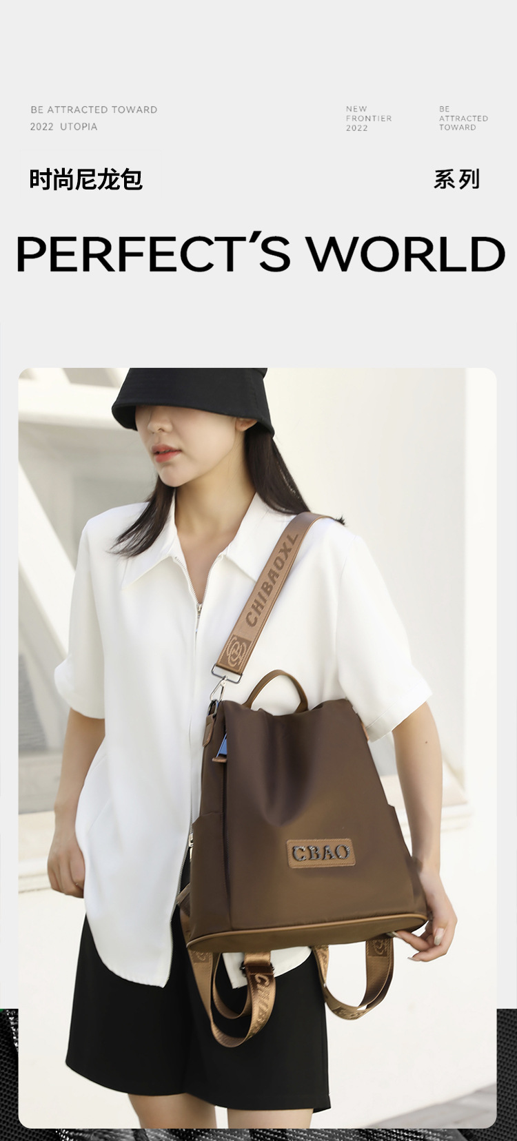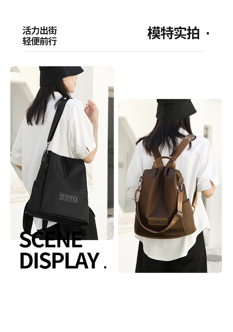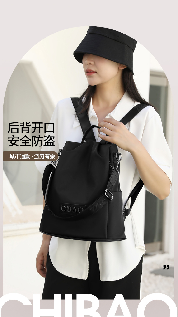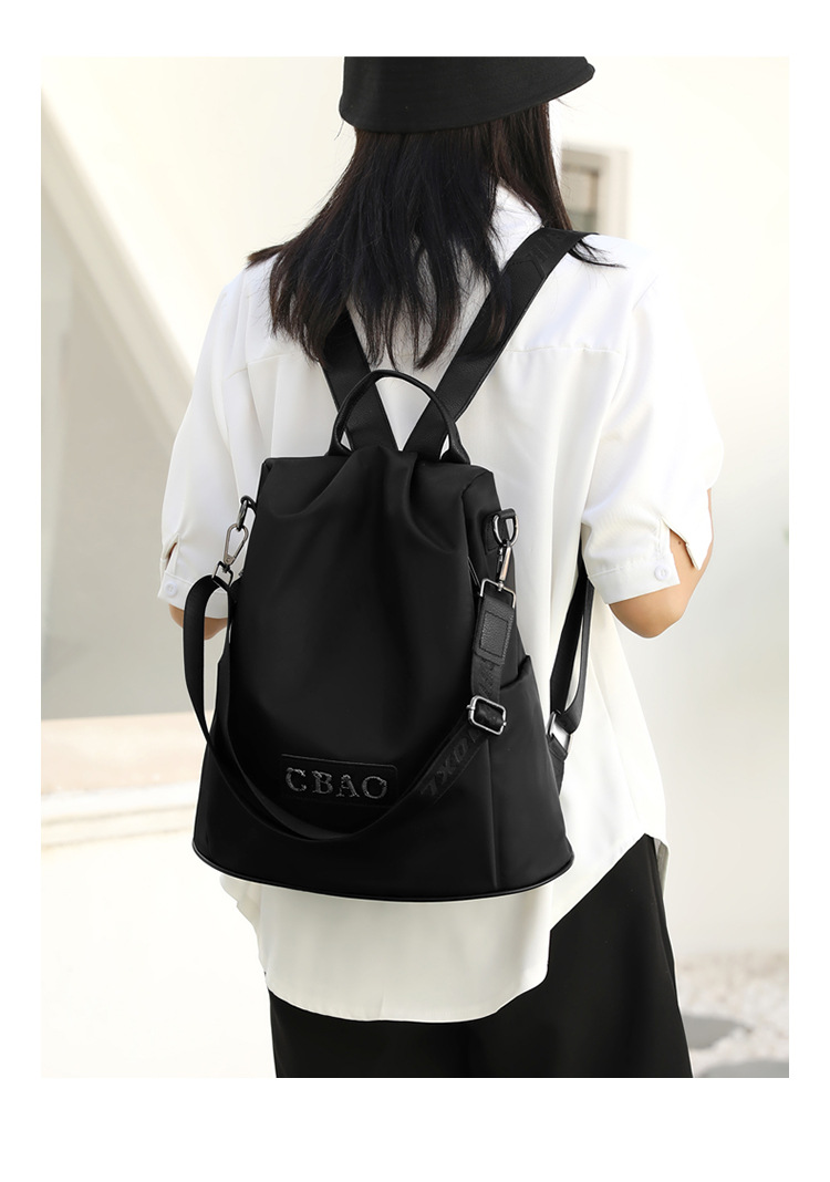 2024新款尼龙防水休闲双肩包百搭纯色轻便旅行包大容量简约通勤包