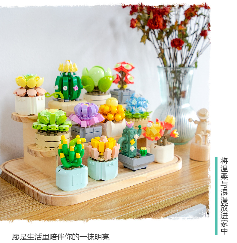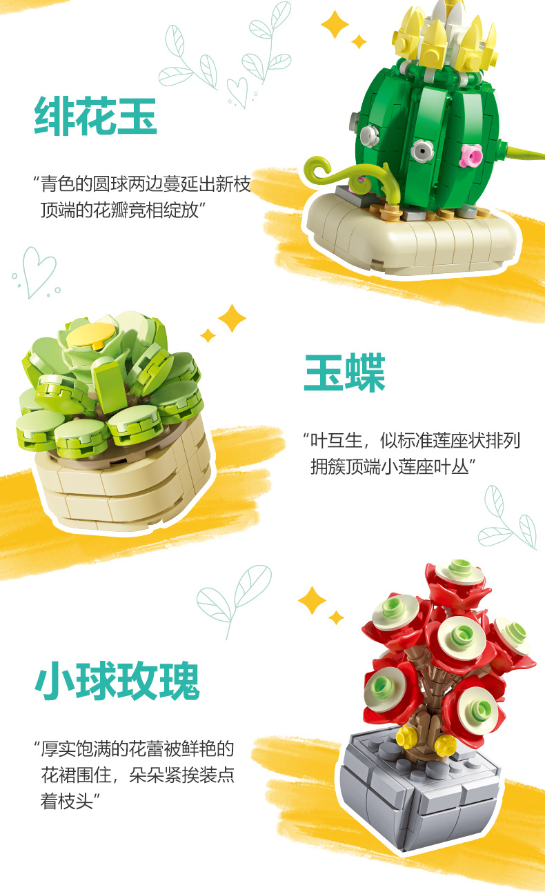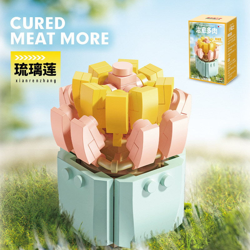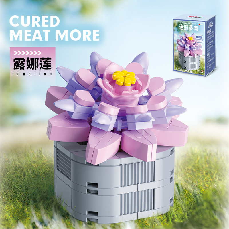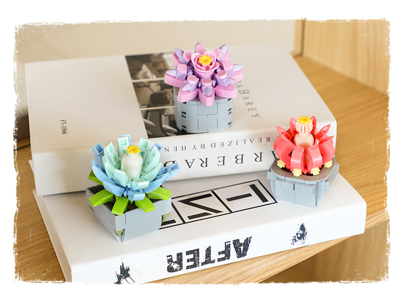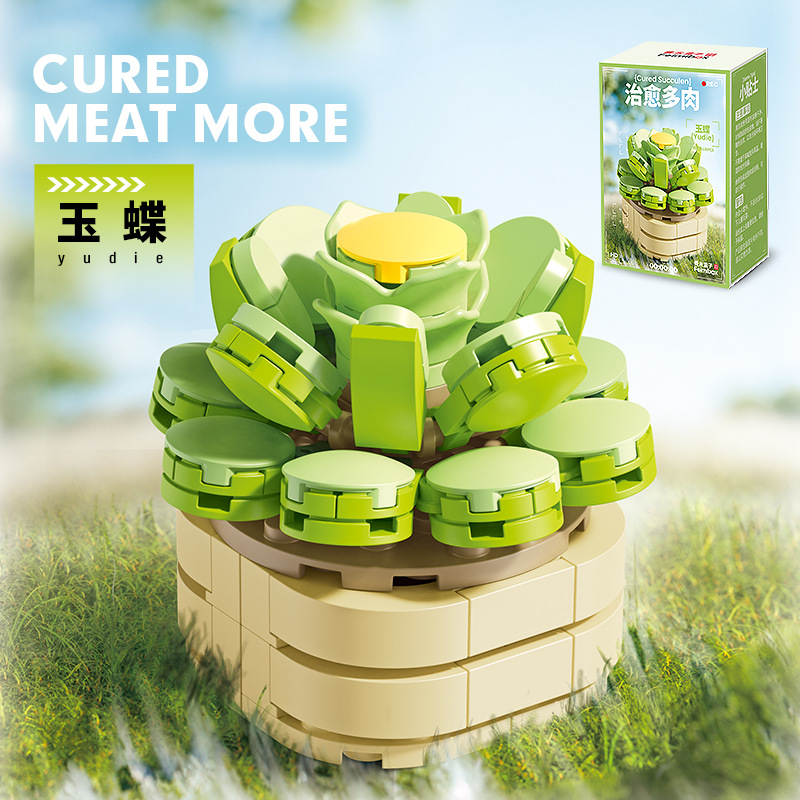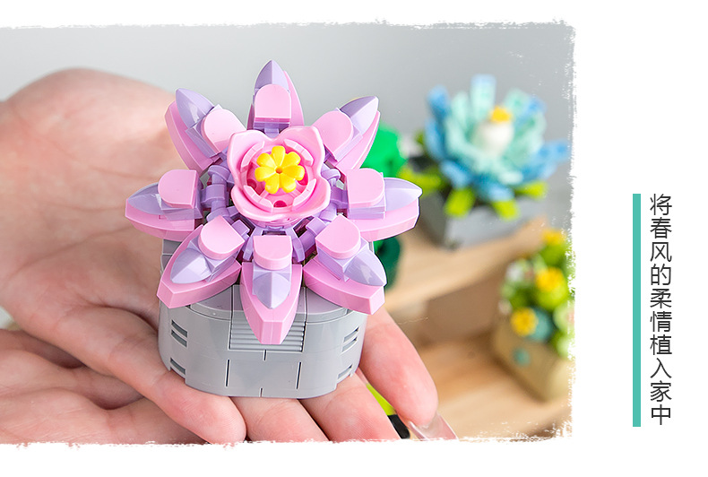 费米多肉积木观音莲绯花玉玫瑰青凤凰玉蝶若绿琉璃莲组装模型摆件