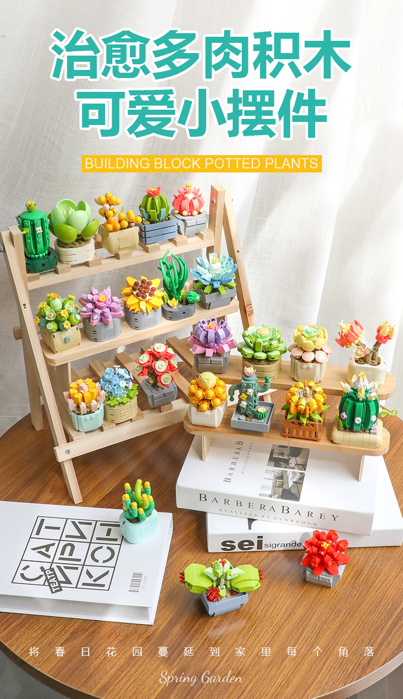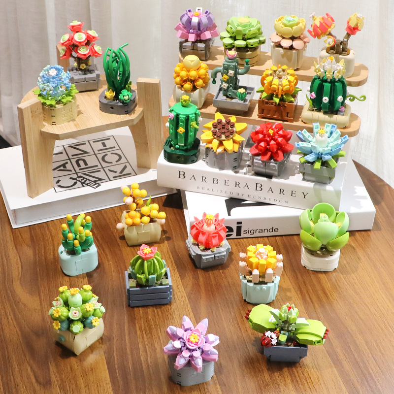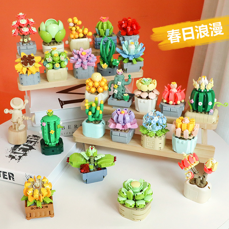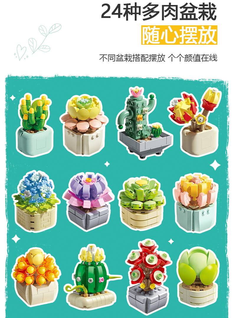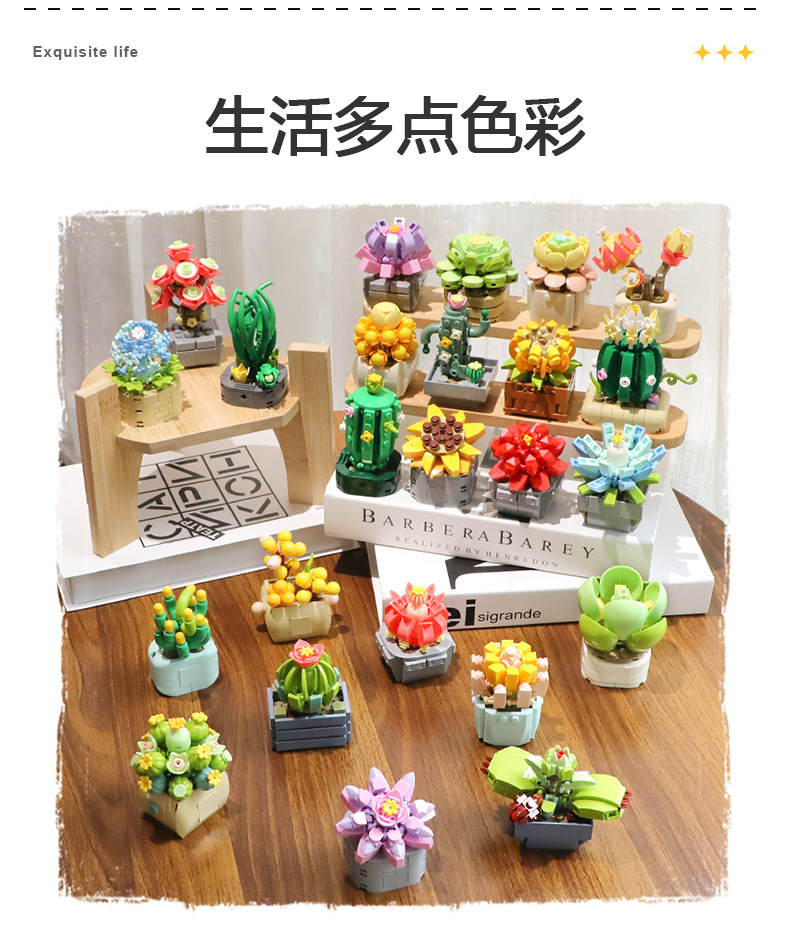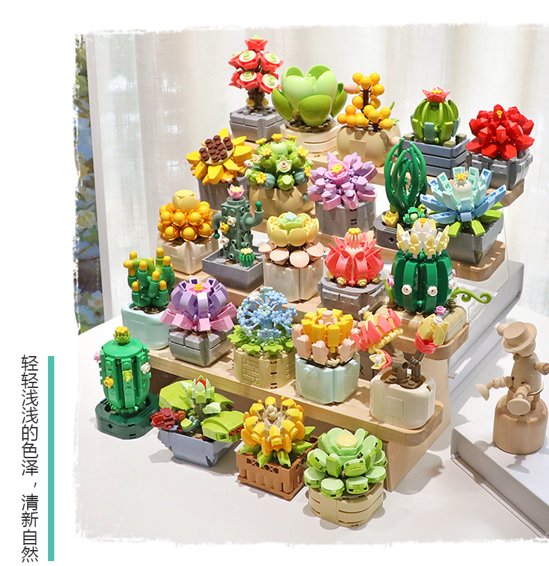 费米多肉积木观音莲绯花玉玫瑰青凤凰玉蝶若绿琉璃莲组装模型摆件