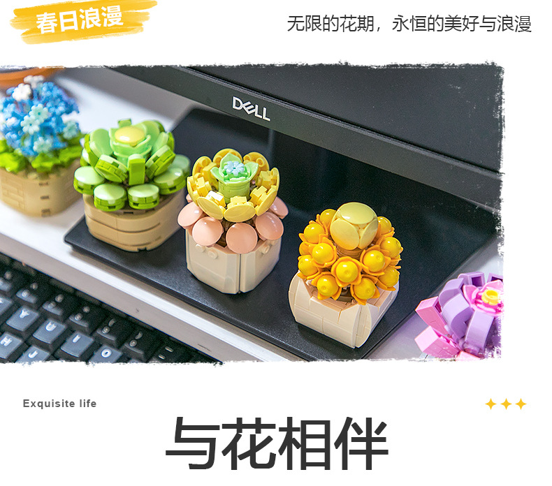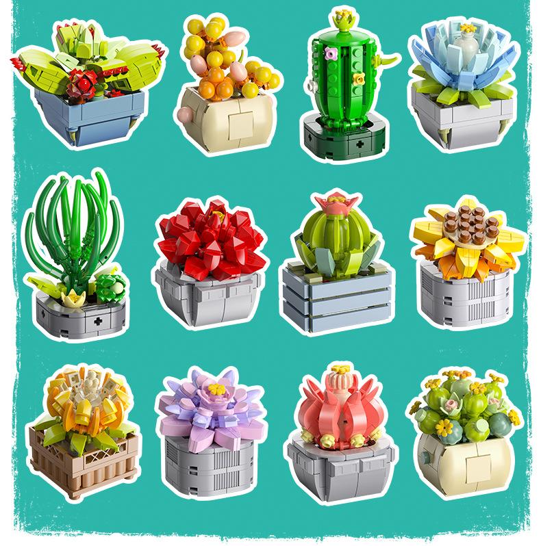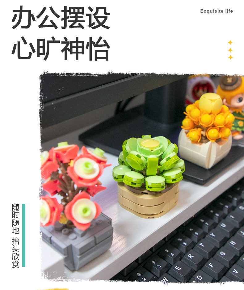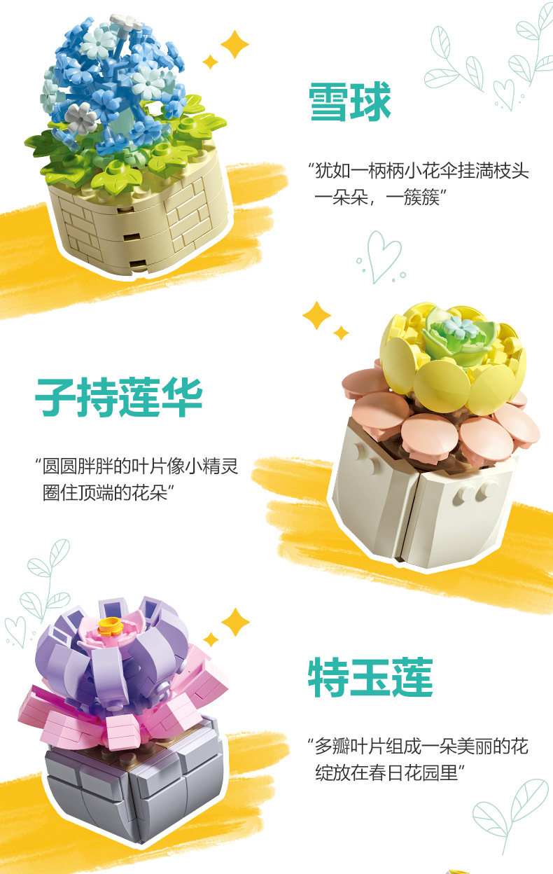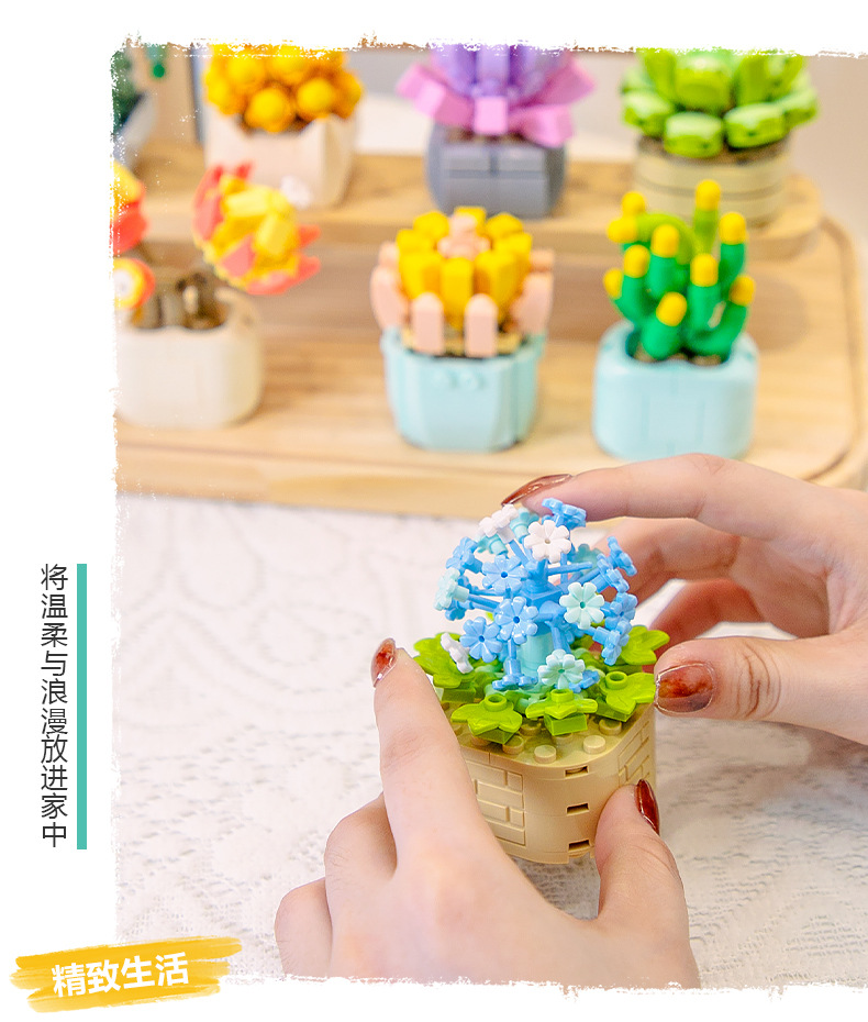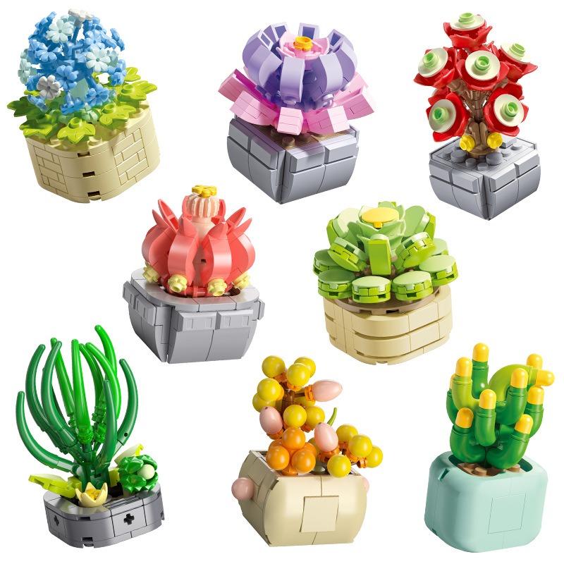 费米多肉积木观音莲绯花玉玫瑰青凤凰玉蝶若绿琉璃莲组装模型摆件