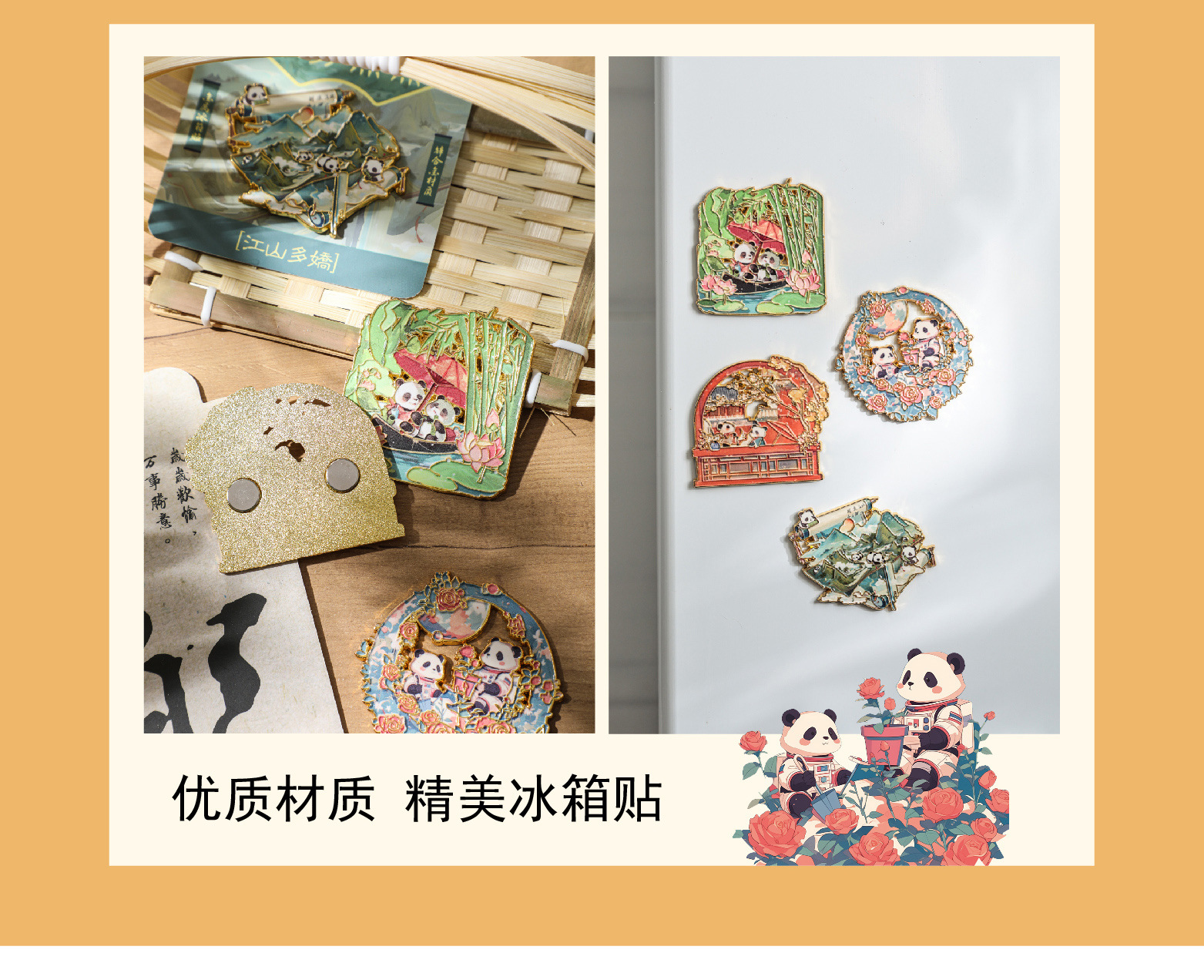 熊猫金属冰箱贴城市旅游景区纪念品伴手礼品留言磁性贴便宜批发