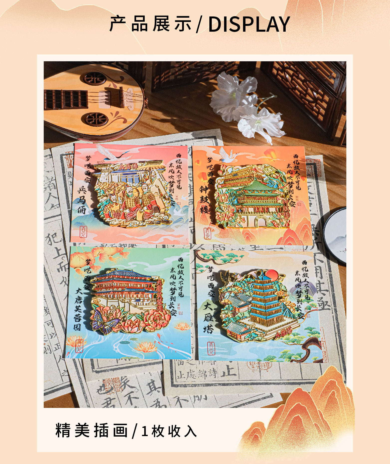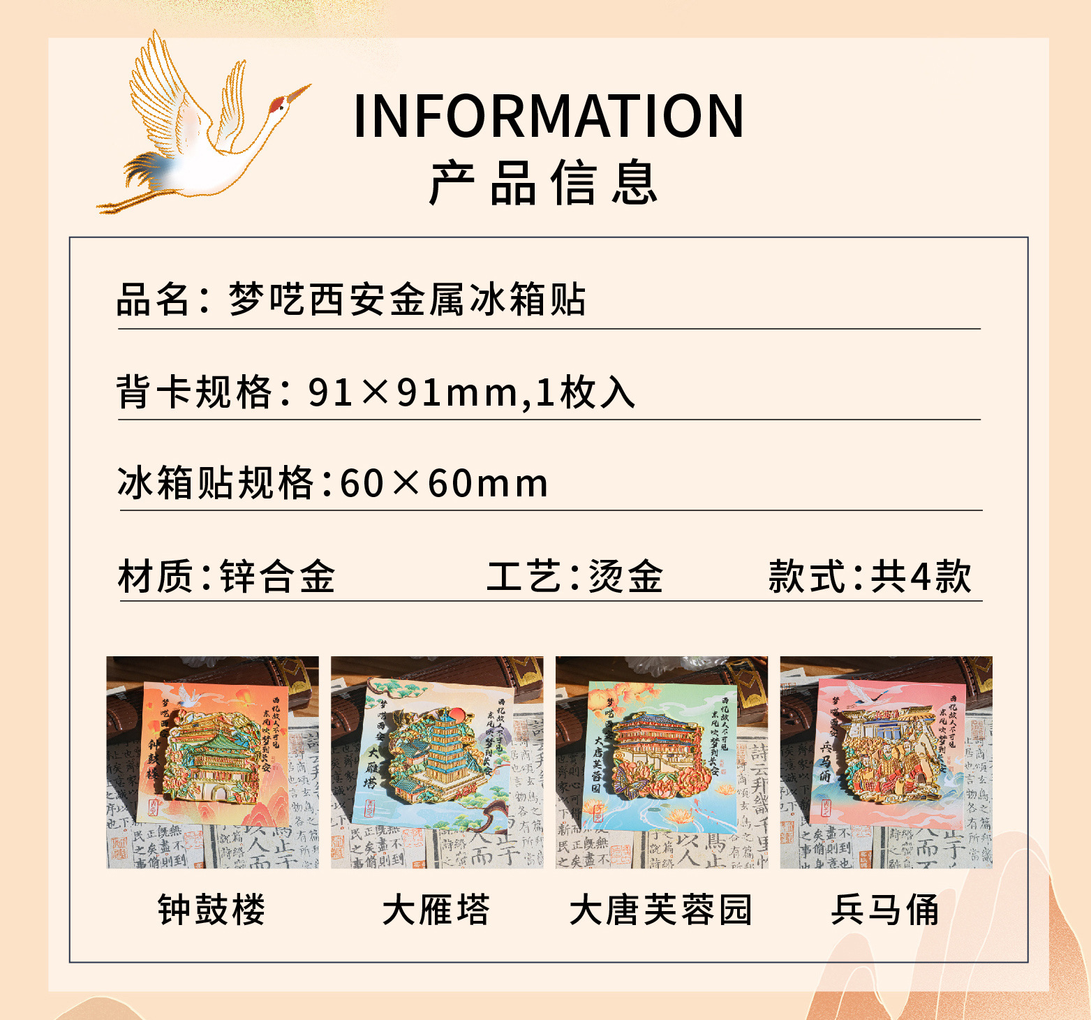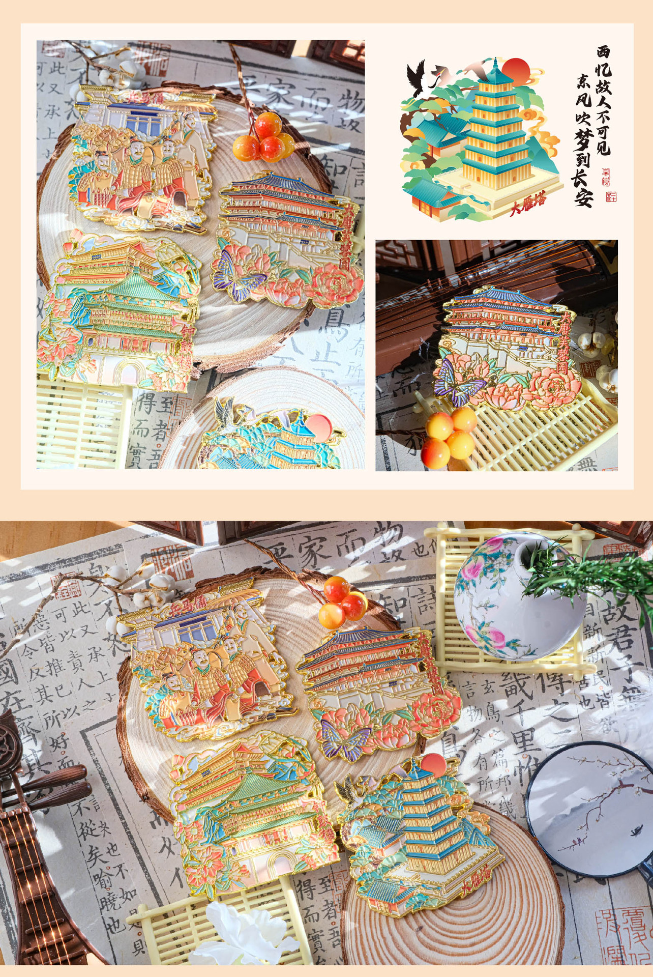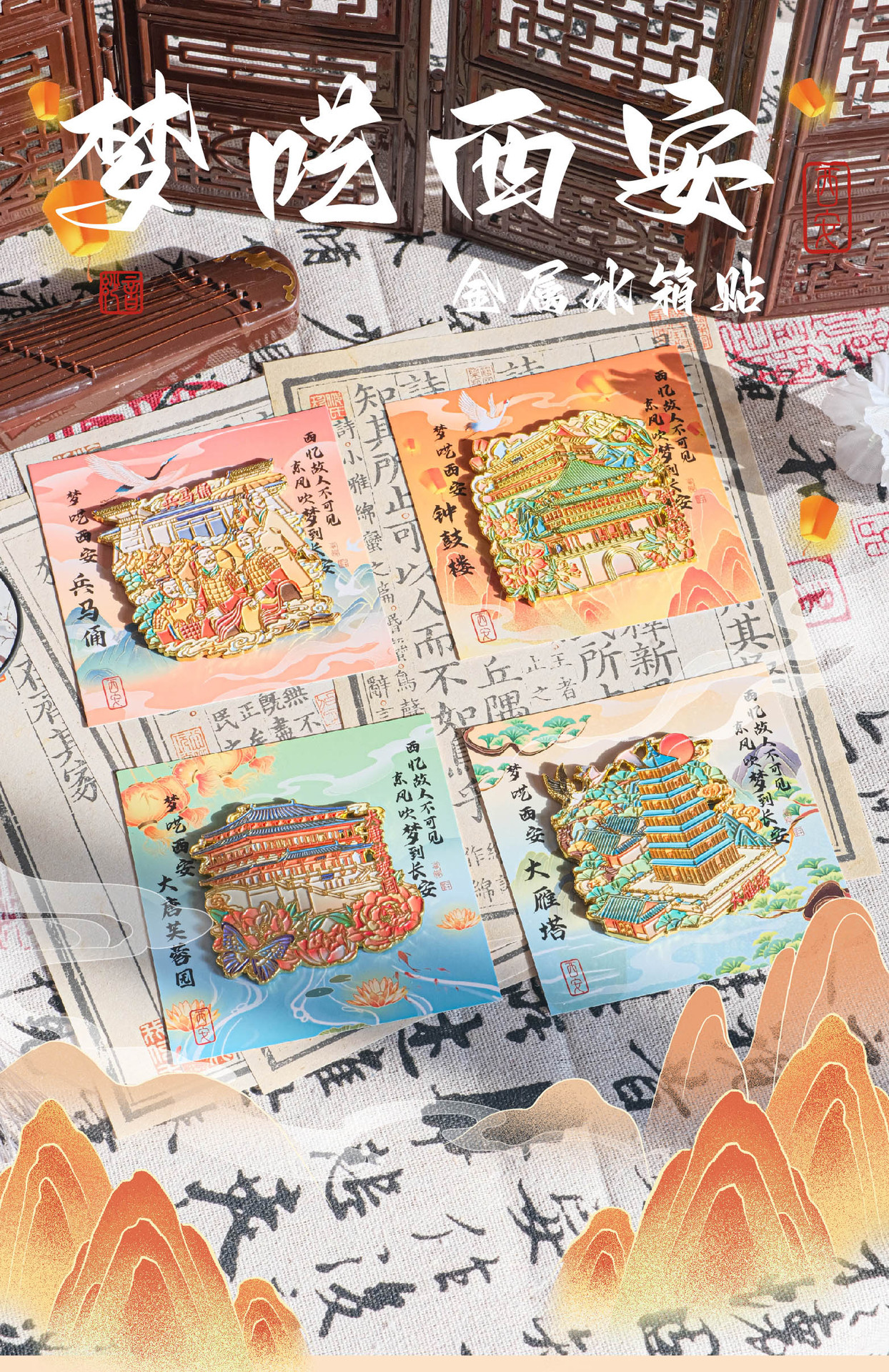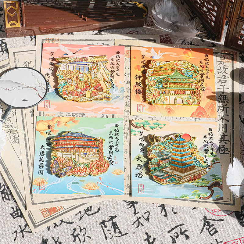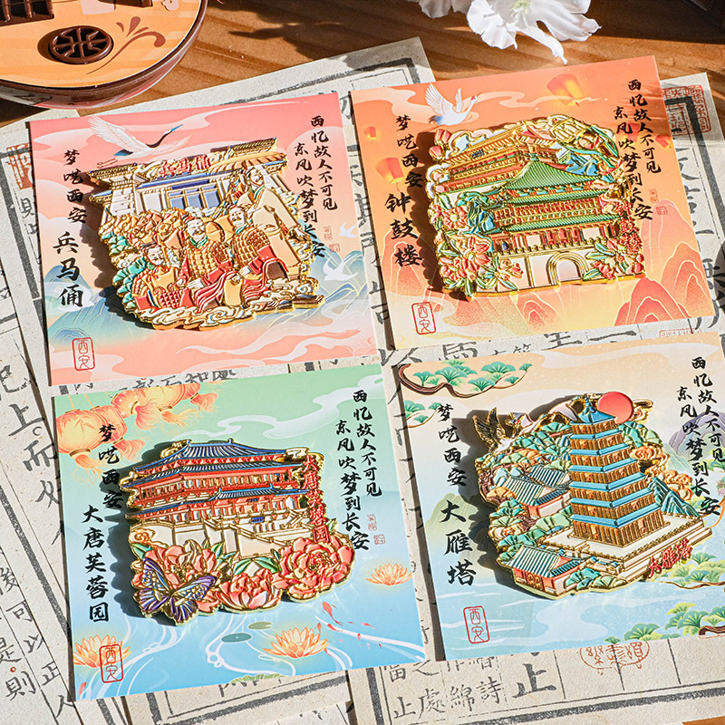 高颜值金属冰箱贴西安钟鼓楼大雁塔大唐芙蓉园兵马俑景点纪念品