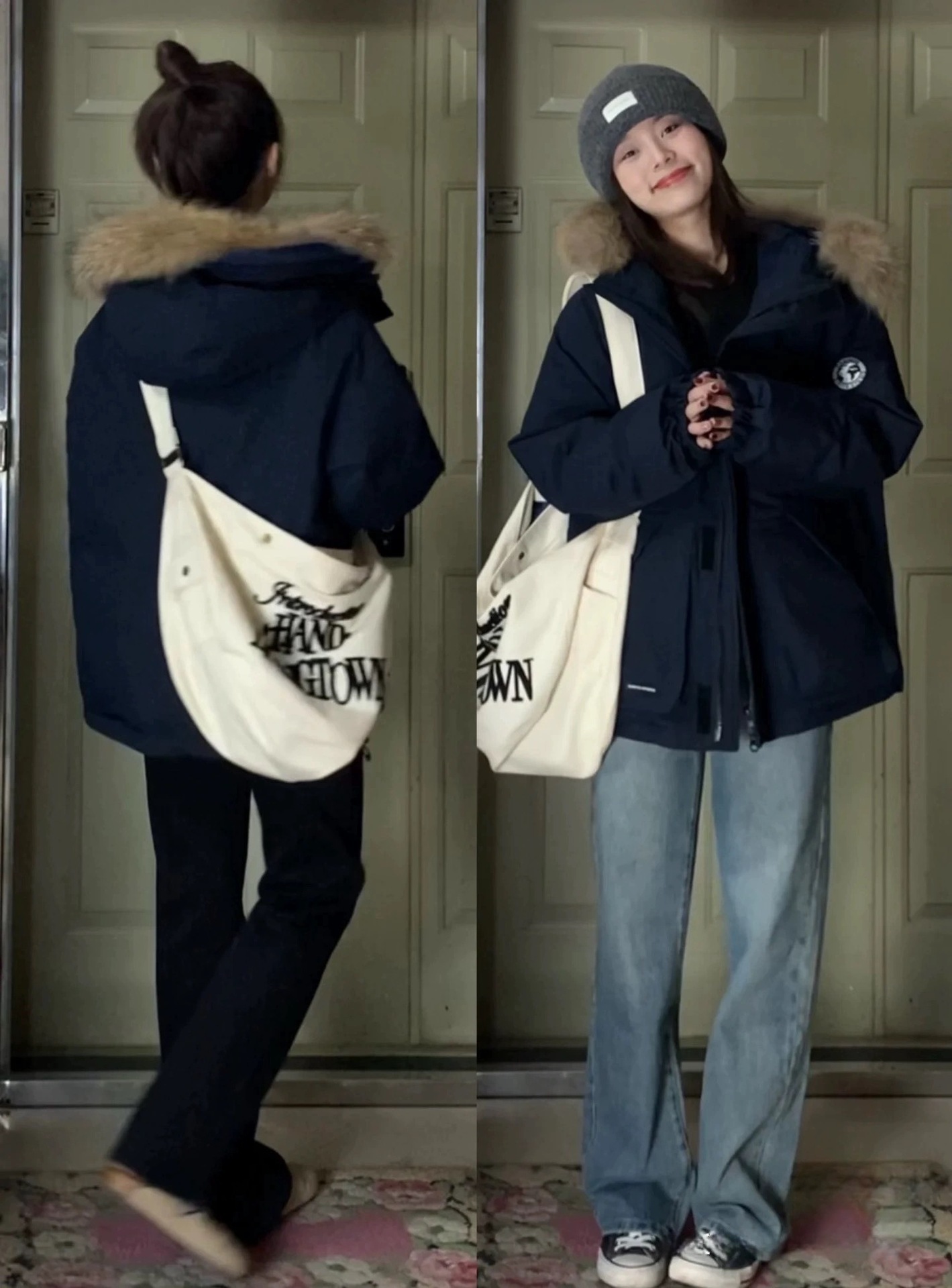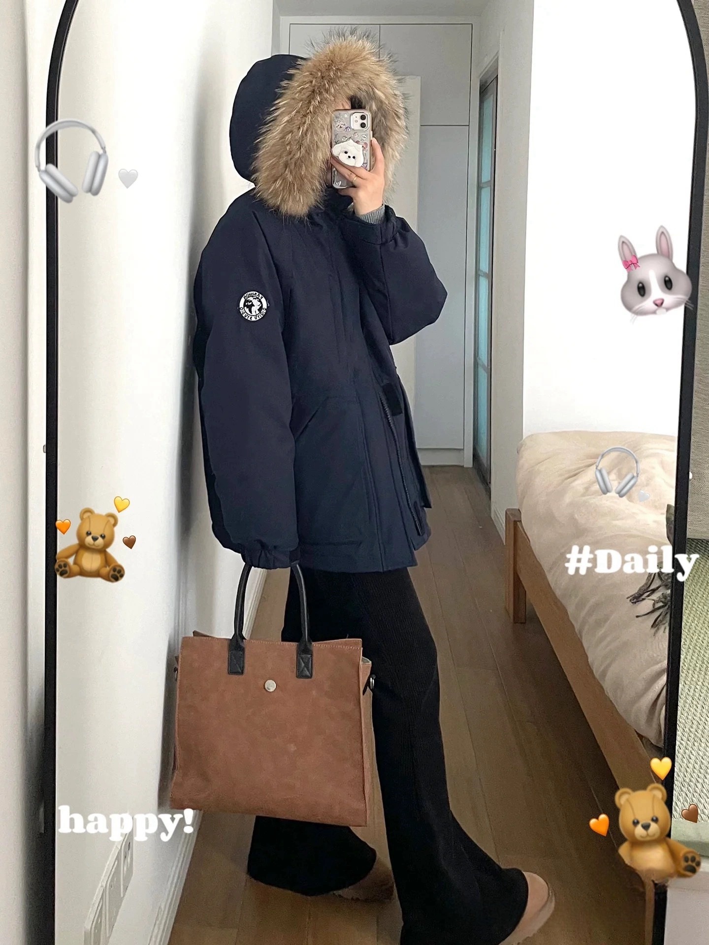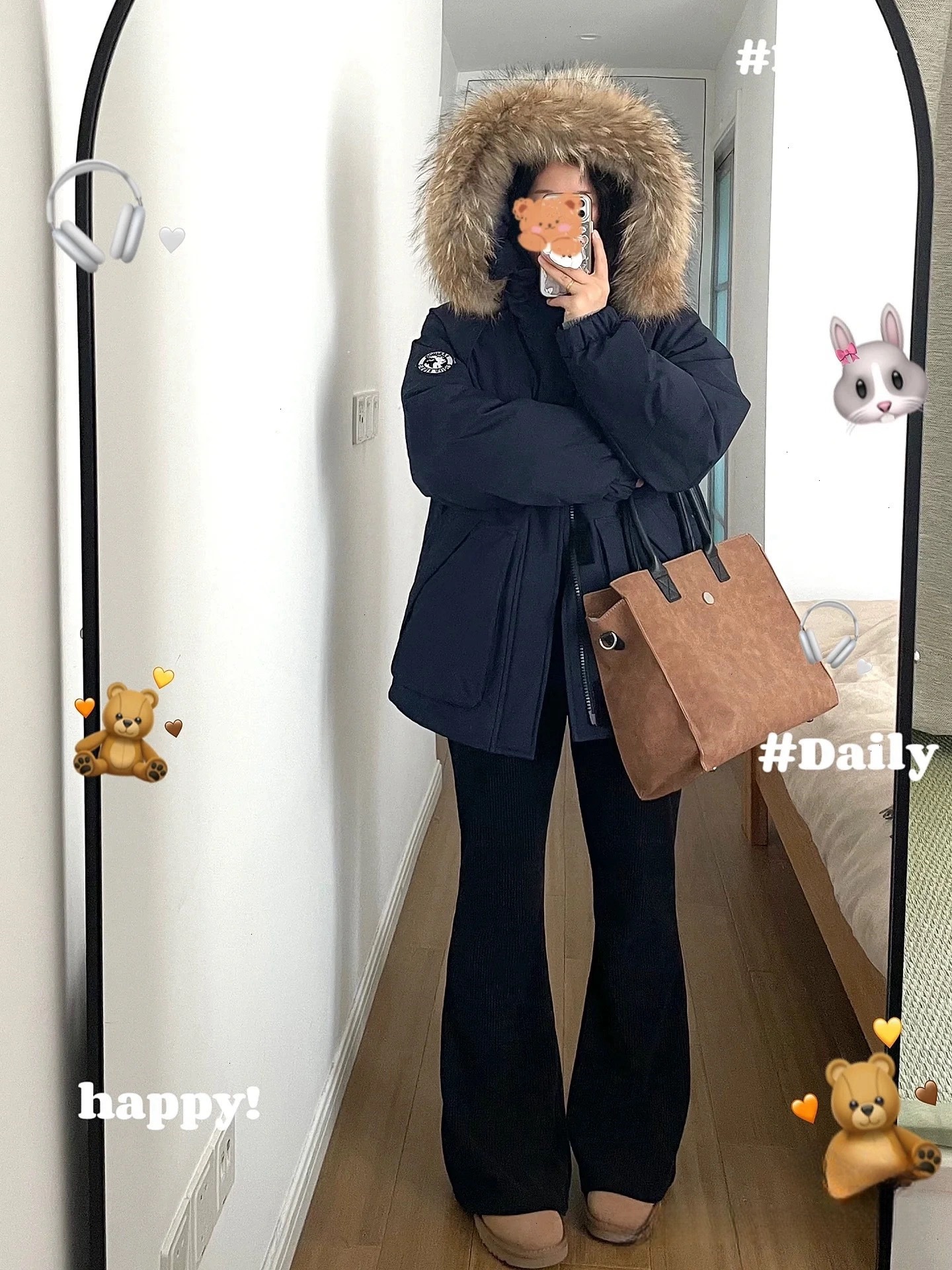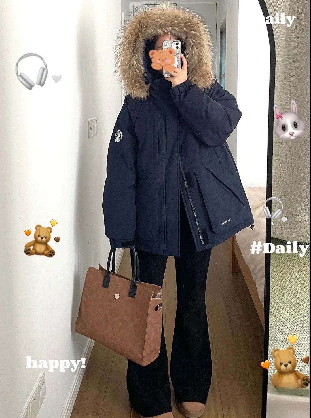 2024羽绒服女中长款工装派克学生冲锋衣大毛领连帽白鸭绒冬装外套